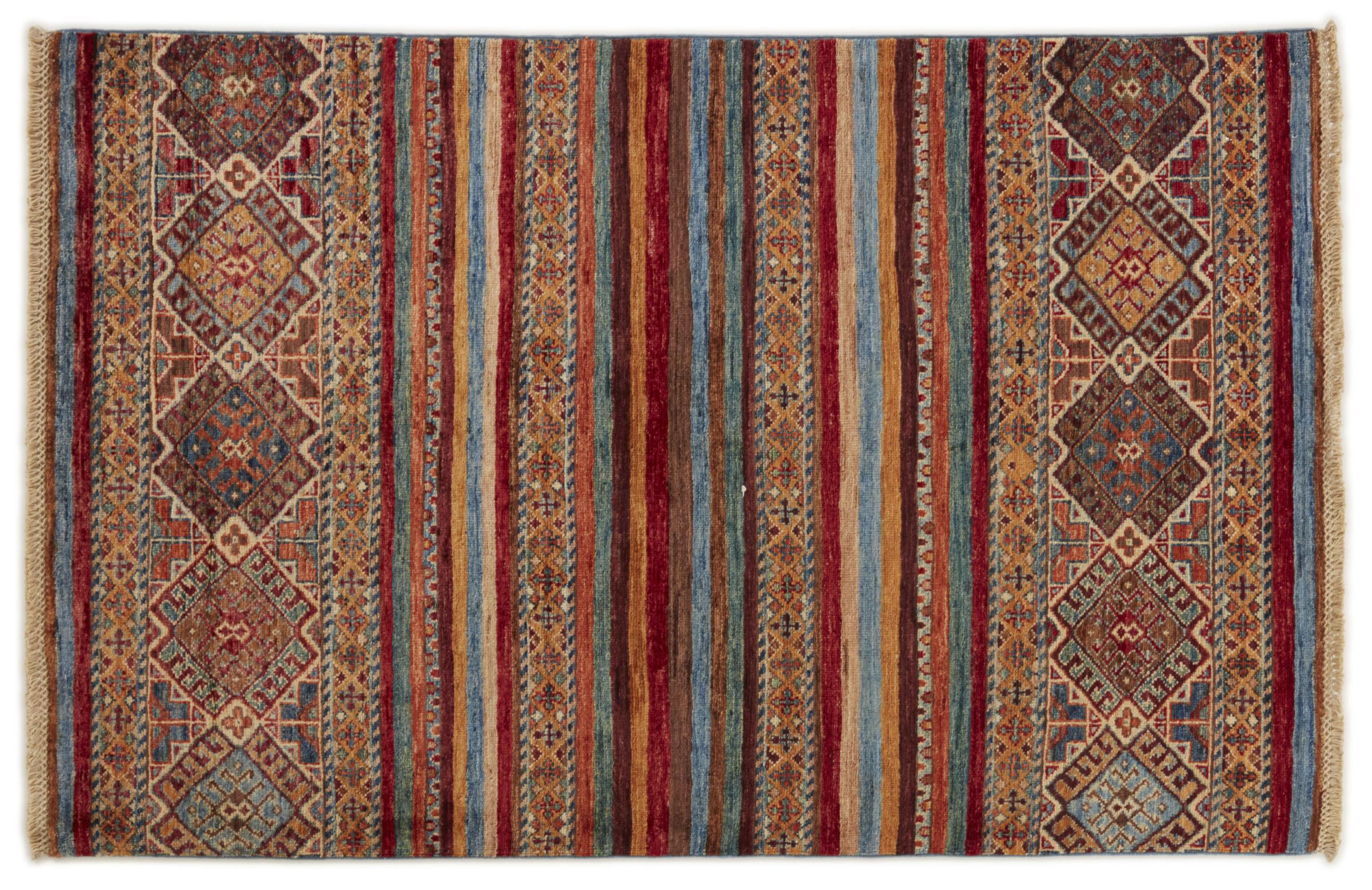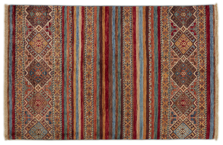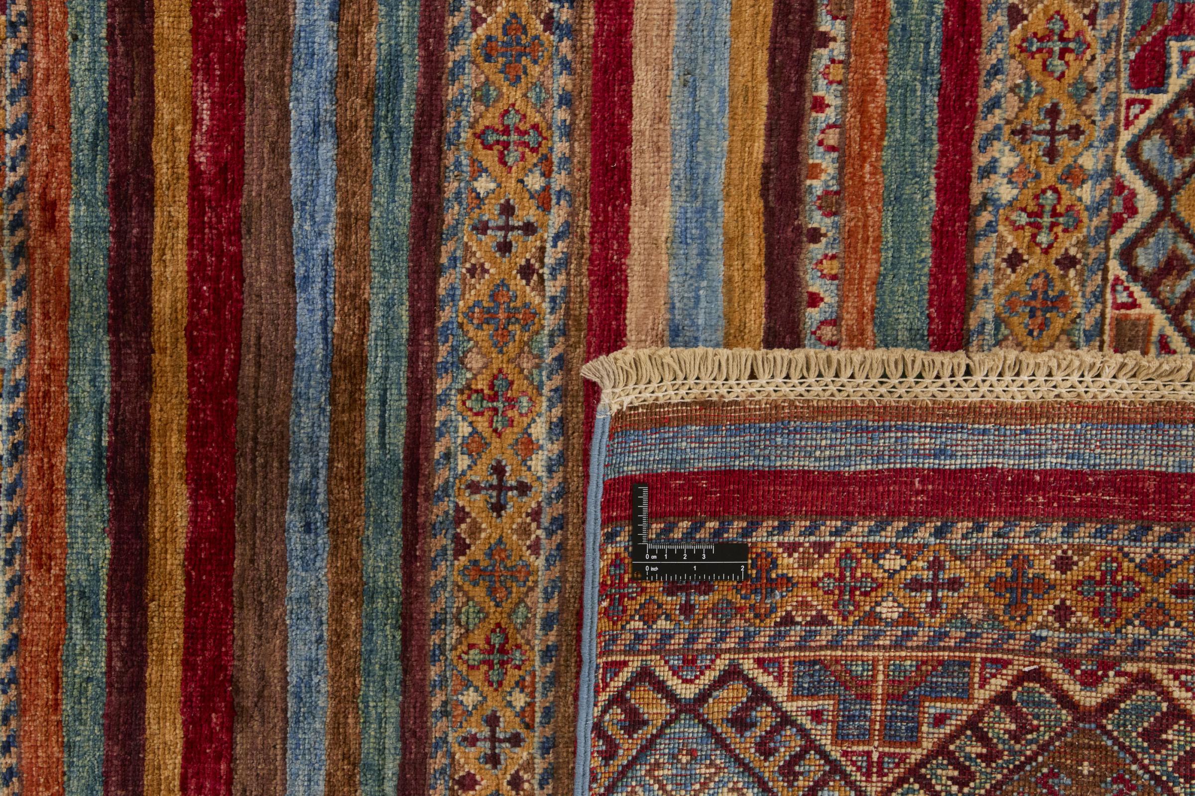 Esta alfombra de Arijana Shaal fue anudada a mano en Pakistán con la mejor artesanía. Promete una calidad muy alta y por lo tanto ofrece un placer duradero. El patrón de las rayas es variado y excitante. Se inspiró en el conocido diseño Moharamati. Si las alfombras monocromáticas son demasiado aburridas para ti, seguro que te encantará esta Arijana Shaal.