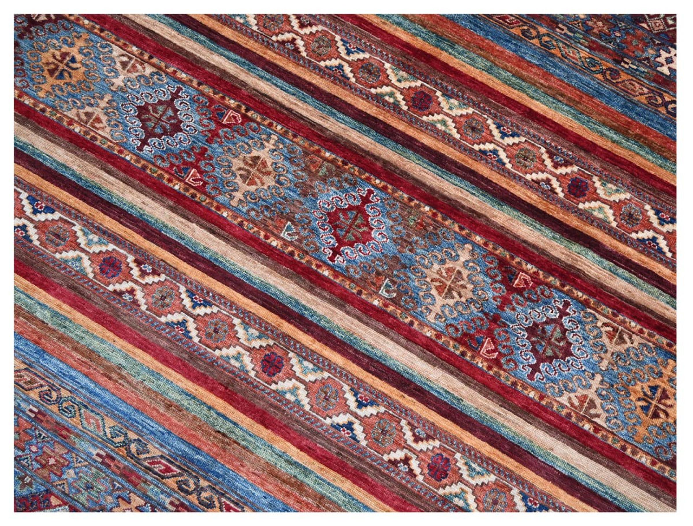 Esta alfombra de Arijana Shaal fue anudada a mano en Pakistán con la mejor artesanía. Promete una calidad muy alta y por lo tanto ofrece un placer duradero. El patrón de las rayas es variado y excitante. Se inspiró en el conocido diseño Moharamati. Si las alfombras monocromáticas son demasiado aburridas para ti, seguro que te encantará esta Arijana Shaal.