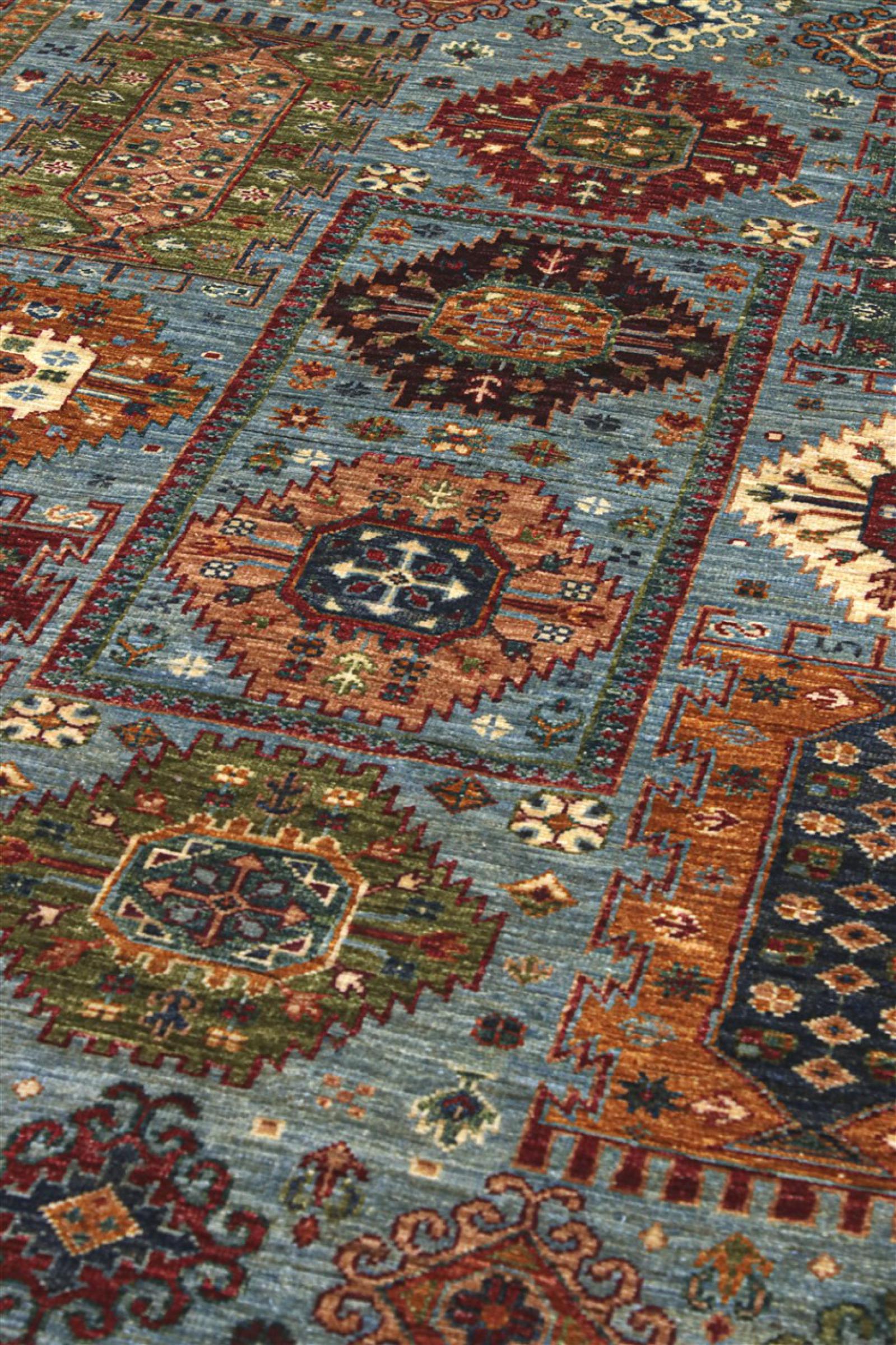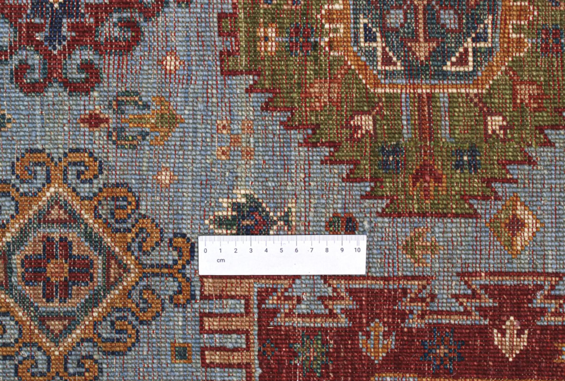 Esta alfombra está hecha de lana de oveja hilada a mano de la más alta calidad. Especialmente en Irán (antigua Persia), la lana de Afganistán y Pakistán sigue siendo hilada a mano antes de que comience el anudado de la alfombra. La lana ha demostrado ser un material natural y extremadamente resistente a lo largo de los siglos. Entre otras cosas, tiene propiedades repelentes de la suciedad y aislantes del calor. Al mismo tiempo, la lana es incomparablemente suave y tiene un brillo natural.