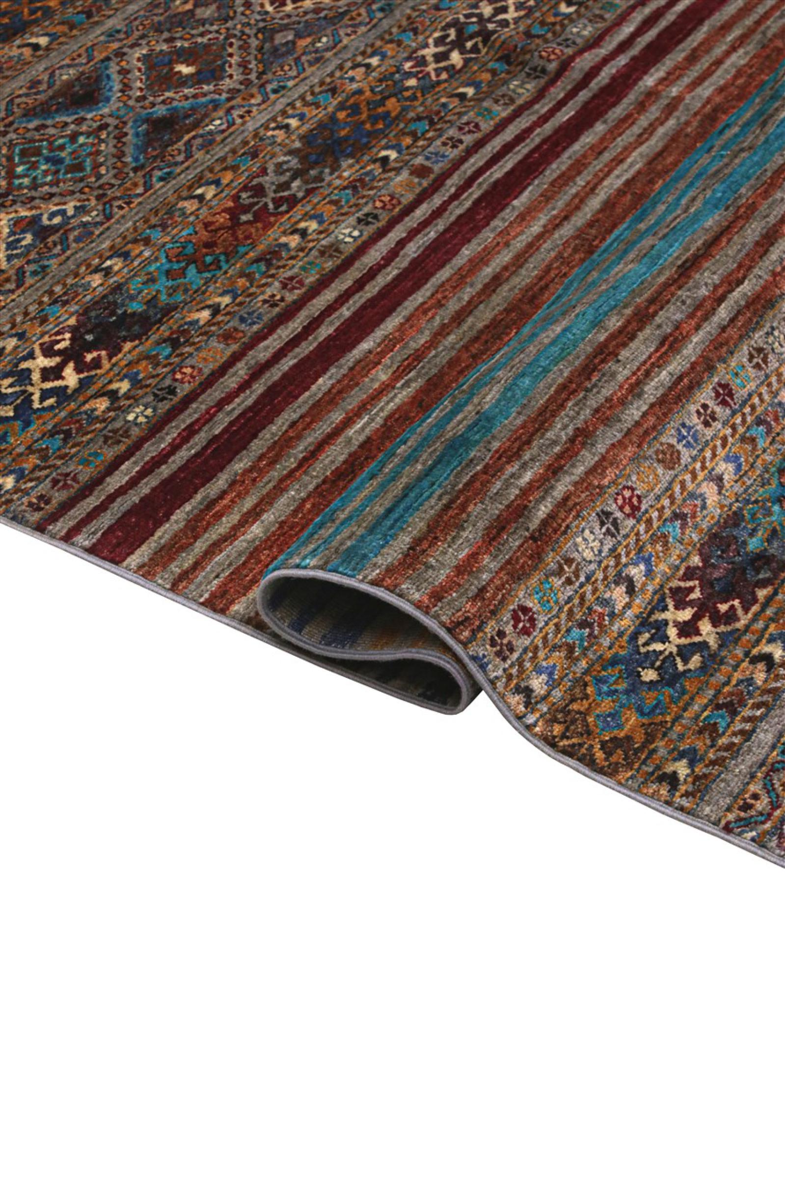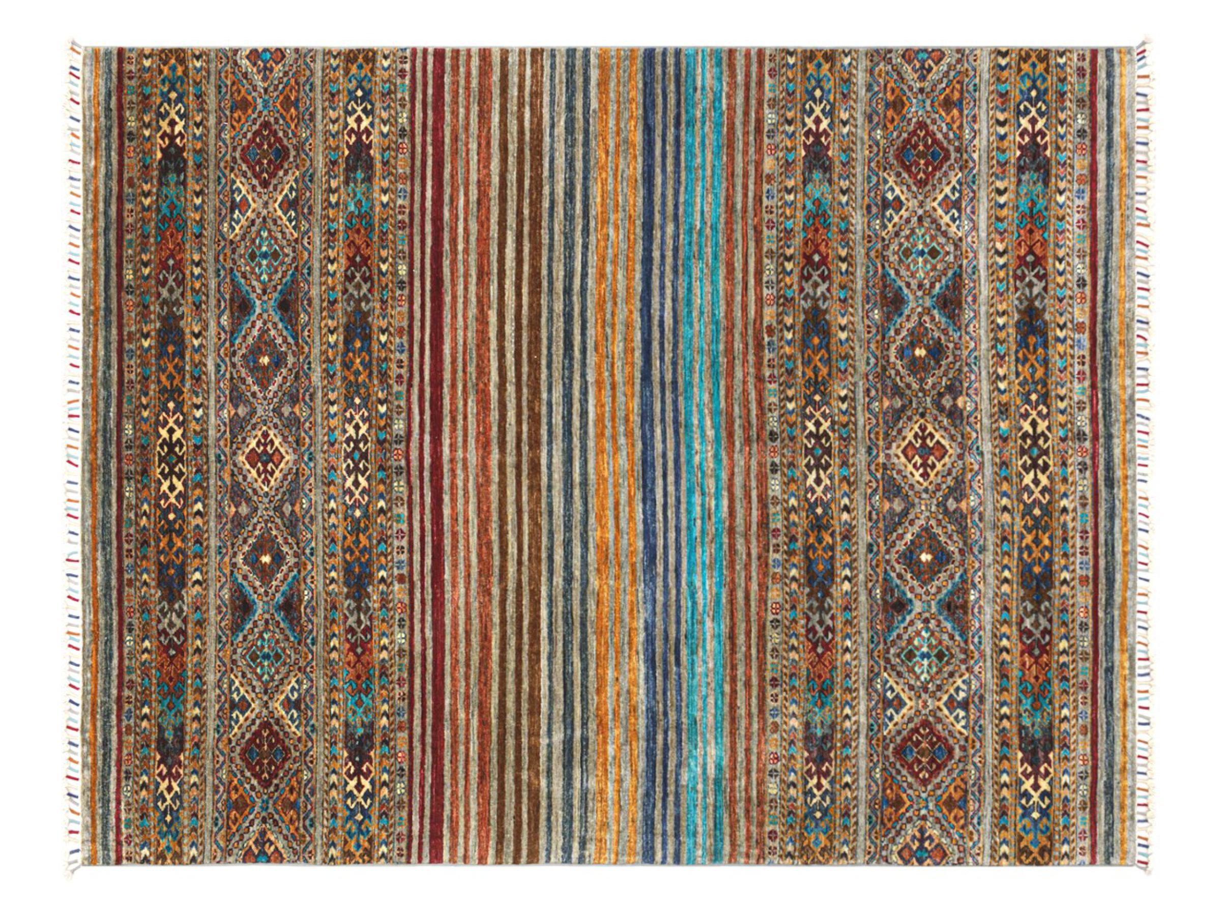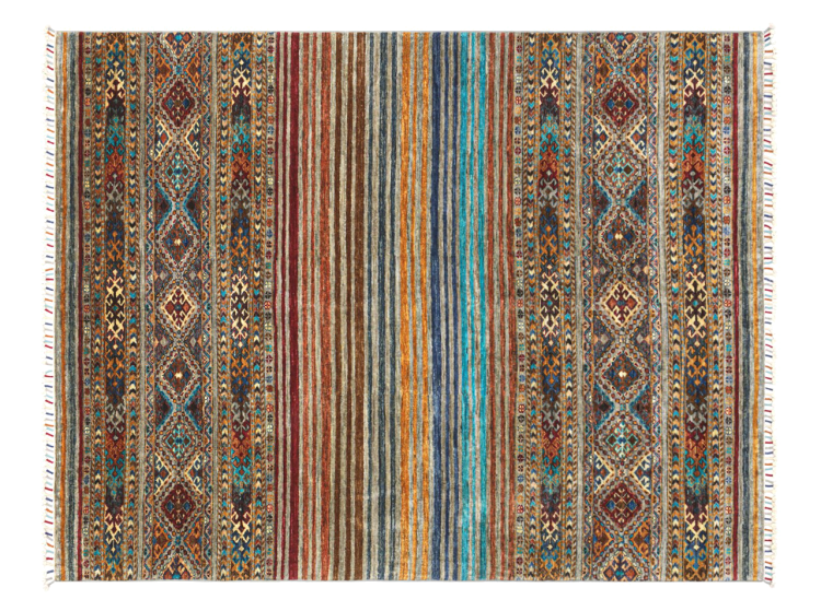 Esta alfombra de Arijana Shaal fue anudada a mano en Pakistán con la mejor artesanía. Promete una calidad muy alta y por lo tanto ofrece un placer duradero. El patrón de las rayas es variado y excitante. Se inspiró en el conocido diseño Moharamati. Si las alfombras monocromáticas son demasiado aburridas para ti, seguro que te encantará esta Arijana Shaal.