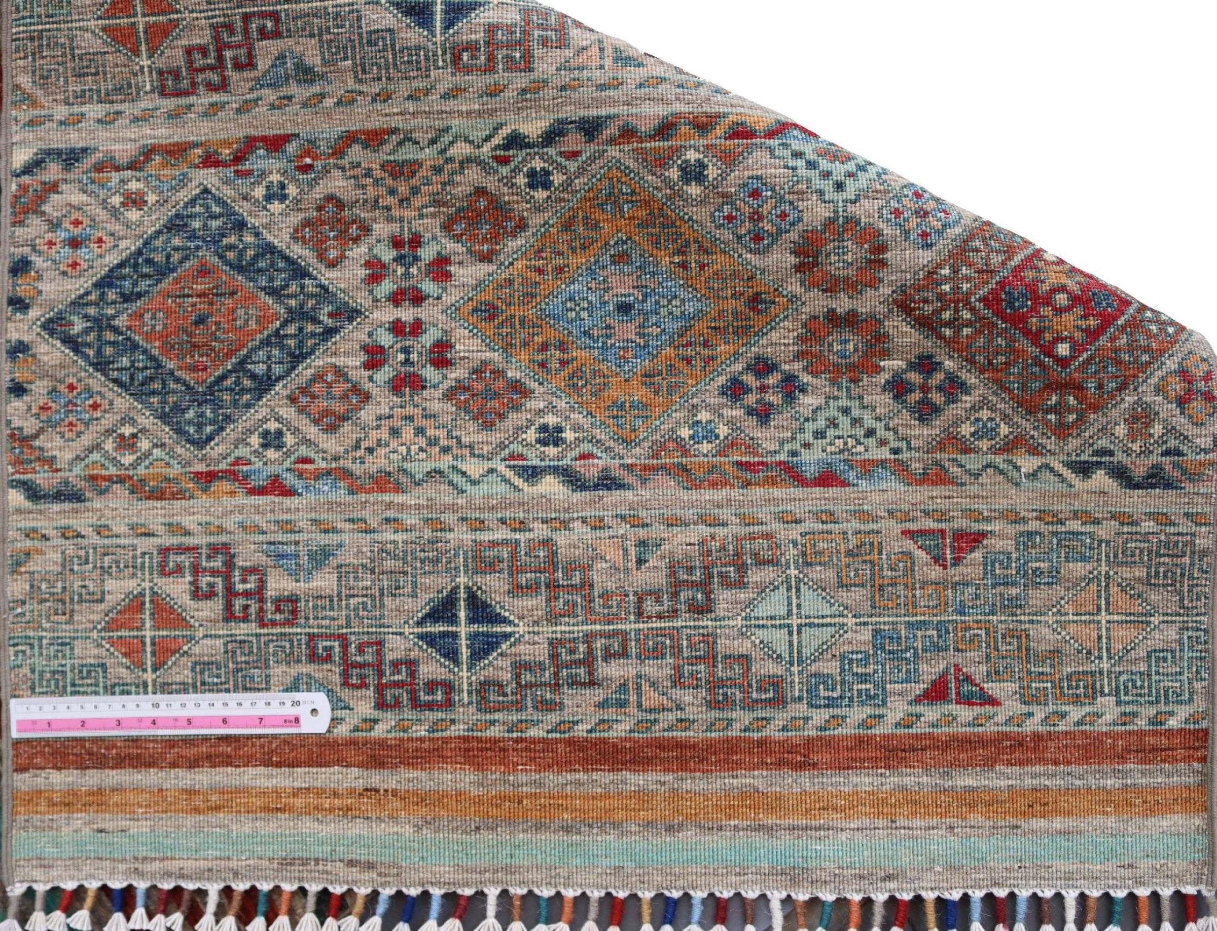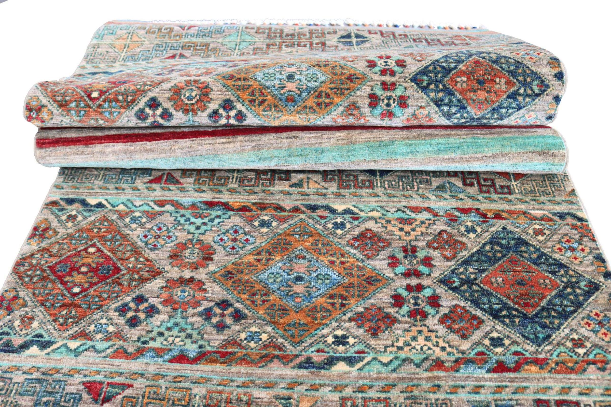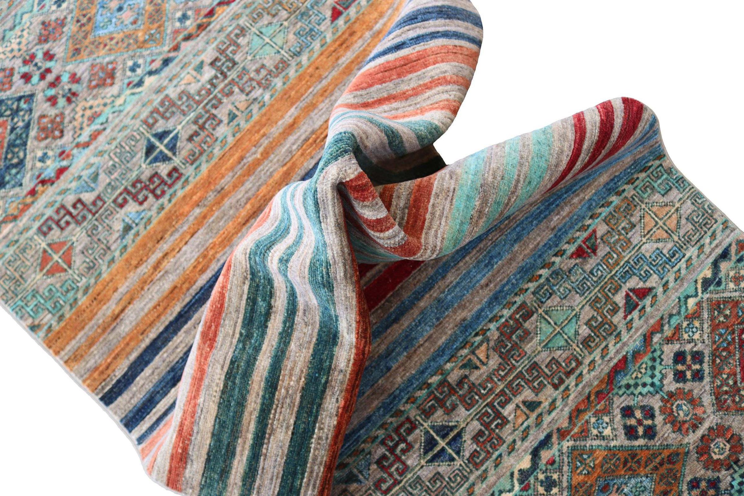 Esta alfombra de Arijana Shaal fue anudada a mano en Pakistán con la mejor artesanía. Promete una calidad muy alta y por lo tanto ofrece un placer duradero. El patrón de las rayas es variado y excitante. Se inspiró en el conocido diseño Moharamati. Si las alfombras monocromáticas son demasiado aburridas para ti, seguro que te encantará esta Arijana Shaal.