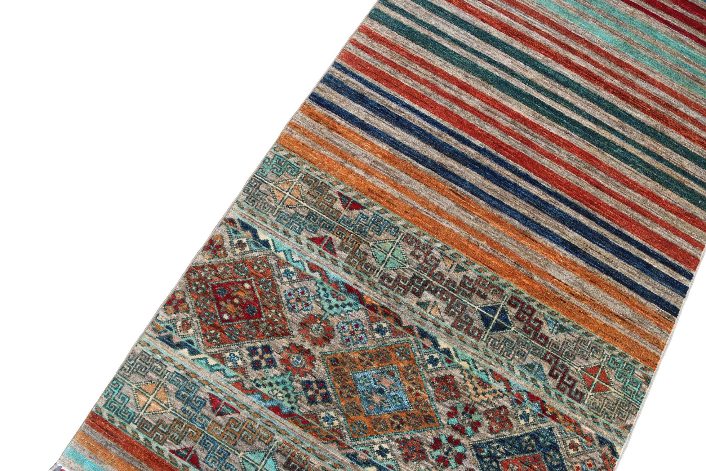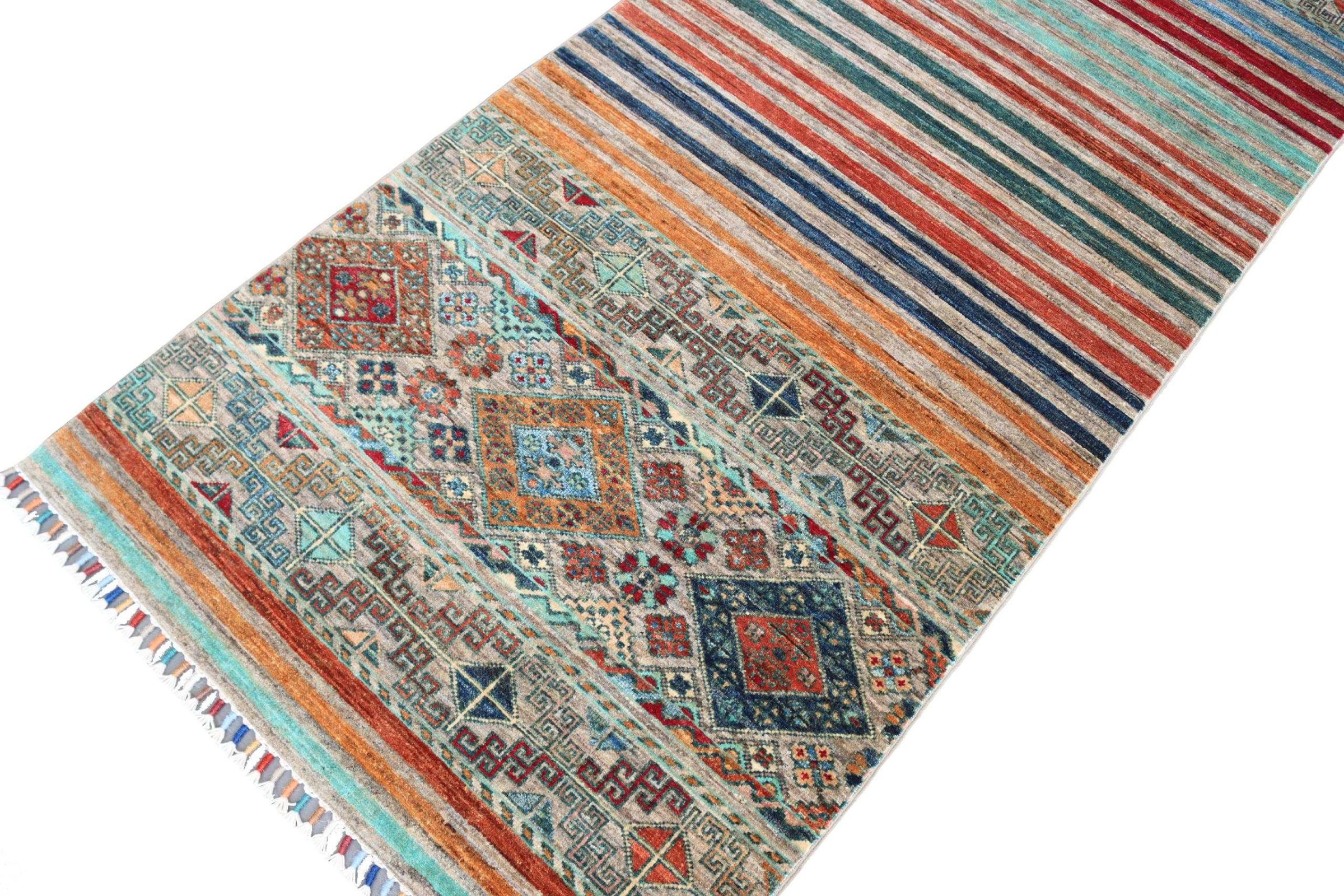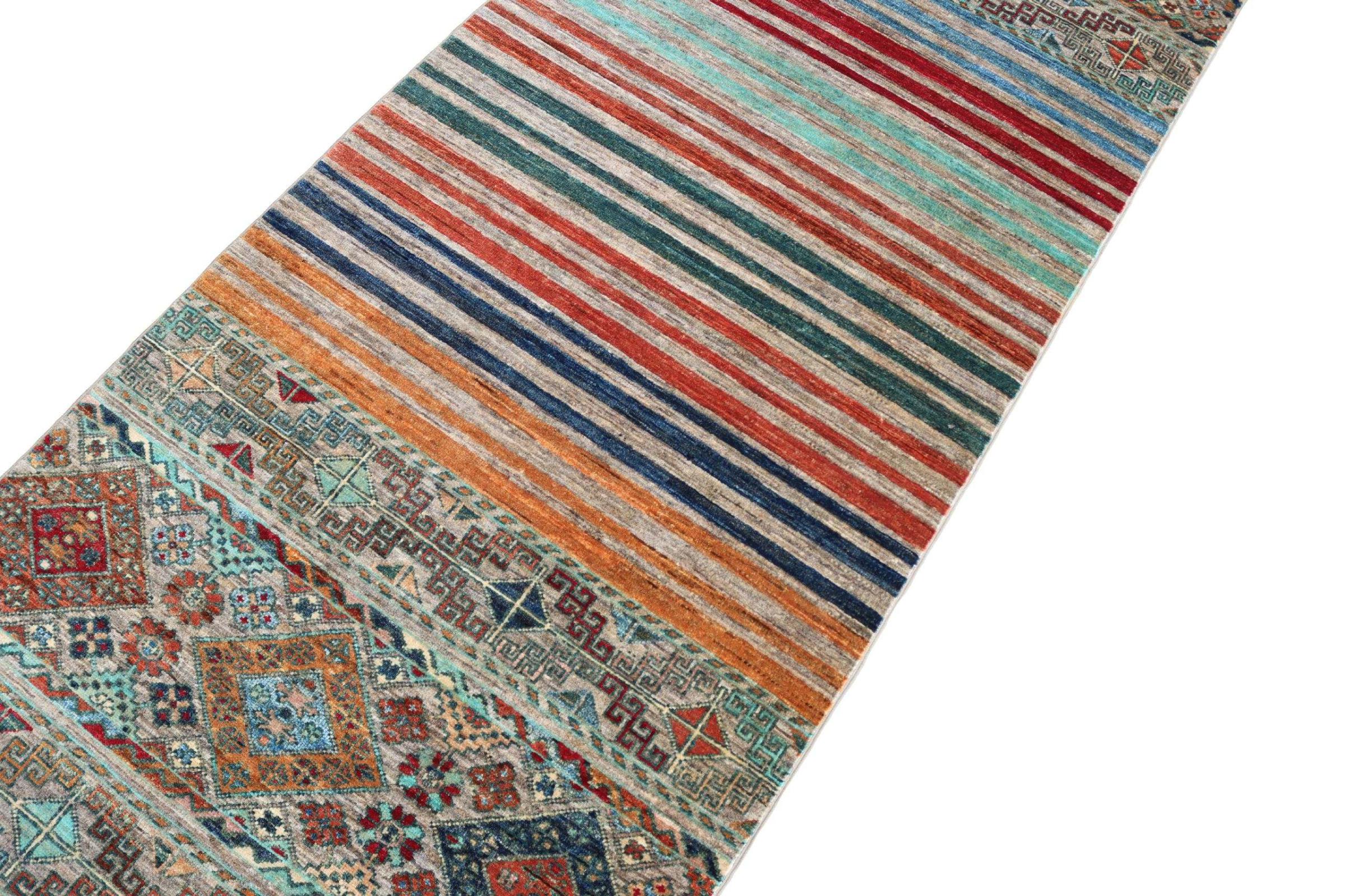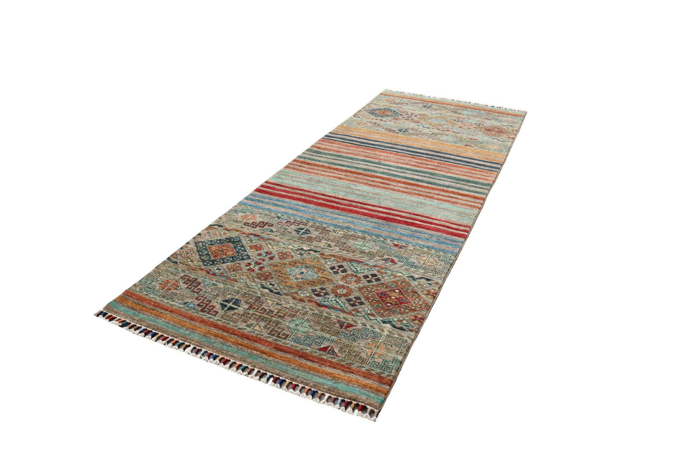 Esta alfombra de Arijana Shaal fue anudada a mano en Pakistán con la mejor artesanía. Promete una calidad muy alta y por lo tanto ofrece un placer duradero. El patrón de las rayas es variado y excitante. Se inspiró en el conocido diseño Moharamati. Si las alfombras monocromáticas son demasiado aburridas para ti, seguro que te encantará esta Arijana Shaal.