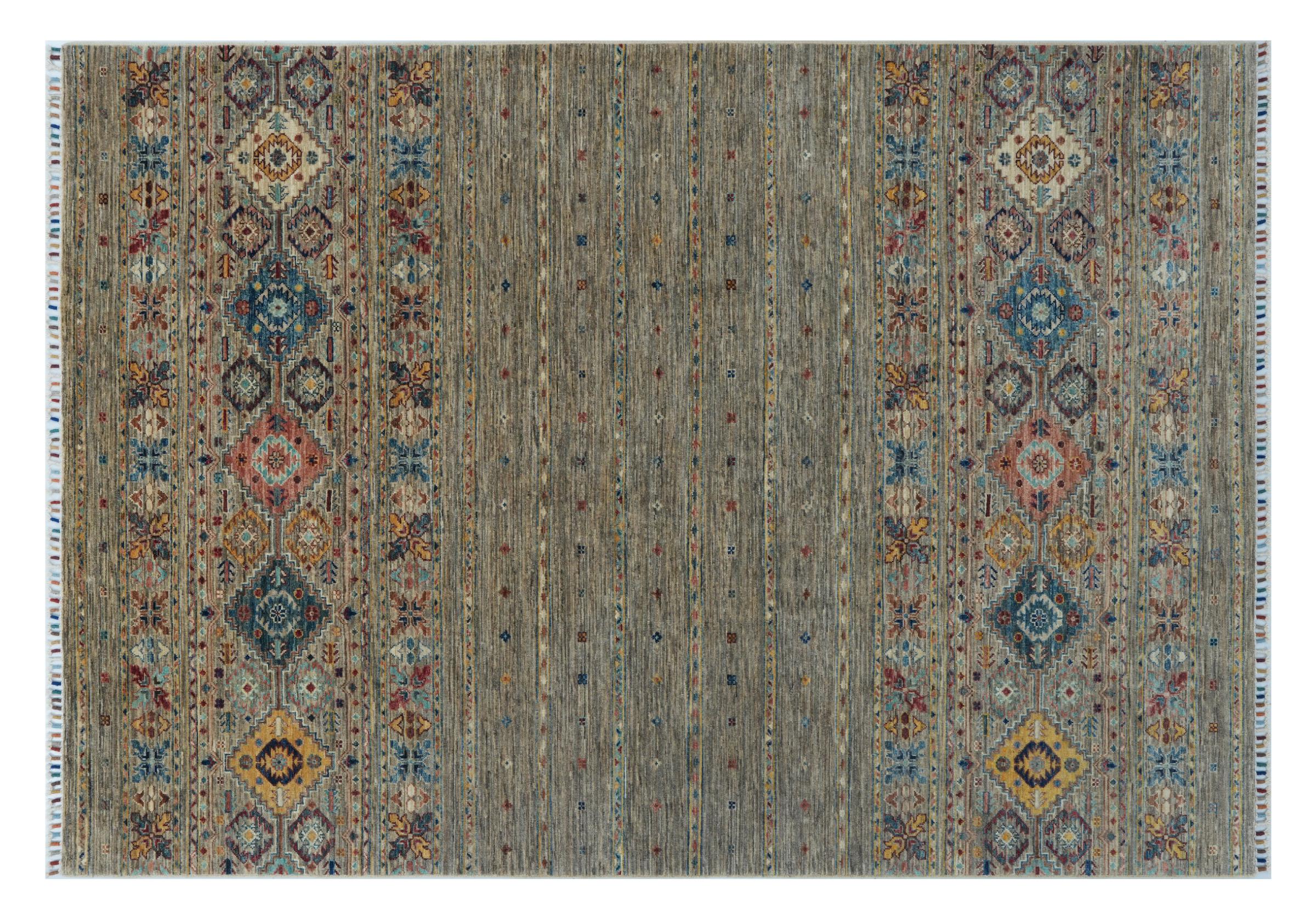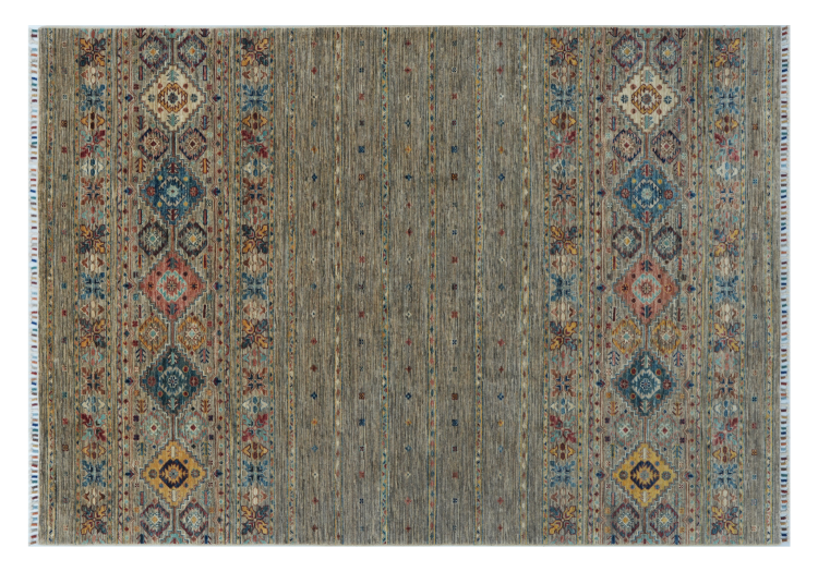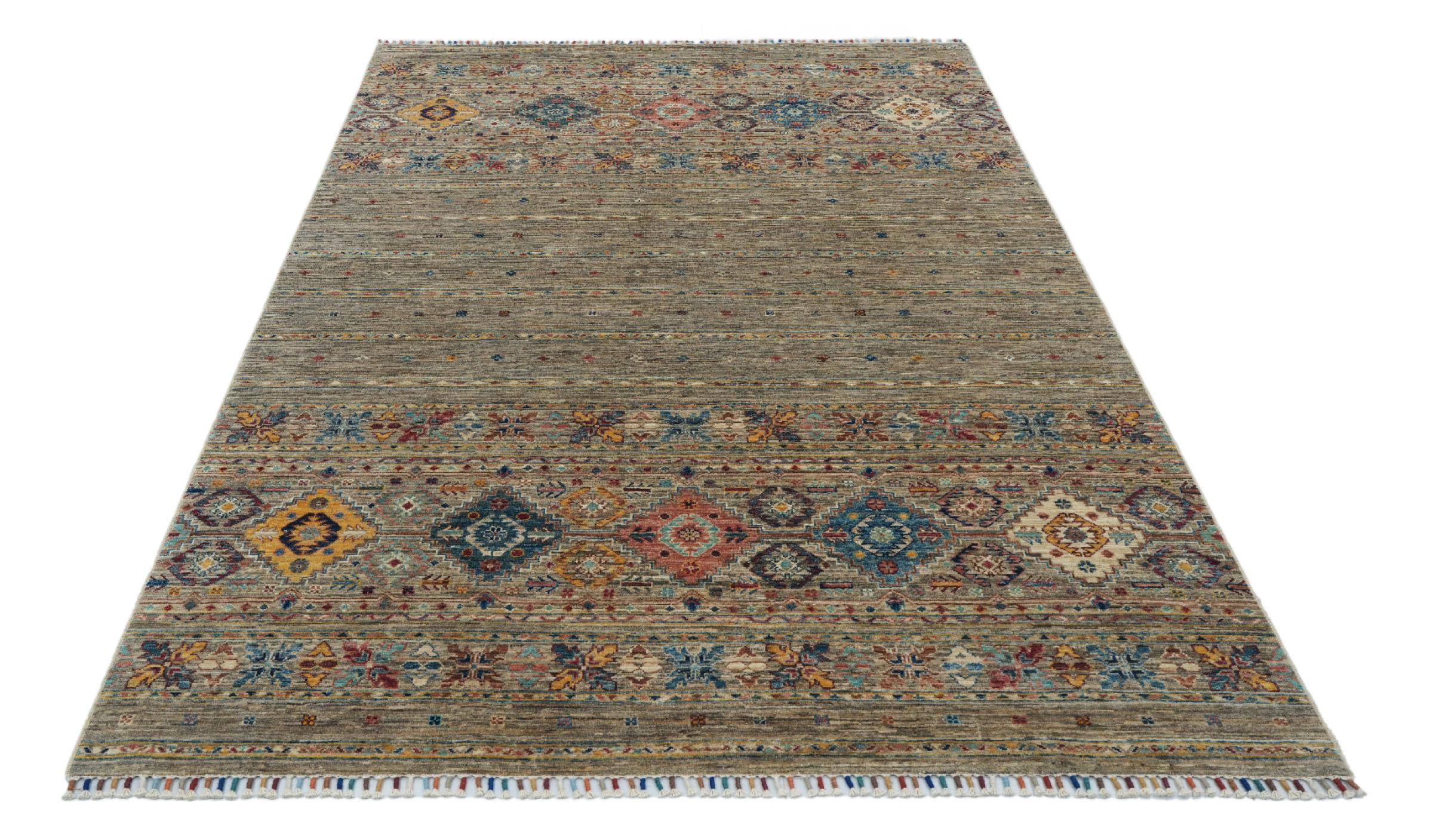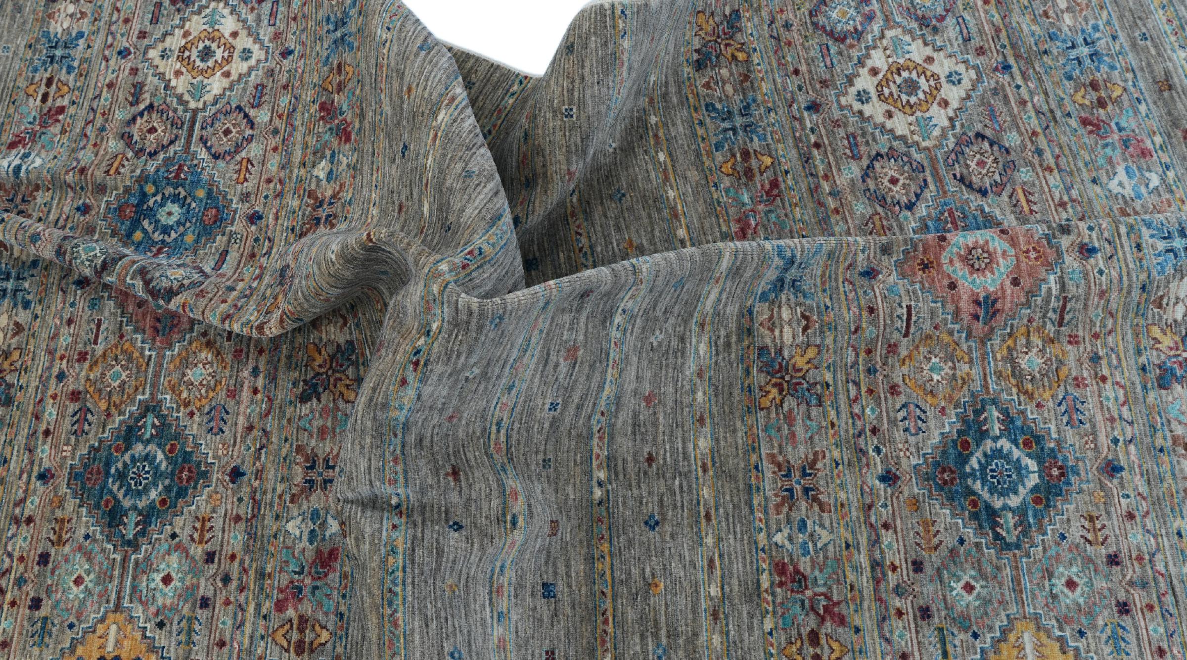 Esta alfombra de Arijana Shaal fue anudada a mano en Pakistán con la mejor artesanía. Promete una calidad muy alta y por lo tanto ofrece un placer duradero. El patrón de las rayas es variado y excitante. Se inspiró en el conocido diseño Moharamati. Si las alfombras monocromáticas son demasiado aburridas para ti, seguro que te encantará esta Arijana Shaal.