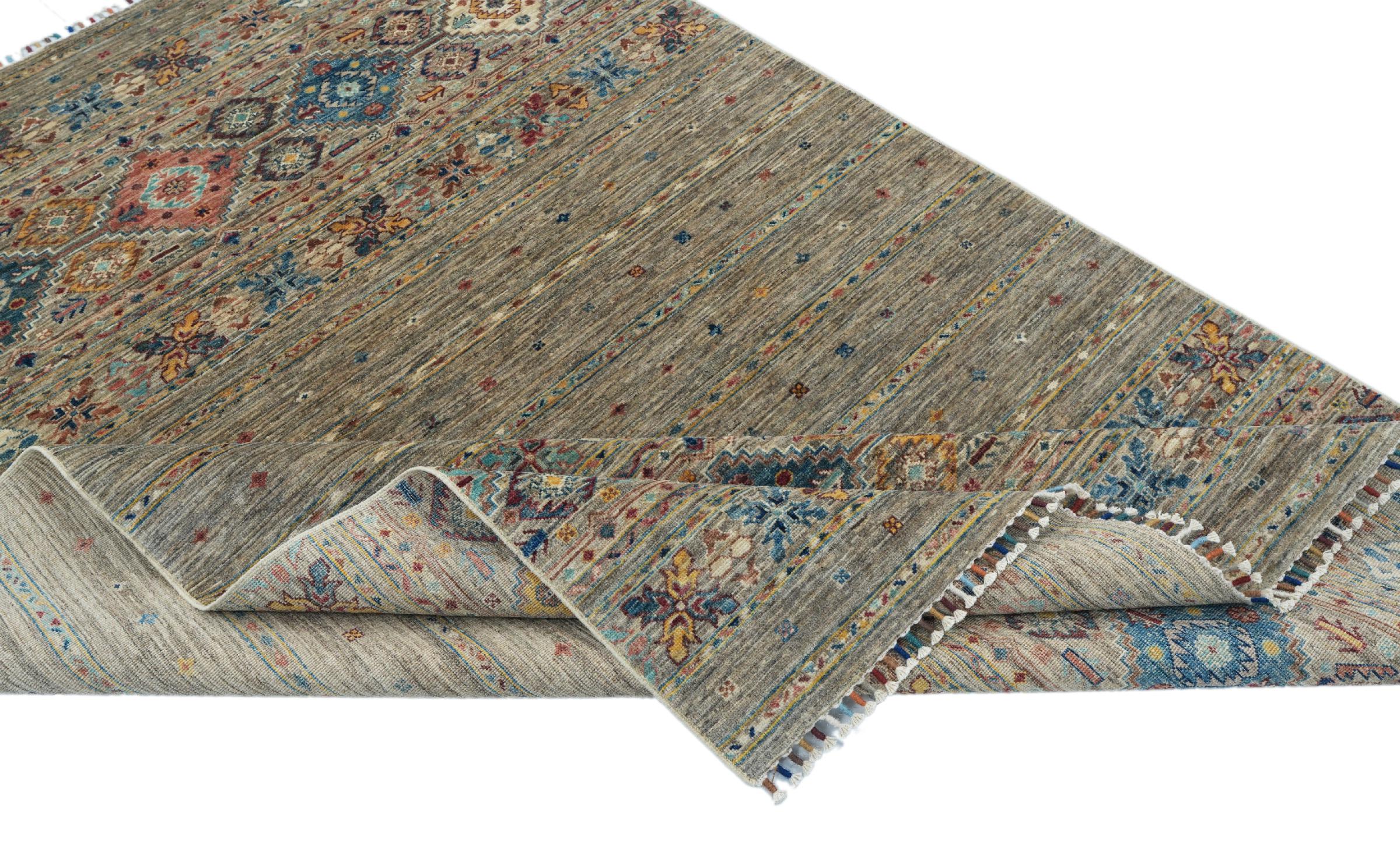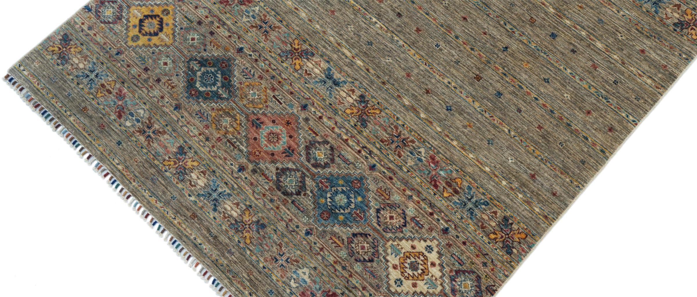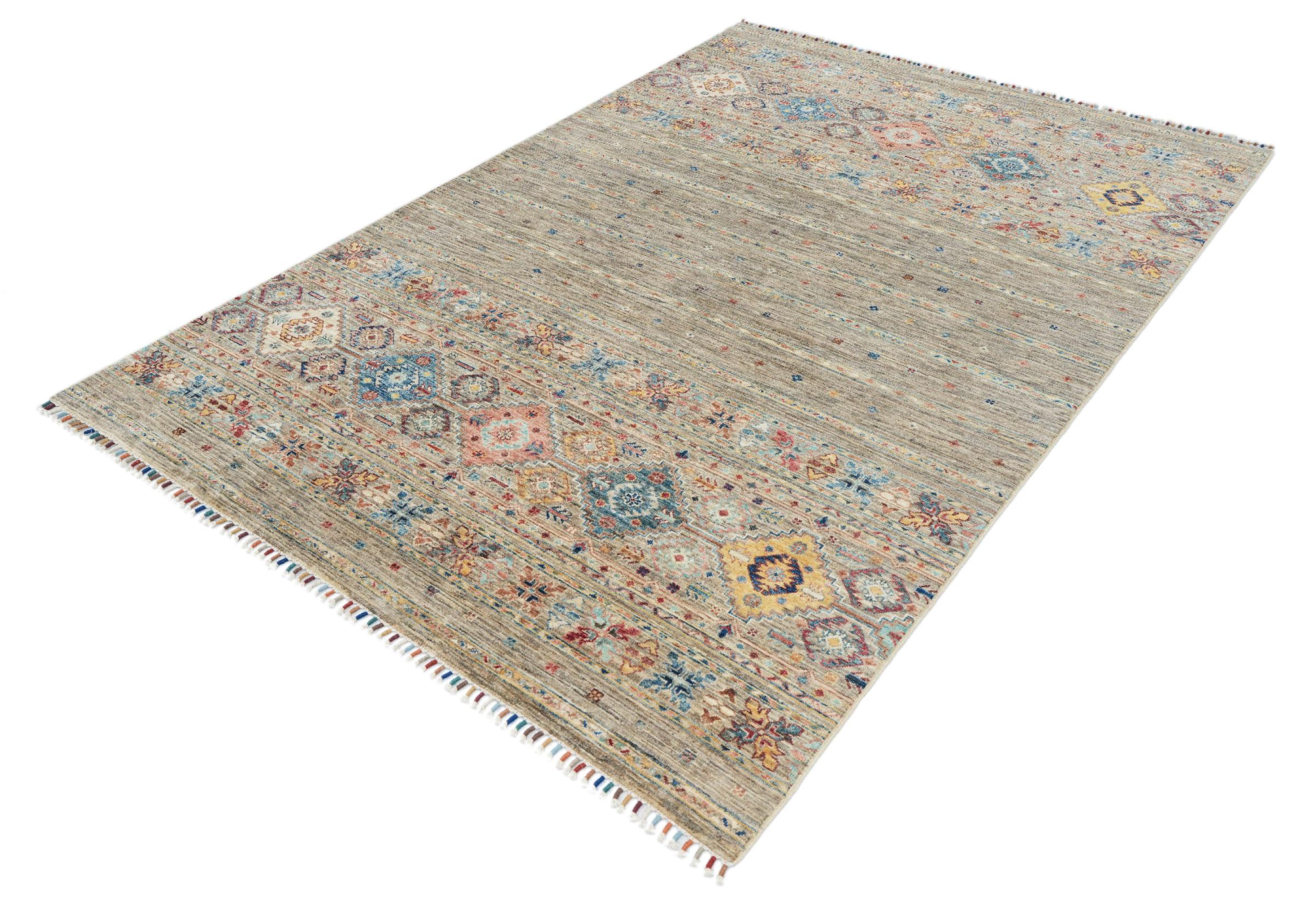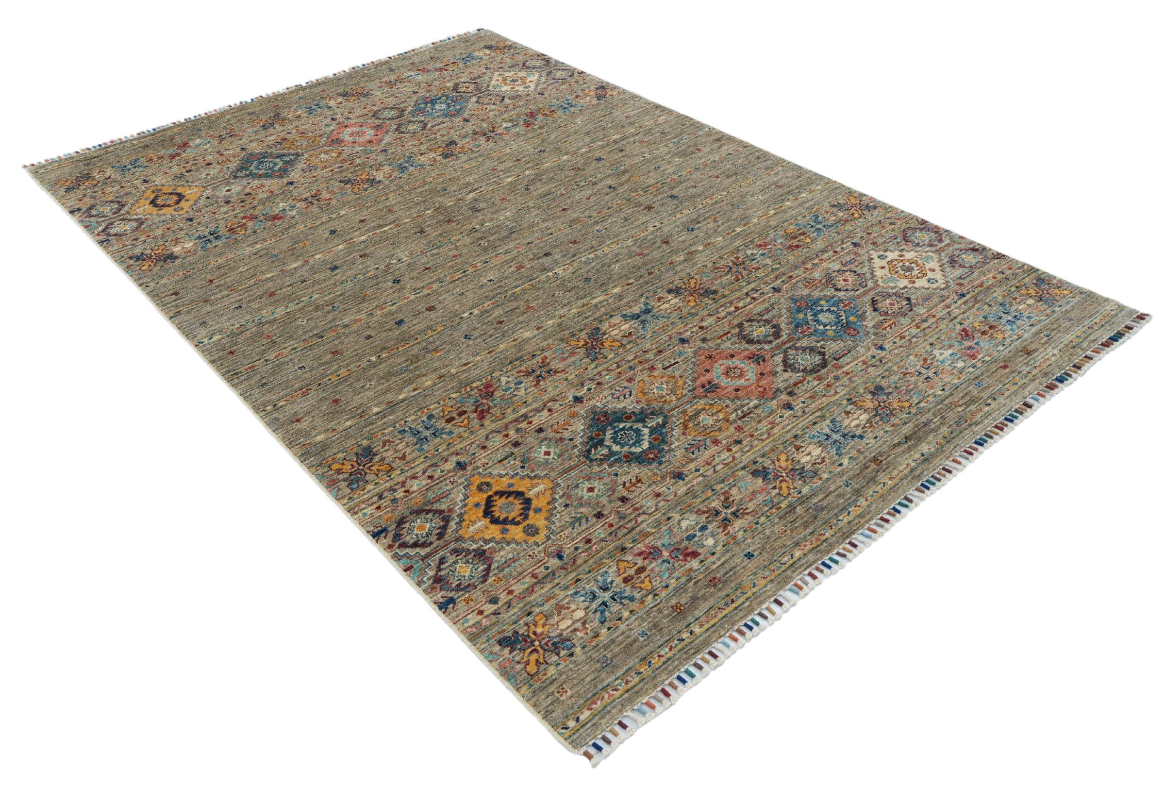 Esta alfombra de Arijana Shaal fue anudada a mano en Pakistán con la mejor artesanía. Promete una calidad muy alta y por lo tanto ofrece un placer duradero. El patrón de las rayas es variado y excitante. Se inspiró en el conocido diseño Moharamati. Si las alfombras monocromáticas son demasiado aburridas para ti, seguro que te encantará esta Arijana Shaal.