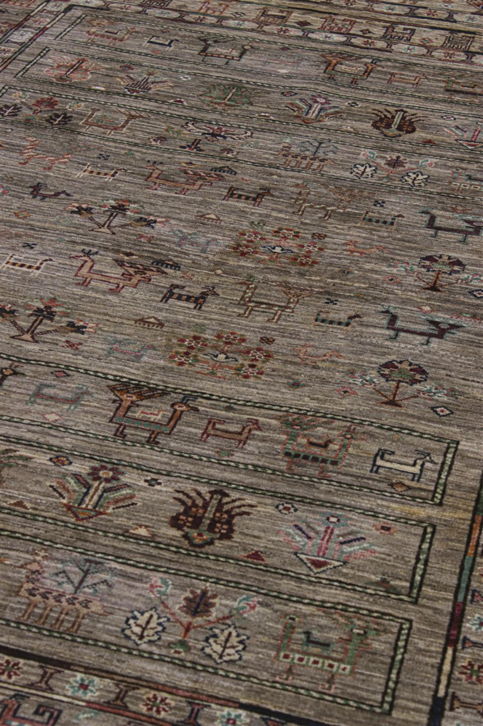Esta alfombra está hecha de lana de oveja hilada a mano de la más alta calidad. Especialmente en Irán (antigua Persia), la lana de Afganistán y Pakistán sigue siendo hilada a mano antes de que comience el anudado de la alfombra. La lana ha demostrado ser un material natural y extremadamente resistente a lo largo de los siglos. Entre otras cosas, tiene propiedades repelentes de la suciedad y aislantes del calor. Al mismo tiempo, la lana es incomparablemente suave y tiene un brillo natural.