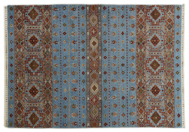 Esta alfombra de Arijana Shaal fue anudada a mano en Pakistán con la mejor artesanía. Promete una calidad muy alta y por lo tanto ofrece un placer duradero. El patrón de las rayas es variado y excitante. Se inspiró en el conocido diseño Moharamati. Si las alfombras monocromáticas son demasiado aburridas para ti, seguro que te encantará esta Arijana Shaal.