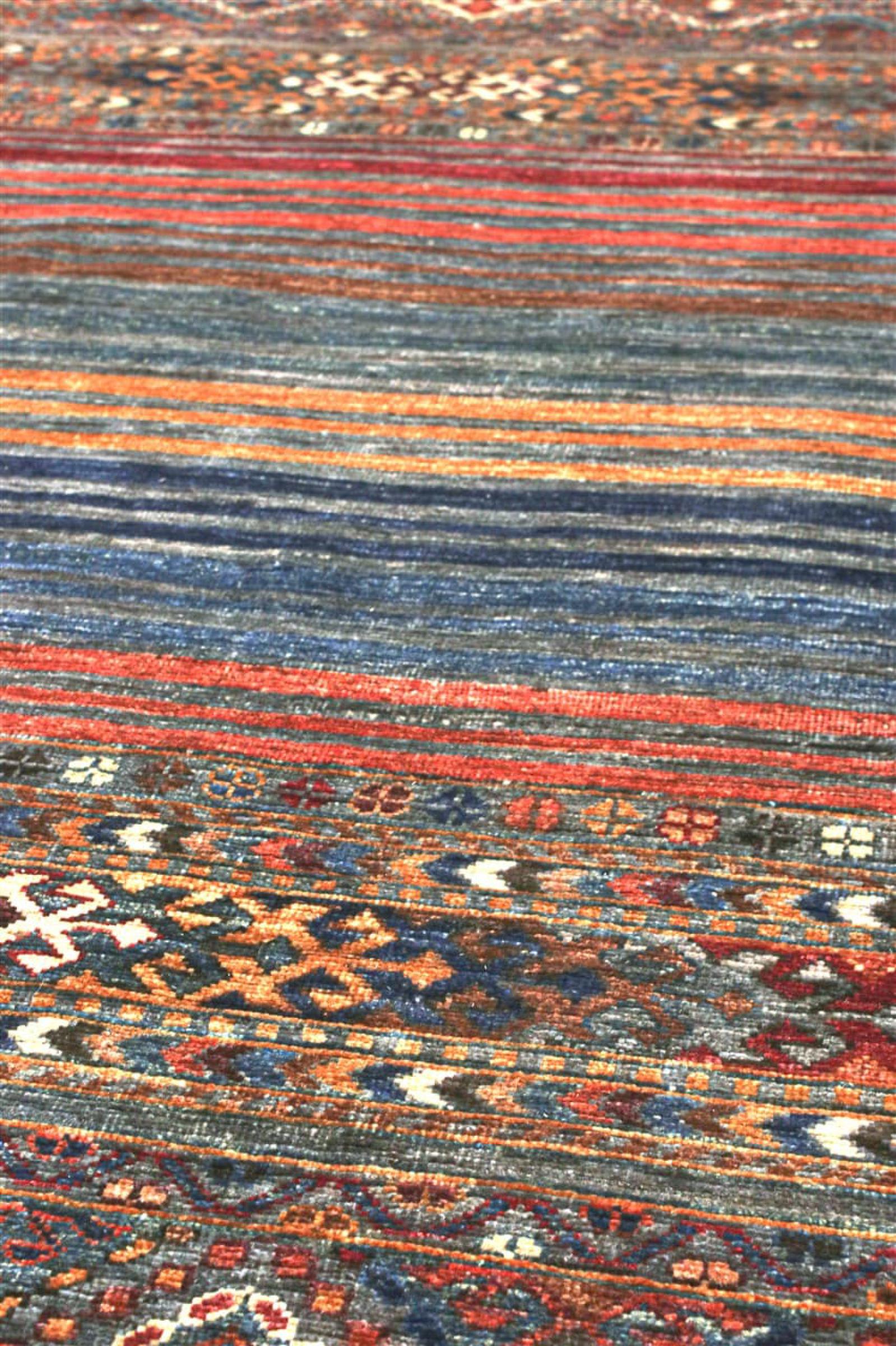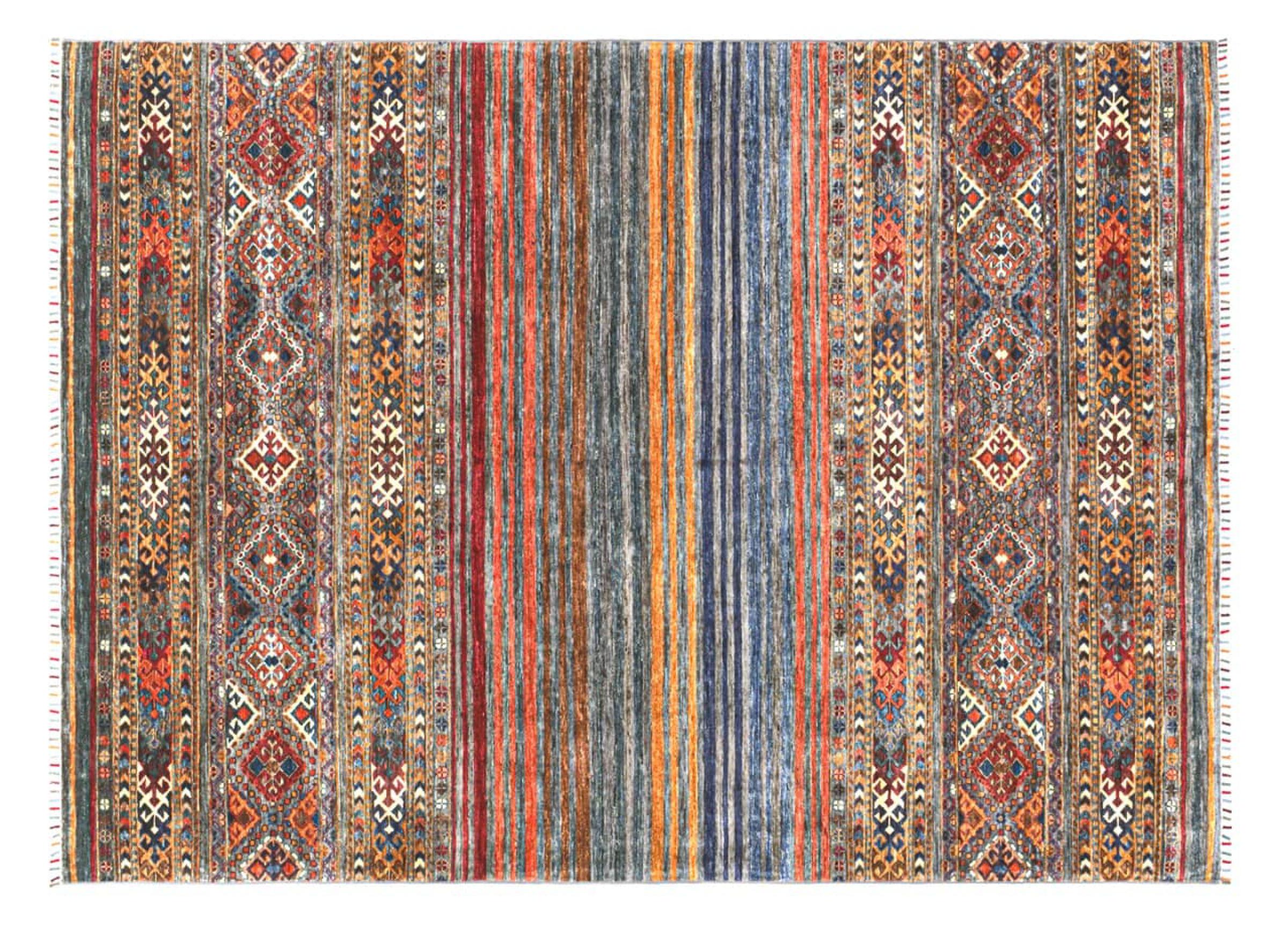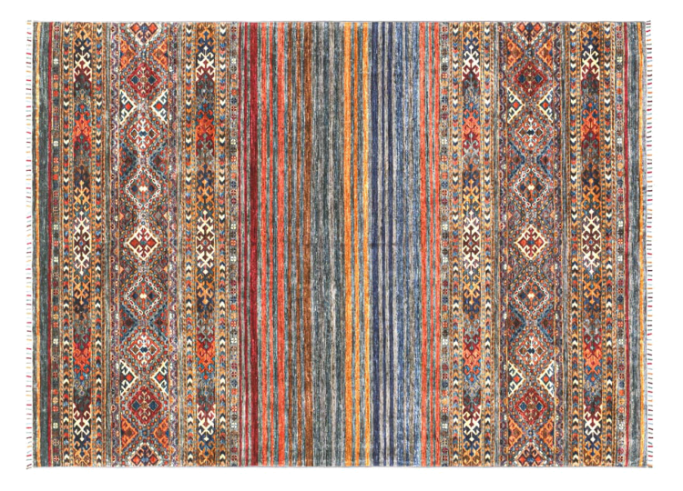 Esta alfombra de Arijana Shaal fue anudada a mano en Pakistán con la mejor artesanía. Promete una calidad muy alta y por lo tanto ofrece un placer duradero. El patrón de las rayas es variado y excitante. Se inspiró en el conocido diseño Moharamati. Si las alfombras monocromáticas son demasiado aburridas para ti, seguro que te encantará esta Arijana Shaal.