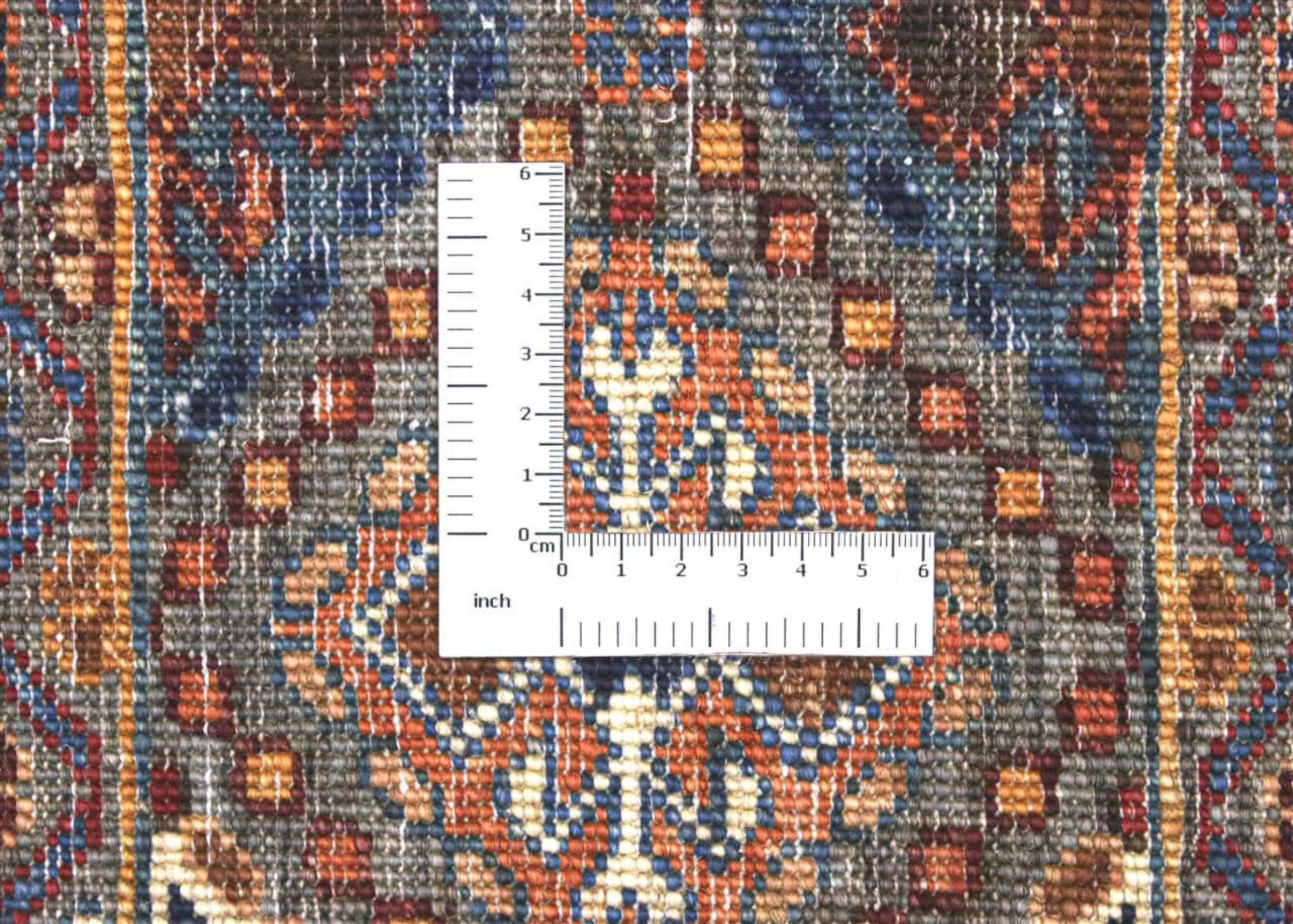 Esta alfombra está hecha de lana de oveja hilada a mano de la más alta calidad. Especialmente en Irán (antigua Persia), la lana de Afganistán y Pakistán sigue siendo hilada a mano antes de que comience el anudado de la alfombra. La lana ha demostrado ser un material natural y extremadamente resistente a lo largo de los siglos. Entre otras cosas, tiene propiedades repelentes de la suciedad y aislantes del calor. Al mismo tiempo, la lana es incomparablemente suave y tiene un brillo natural.