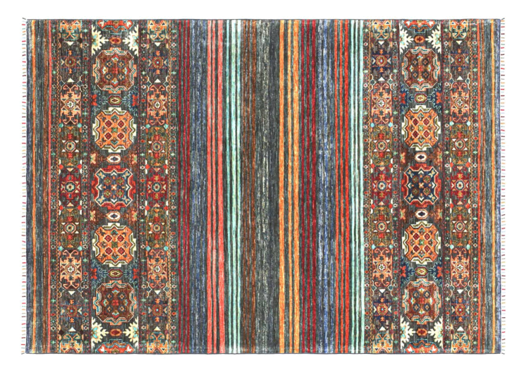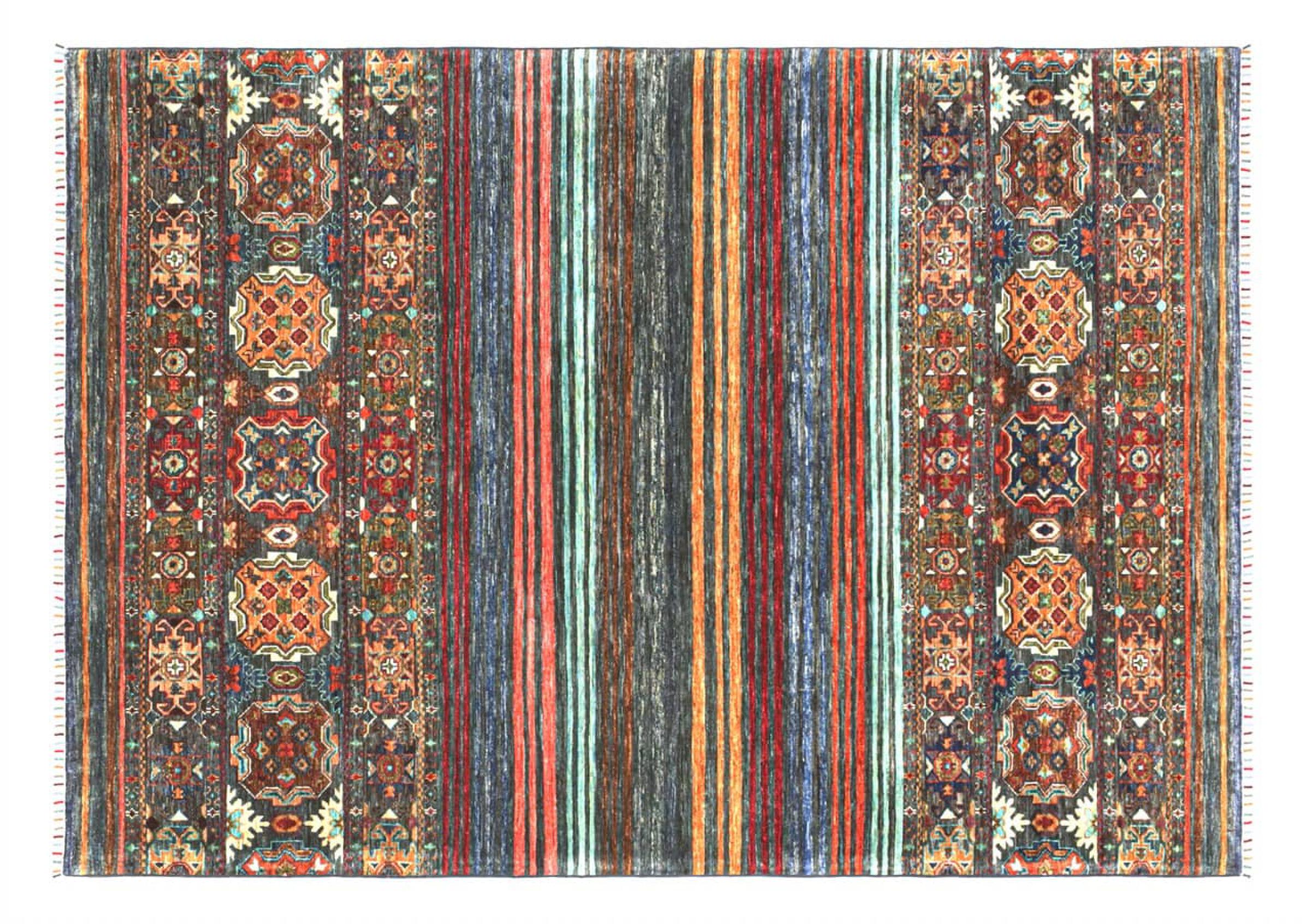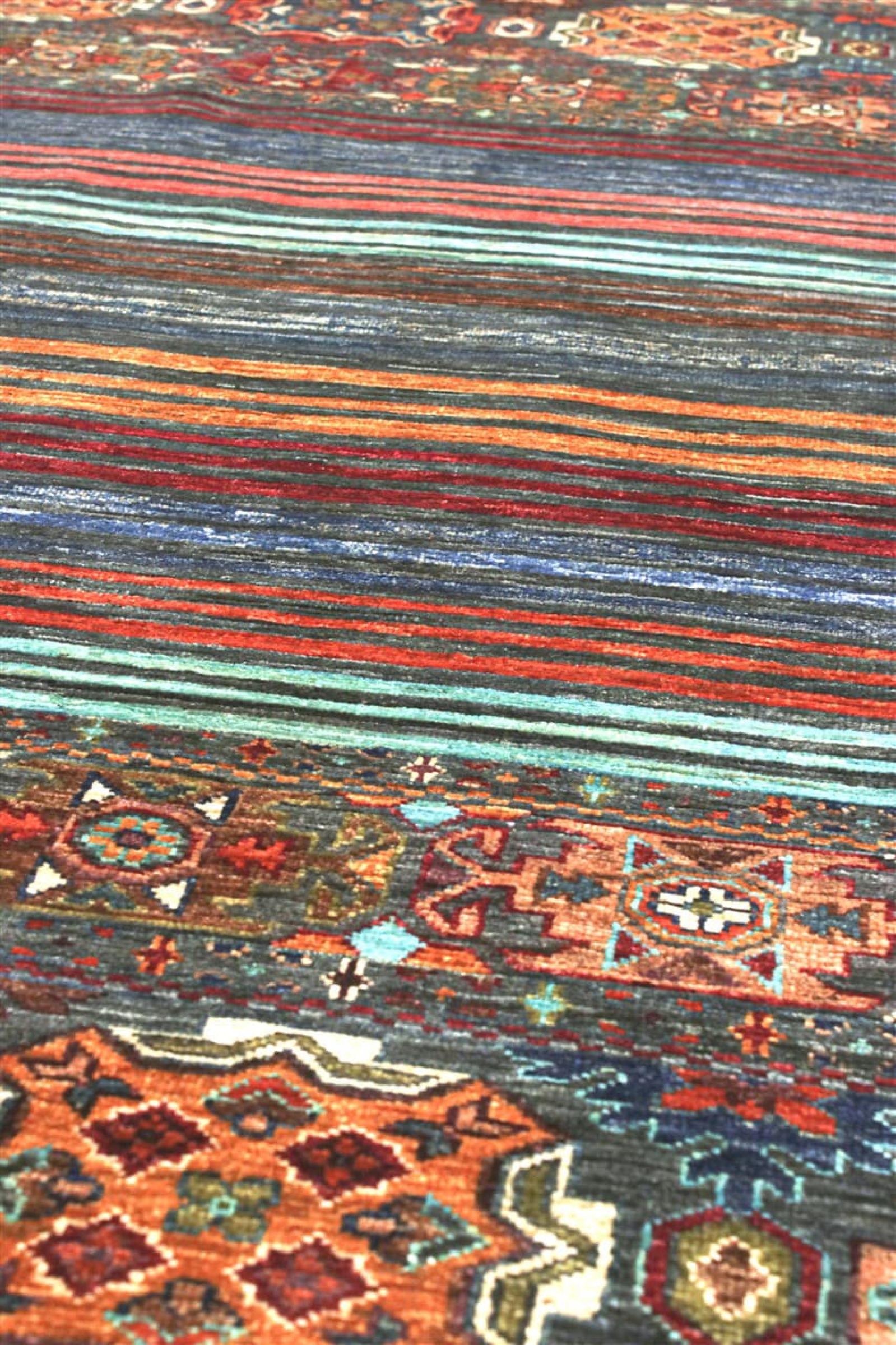Esta alfombra de Arijana Shaal fue anudada a mano en Pakistán con la mejor artesanía. Promete una calidad muy alta y por lo tanto ofrece un placer duradero. El patrón de las rayas es variado y excitante. Se inspiró en el conocido diseño Moharamati. Si las alfombras monocromáticas son demasiado aburridas para ti, seguro que te encantará esta Arijana Shaal.