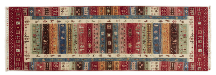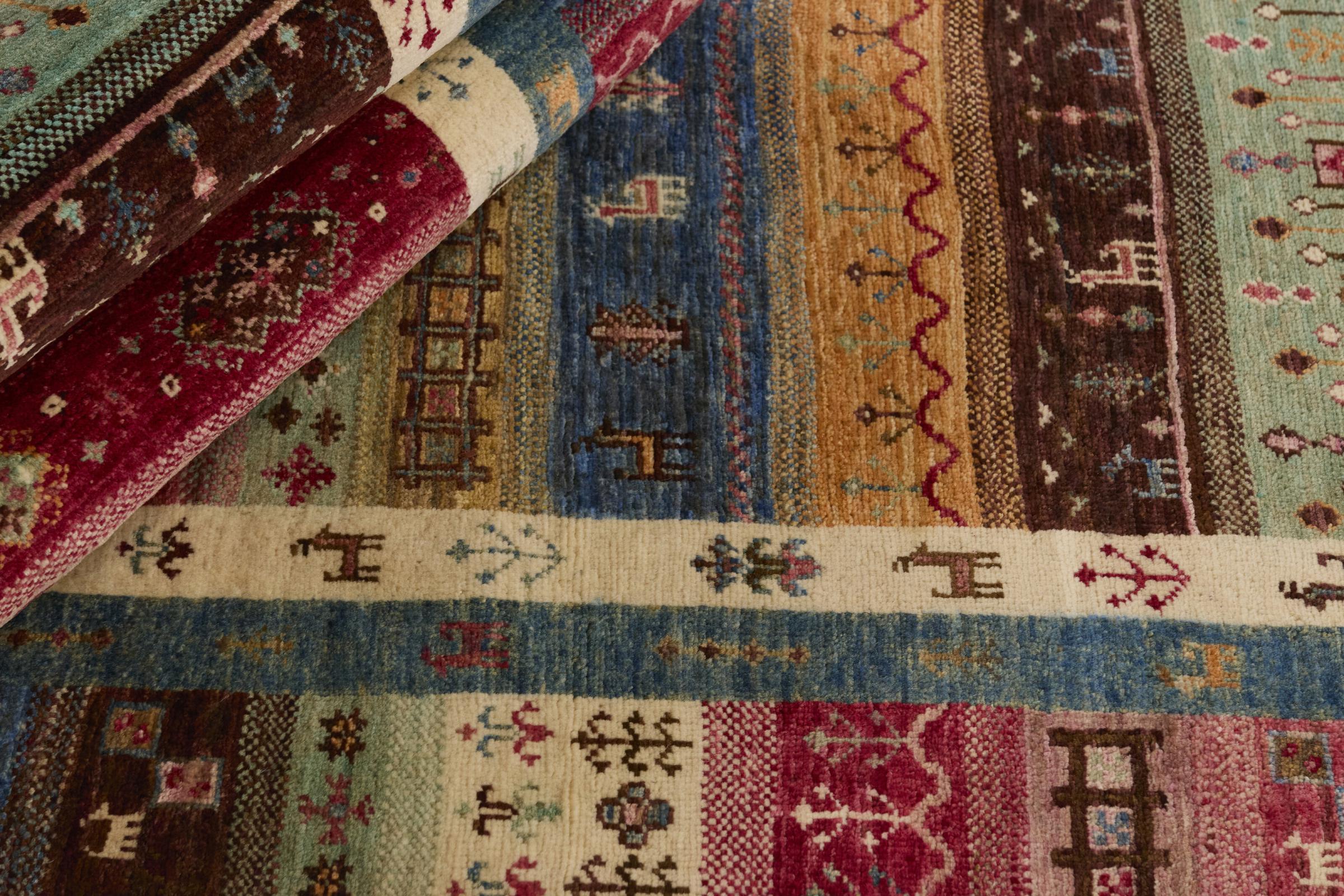 Esta alfombra de Arijana Shaal fue anudada a mano en Pakistán con la mejor artesanía. Promete una calidad muy alta y por lo tanto ofrece un placer duradero. El patrón de las rayas es variado y excitante. Se inspiró en el conocido diseño Moharamati. Si las alfombras monocromáticas son demasiado aburridas para ti, seguro que te encantará esta Arijana Shaal.