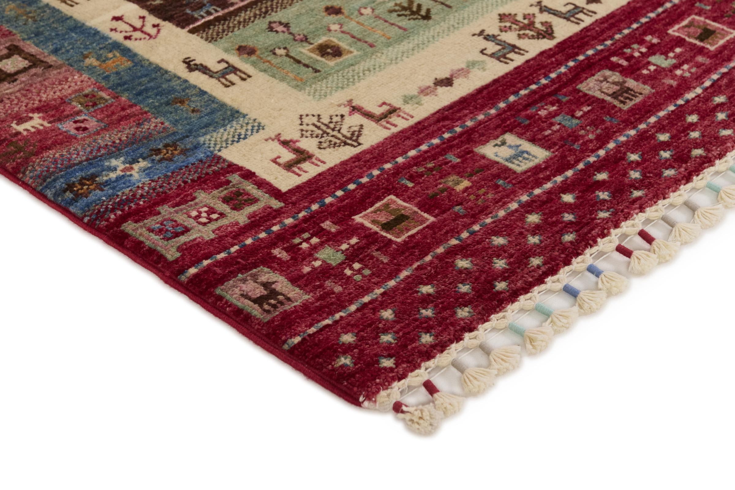 Esta alfombra está hecha de lana de oveja hilada a mano de la más alta calidad. Especialmente en Irán (antigua Persia), la lana de Afganistán y Pakistán sigue siendo hilada a mano antes de que comience el anudado de la alfombra. La lana ha demostrado ser un material natural y extremadamente resistente a lo largo de los siglos. Entre otras cosas, tiene propiedades repelentes de la suciedad y aislantes del calor. Al mismo tiempo, la lana es incomparablemente suave y tiene un brillo natural.
