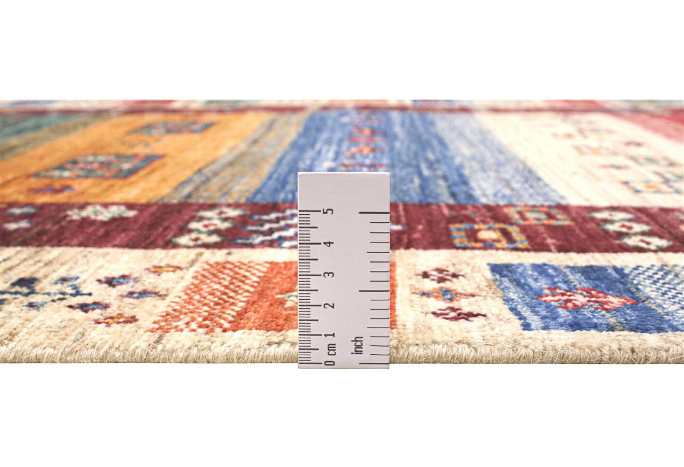 Esta alfombra de Arijana Shaal fue anudada a mano en Pakistán con la mejor artesanía. Promete una calidad muy alta y por lo tanto ofrece un placer duradero. El patrón de las rayas es variado y excitante. Se inspiró en el conocido diseño Moharamati. Si las alfombras monocromáticas son demasiado aburridas para ti, seguro que te encantará esta Arijana Shaal.