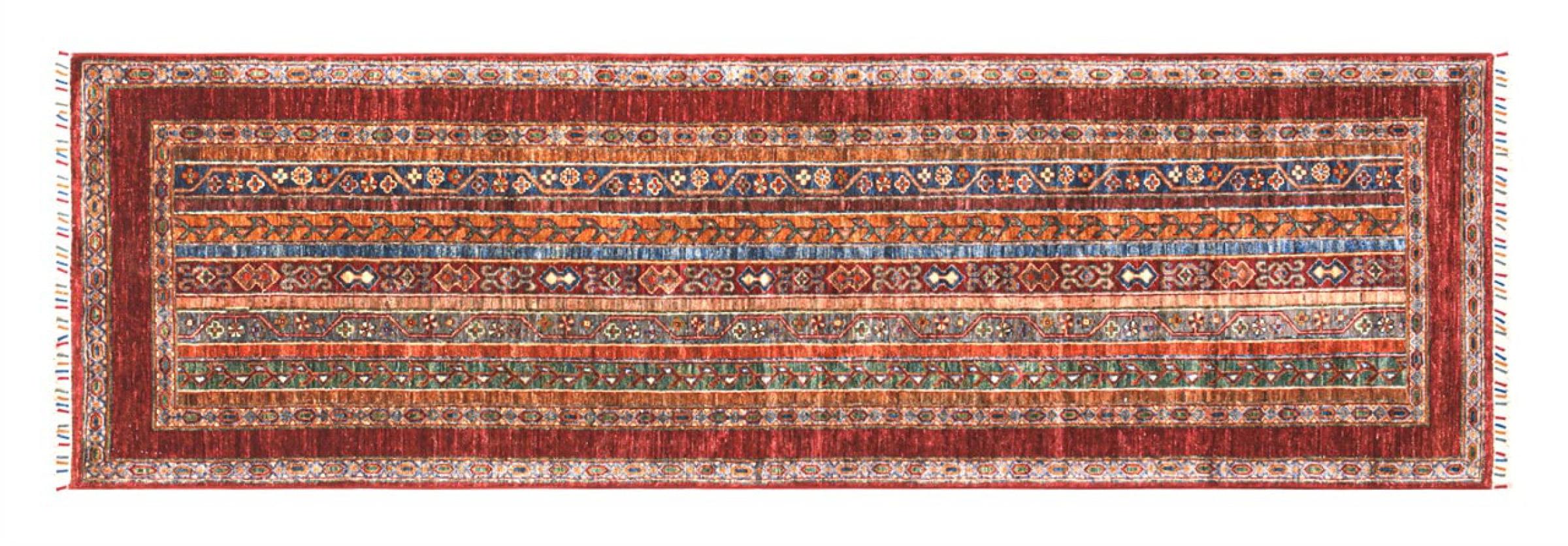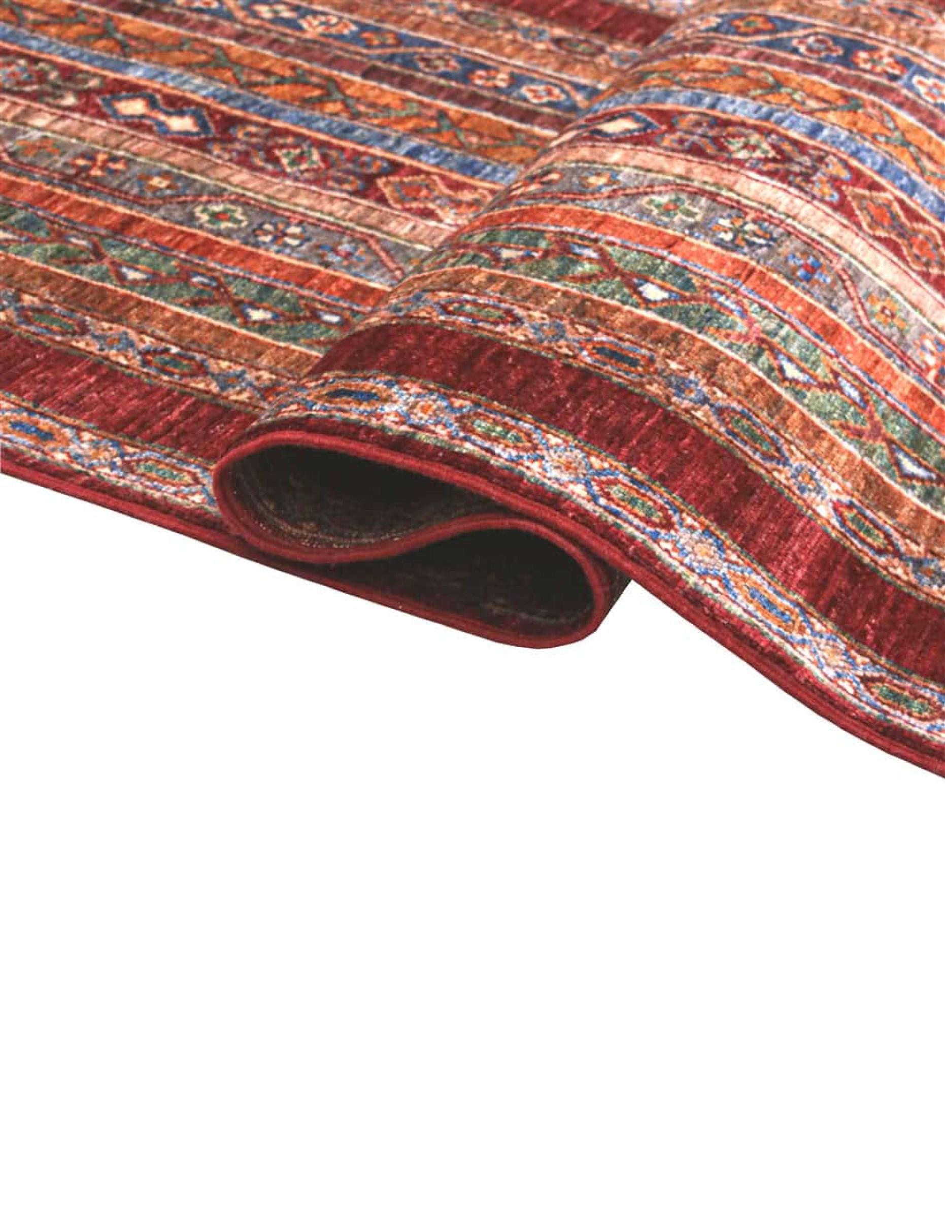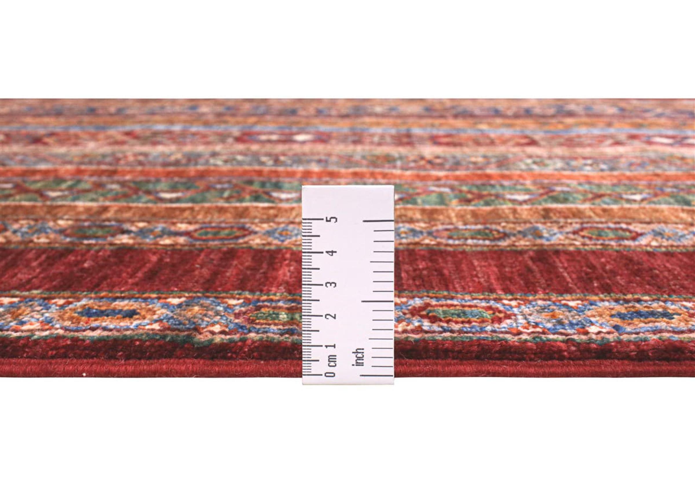 Esta alfombra de Arijana Shaal fue anudada a mano en Pakistán con la mejor artesanía. Promete una calidad muy alta y por lo tanto ofrece un placer duradero. El patrón de las rayas es variado y excitante. Se inspiró en el conocido diseño Moharamati. Si las alfombras monocromáticas son demasiado aburridas para ti, seguro que te encantará esta Arijana Shaal.