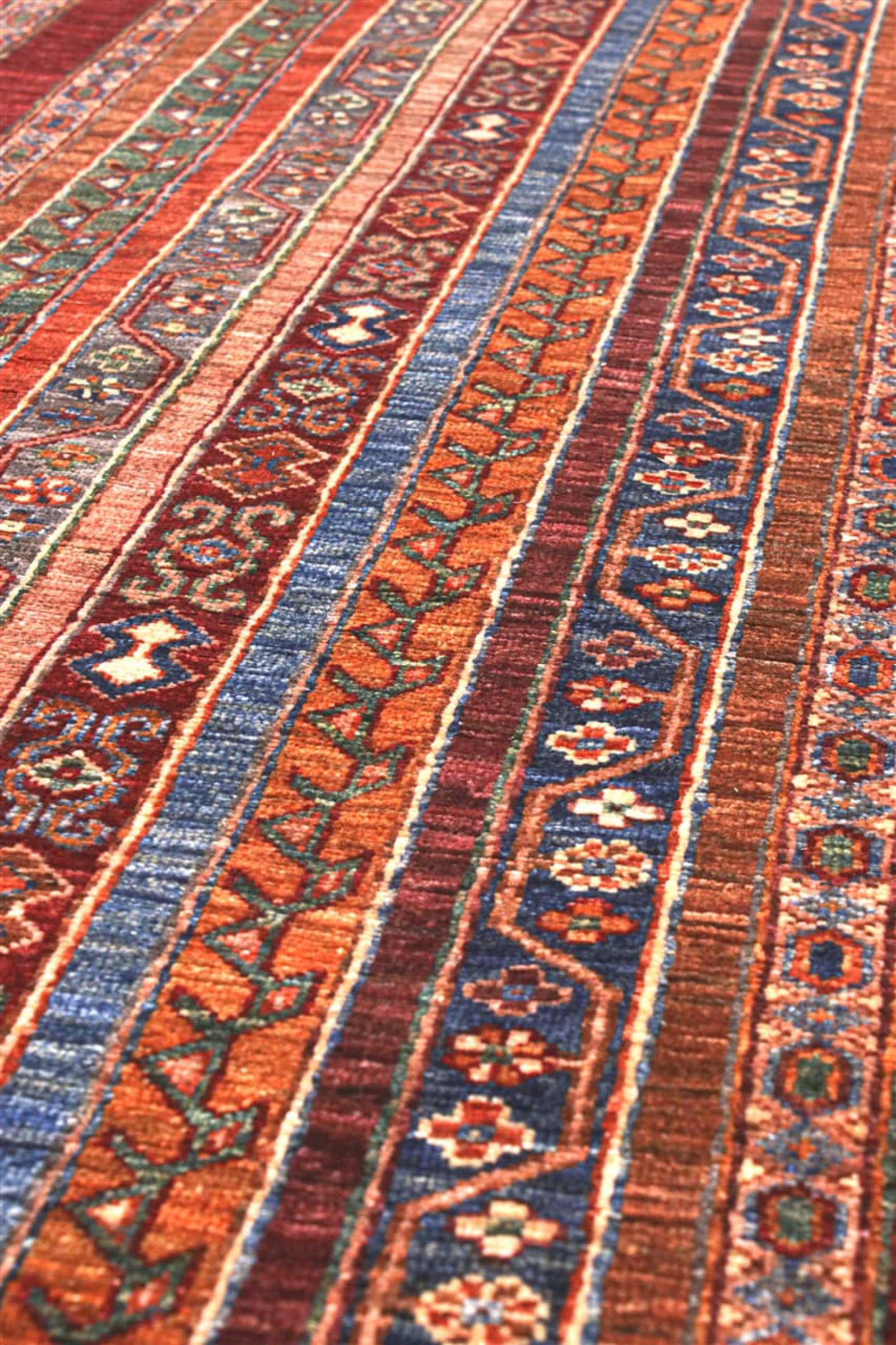 Esta alfombra de Arijana Shaal fue anudada a mano en Pakistán con la mejor artesanía. Promete una calidad muy alta y por lo tanto ofrece un placer duradero. El patrón de las rayas es variado y excitante. Se inspiró en el conocido diseño Moharamati. Si las alfombras monocromáticas son demasiado aburridas para ti, seguro que te encantará esta Arijana Shaal.
