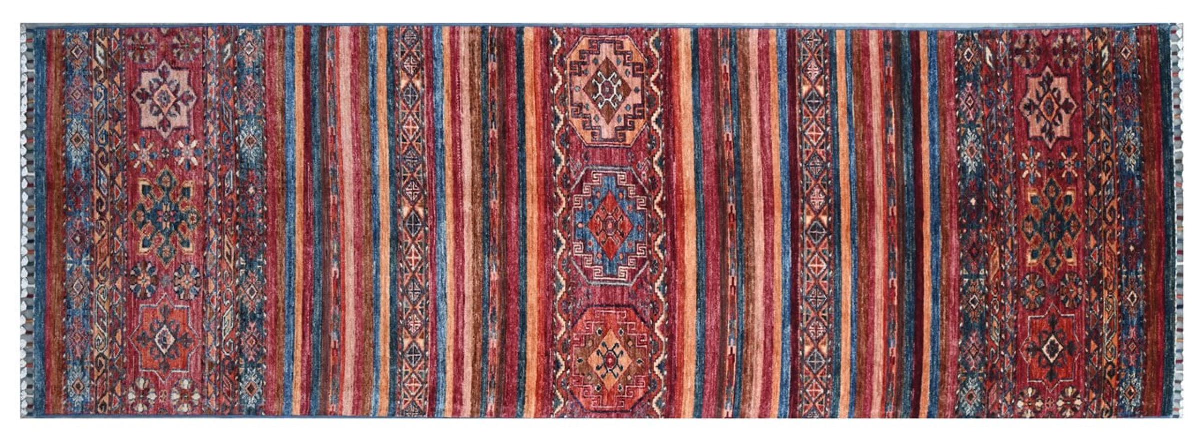 Alfombra número: 315289008705020 Tamaño: 291x81 cm Espesor: alrededor de 6 mm Nudos: 128 000 - 160 000 / m² Elaboración: Anudado a mano Crespón: Lana hilada a mano Urdimbre: Algodón Origen: Pakistán Edad: Nuevo Peso: alrededor de 8 kg Cantidad en stock: Única - Solo 1 en stock