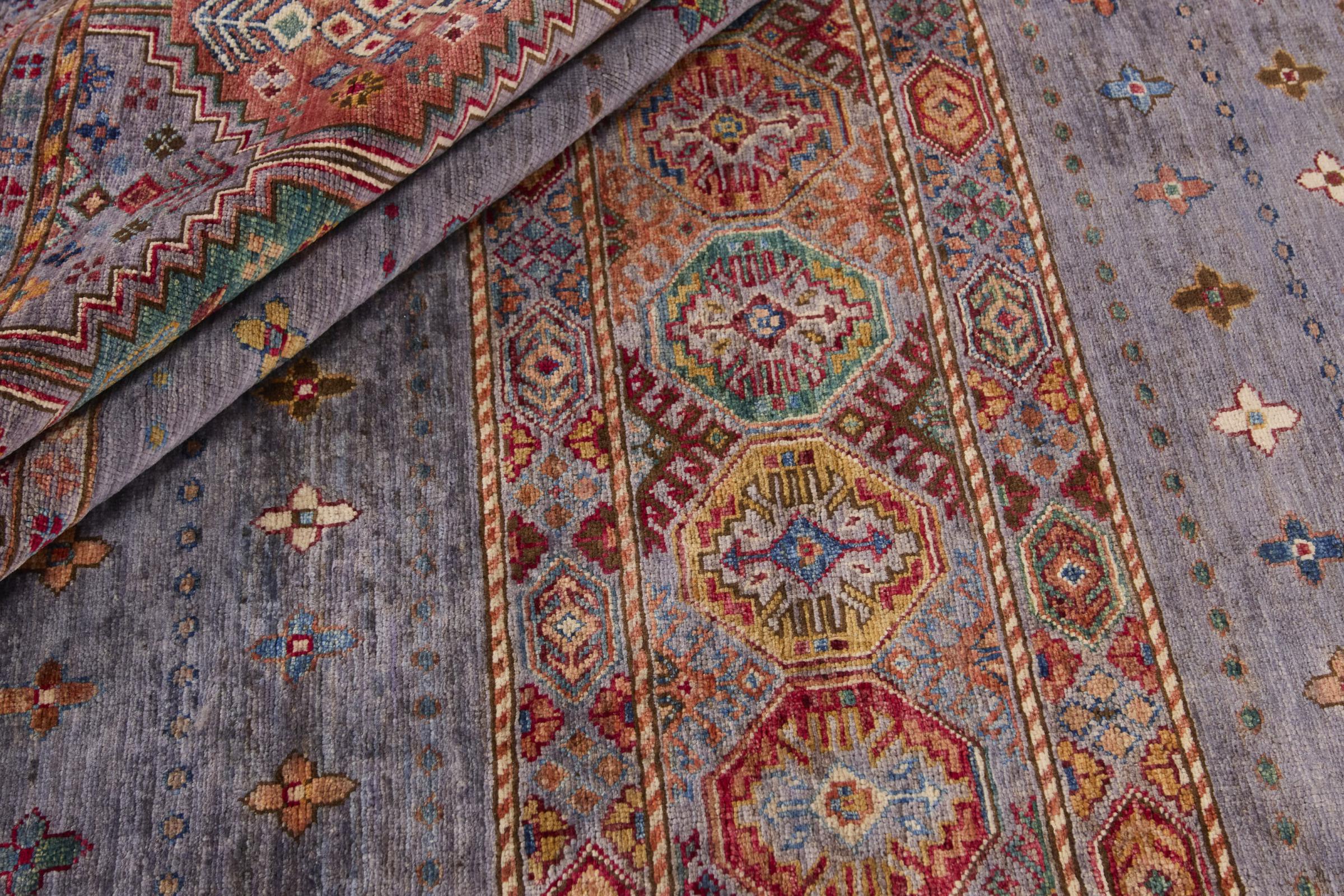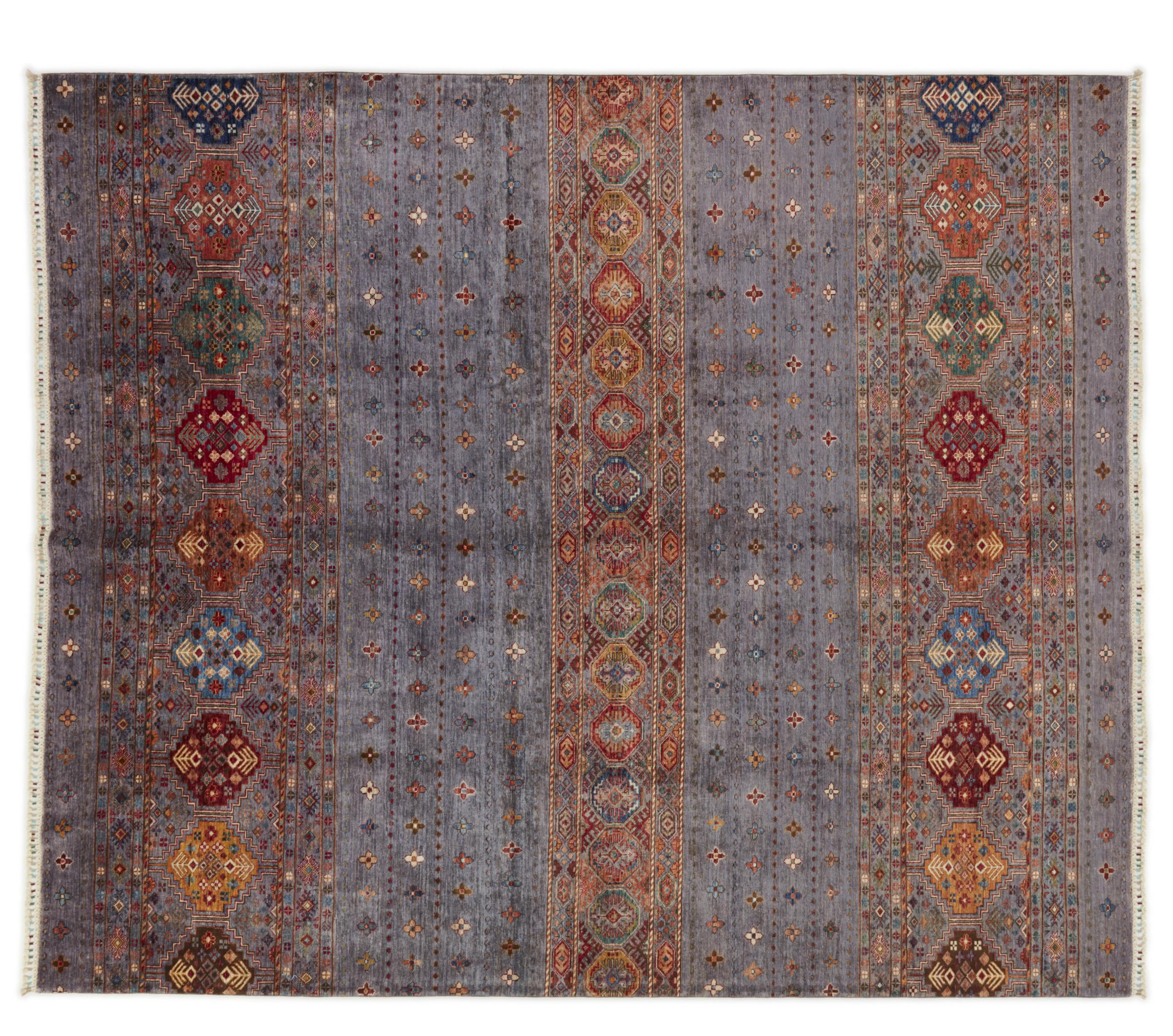 Esta alfombra de Arijana Shaal fue anudada a mano en Pakistán con la mejor artesanía. Promete una calidad muy alta y por lo tanto ofrece un placer duradero. El patrón de las rayas es variado y excitante. Se inspiró en el conocido diseño Moharamati. Si las alfombras monocromáticas son demasiado aburridas para ti, seguro que te encantará esta Arijana Shaal.