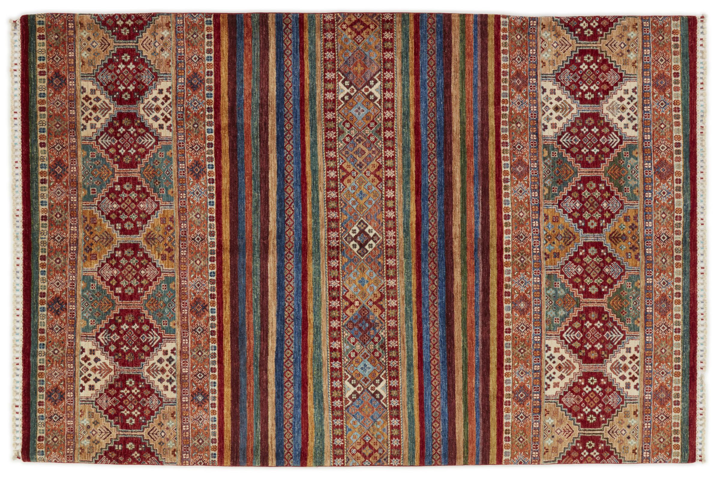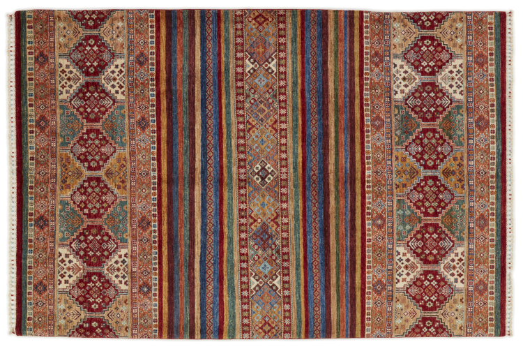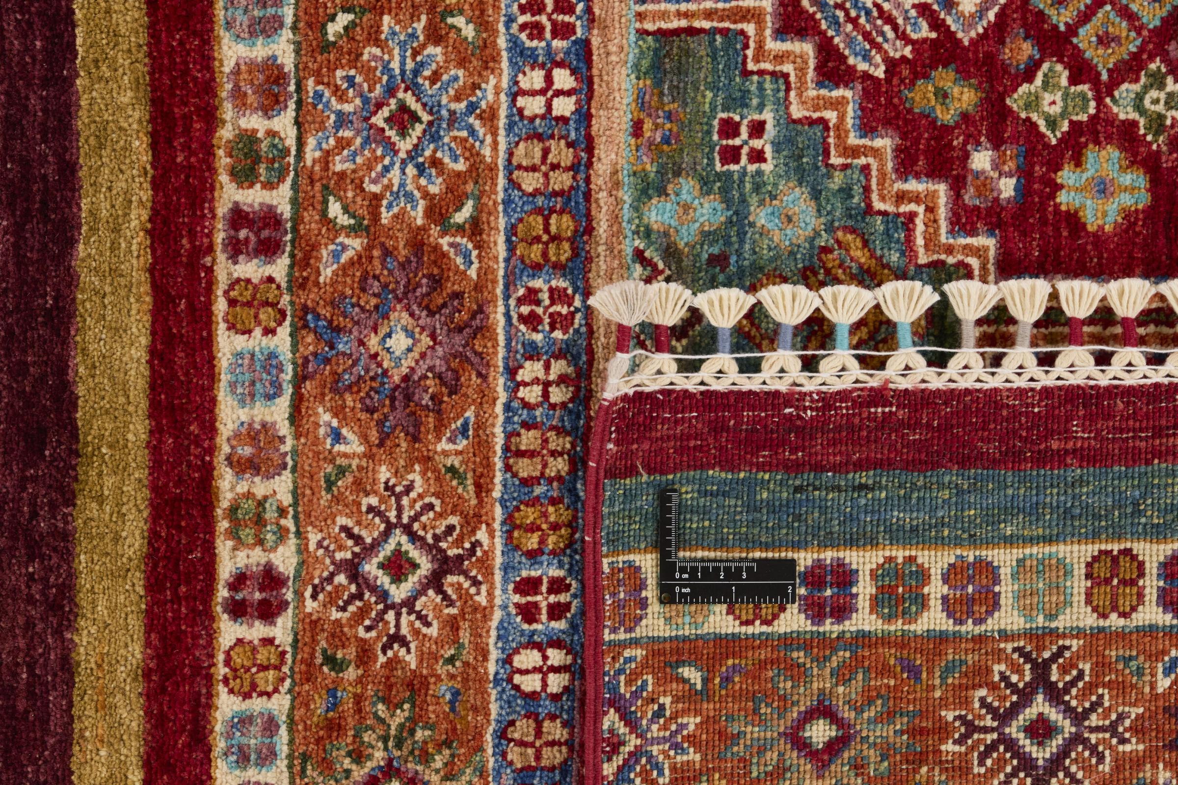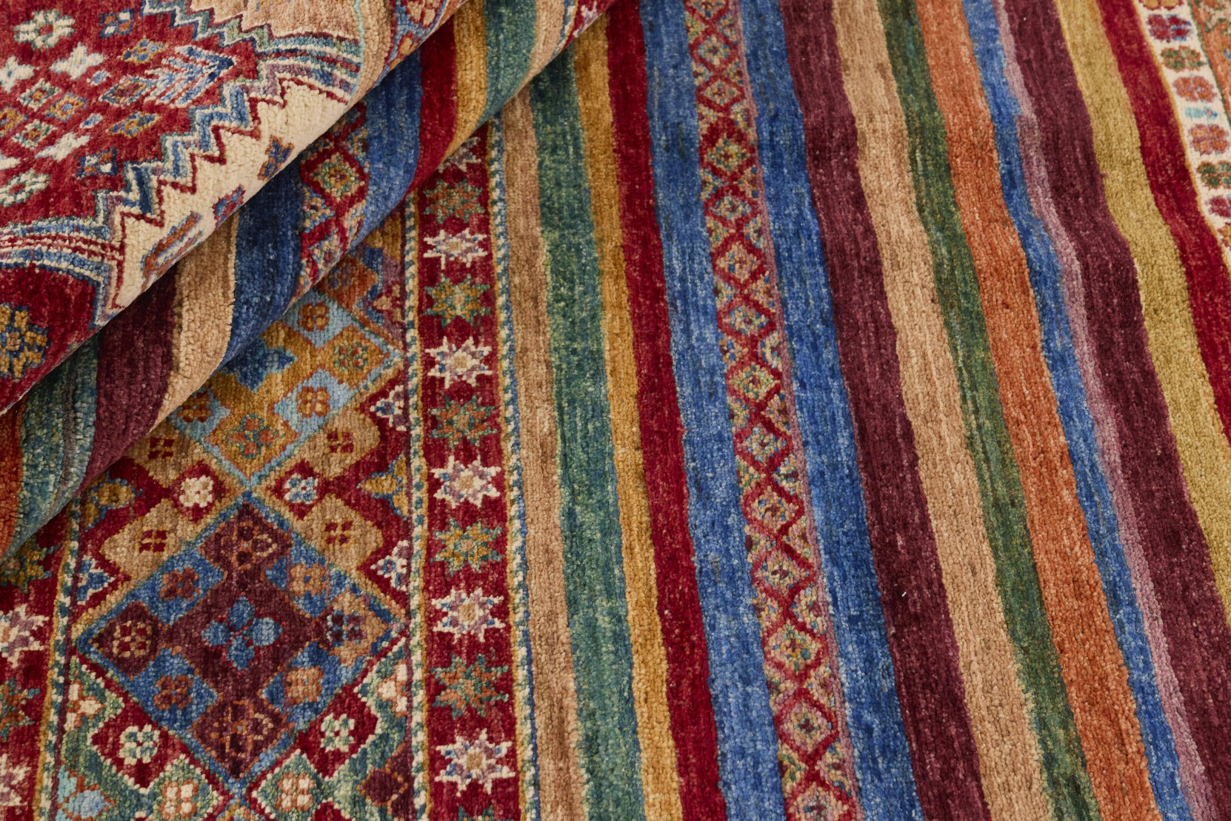 Esta alfombra de Arijana Shaal fue anudada a mano en Pakistán con la mejor artesanía. Promete una calidad muy alta y por lo tanto ofrece un placer duradero. El patrón de las rayas es variado y excitante. Se inspiró en el conocido diseño Moharamati. Si las alfombras monocromáticas son demasiado aburridas para ti, seguro que te encantará esta Arijana Shaal.