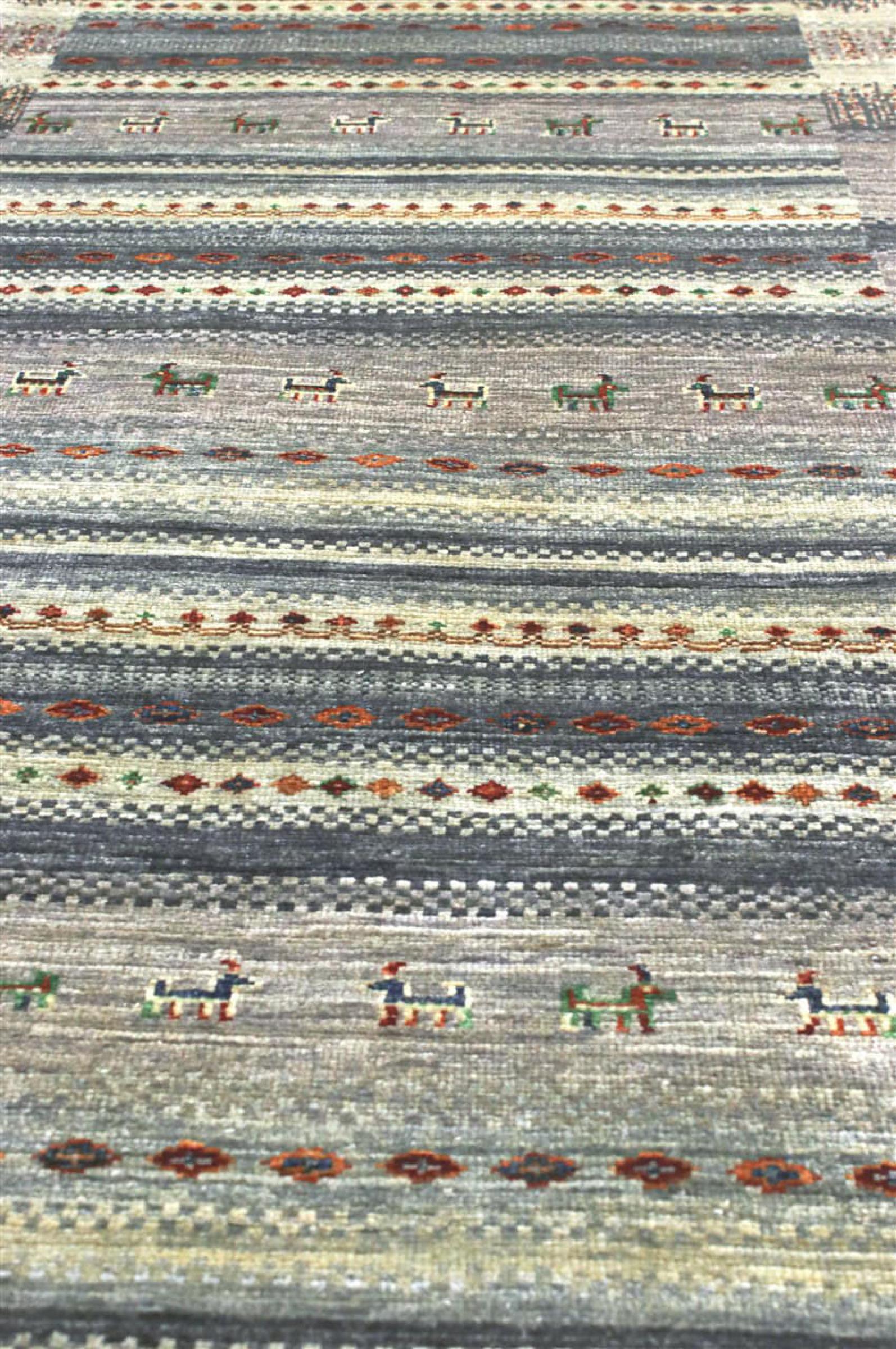 Esta alfombra de Arijana Shaal fue anudada a mano en Pakistán con la mejor artesanía. Promete una calidad muy alta y por lo tanto ofrece un placer duradero. El patrón de las rayas es variado y excitante. Se inspiró en el conocido diseño Moharamati. Si las alfombras monocromáticas son demasiado aburridas para ti, seguro que te encantará esta Arijana Shaal.