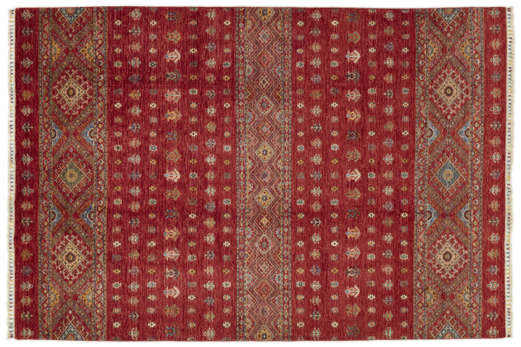 Esta alfombra de Arijana Shaal fue anudada a mano en Pakistán con la mejor artesanía. Promete una calidad muy alta y por lo tanto ofrece un placer duradero. El patrón de las rayas es variado y excitante. Se inspiró en el conocido diseño Moharamati. Si las alfombras monocromáticas son demasiado aburridas para ti, seguro que te encantará esta Arijana Shaal.