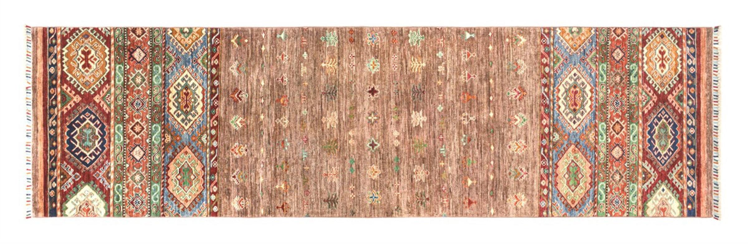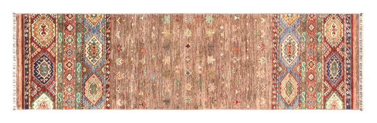 Alfombra número: 315232009061214 Tamaño: 307x79 cm Espesor: alrededor de 6 mm Nudos: 128 000 - 160 000 / m² Elaboración: Anudado a mano Crespón: Lana hilada a mano Urdimbre: Algodón Origen: Pakistán Edad: Nuevo Peso: alrededor de 8 kg Cantidad en stock: Única - Solo 1 en stock