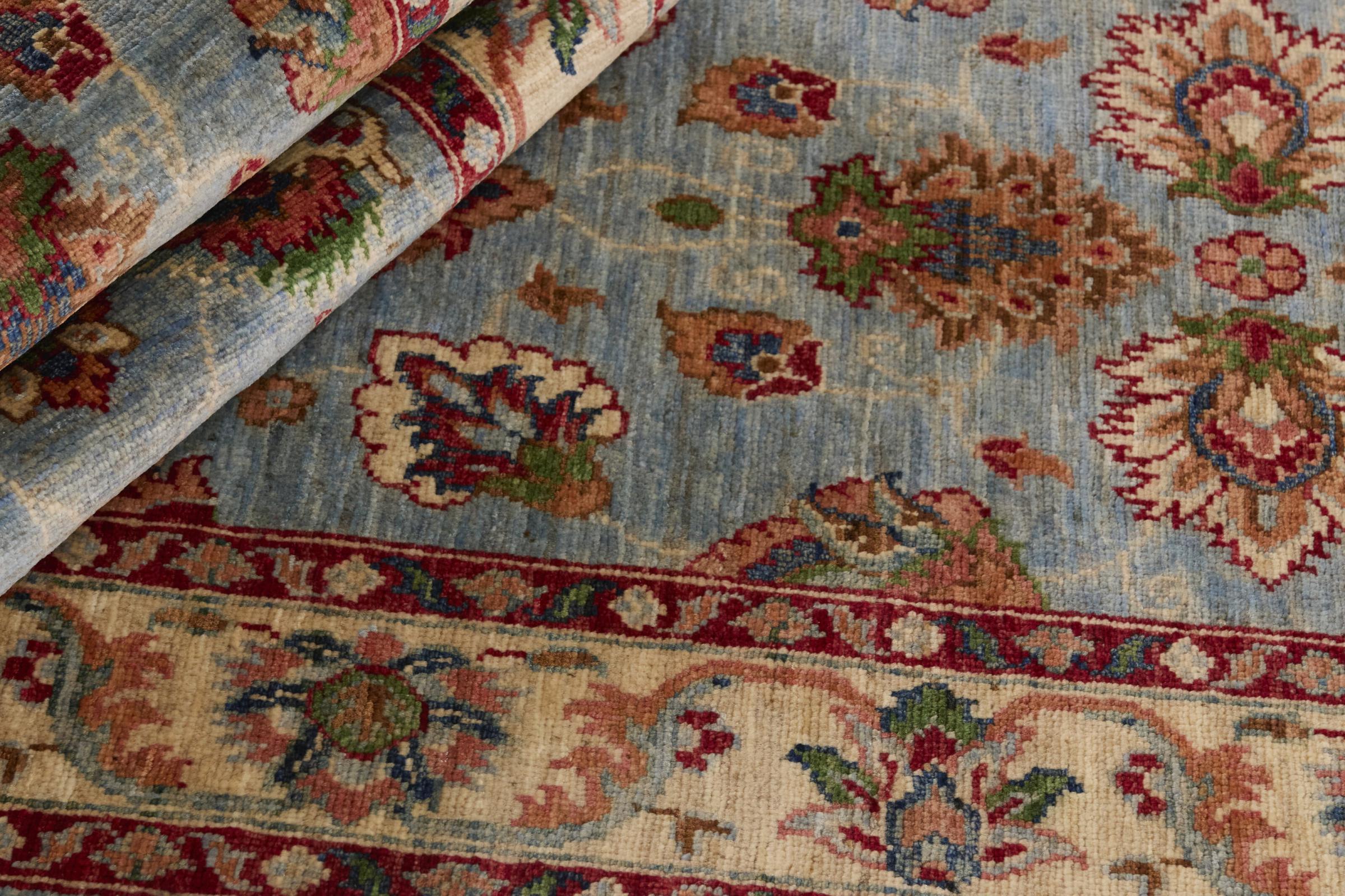 Esta alfombra está hecha de lana de oveja hilada a mano de la más alta calidad. Especialmente en Irán (antigua Persia), la lana de Afganistán y Pakistán sigue siendo hilada a mano antes de que comience el anudado de la alfombra. La lana ha demostrado ser un material natural y extremadamente resistente a lo largo de los siglos. Entre otras cosas, tiene propiedades repelentes de la suciedad y aislantes del calor. Al mismo tiempo, la lana es incomparablemente suave y tiene un brillo natural.