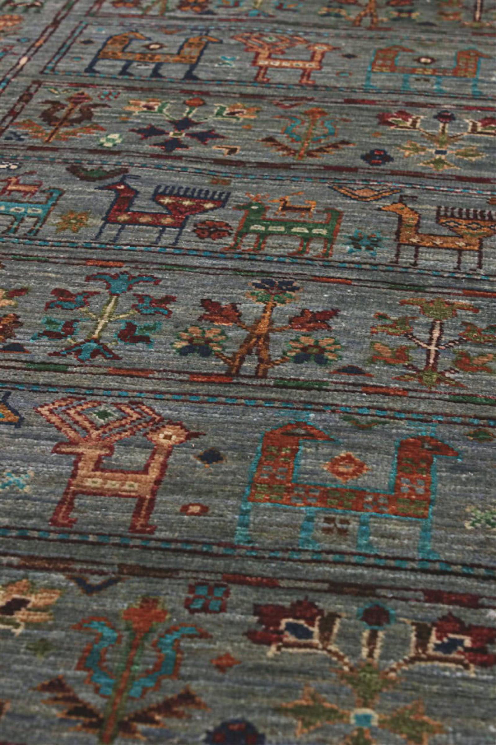 Esta alfombra está hecha de lana de oveja hilada a mano de la más alta calidad. Especialmente en Irán (antigua Persia), la lana de Afganistán y Pakistán sigue siendo hilada a mano antes de que comience el anudado de la alfombra. La lana ha demostrado ser un material natural y extremadamente resistente a lo largo de los siglos. Entre otras cosas, tiene propiedades repelentes de la suciedad y aislantes del calor. Al mismo tiempo, la lana es incomparablemente suave y tiene un brillo natural.