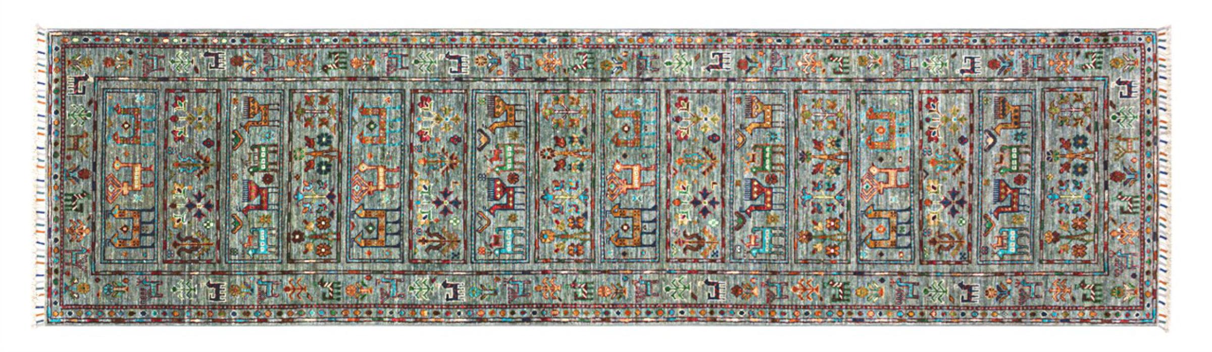 Alfombra número: 315260004280611 Tamaño: 308x87 cm Espesor: alrededor de 6 mm Nudos: 128 000 - 160 000 / m² Elaboración: Anudado a mano Crespón: Lana hilada a mano Urdimbre: Algodón Origen: Pakistán Edad: Nuevo Peso: alrededor de 9 kg Cantidad en stock: Única - Solo 1 en stock