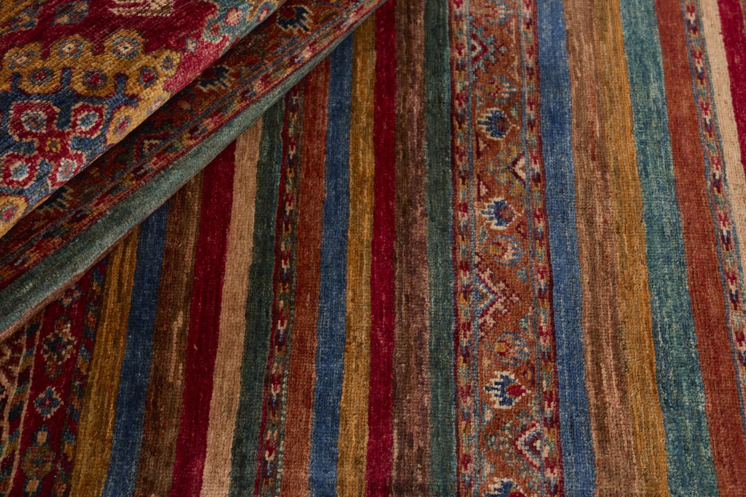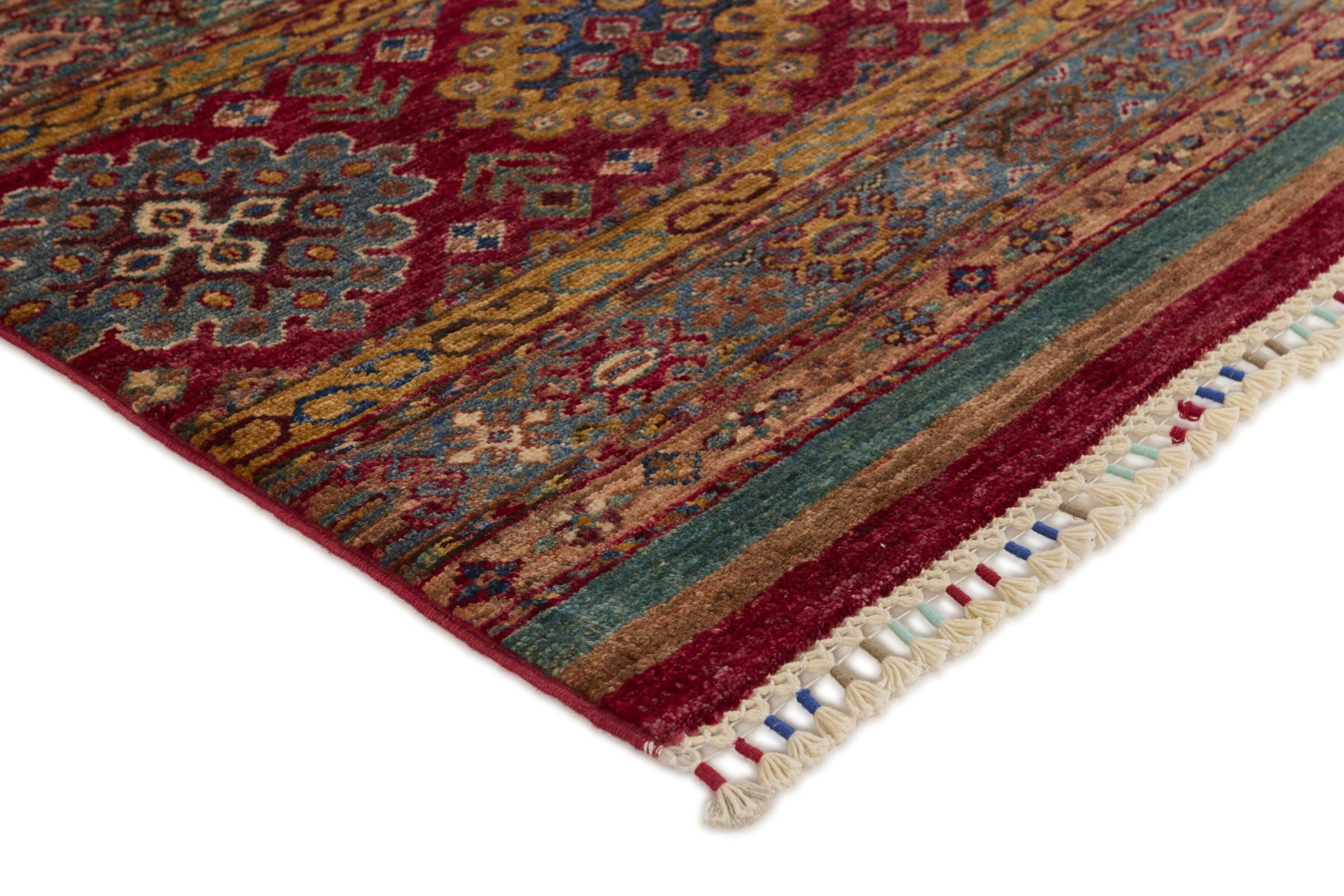 Esta alfombra de Arijana Shaal fue anudada a mano en Pakistán con la mejor artesanía. Promete una calidad muy alta y por lo tanto ofrece un placer duradero. El patrón de las rayas es variado y excitante. Se inspiró en el conocido diseño Moharamati. Si las alfombras monocromáticas son demasiado aburridas para ti, seguro que te encantará esta Arijana Shaal.