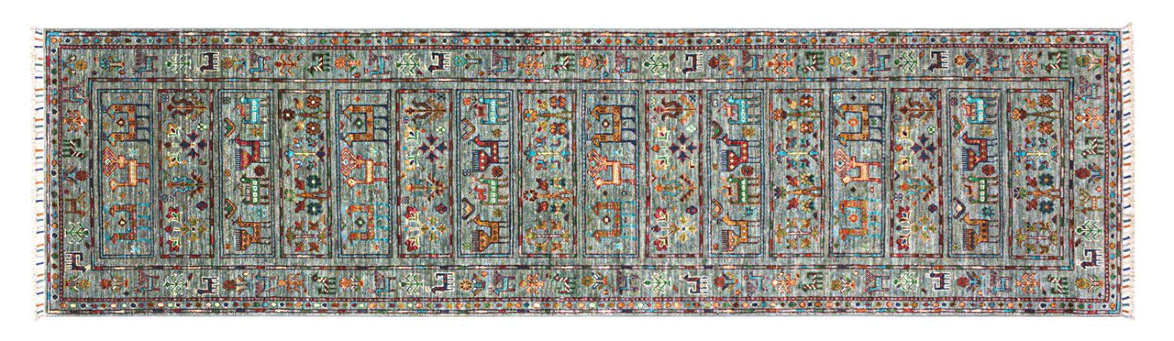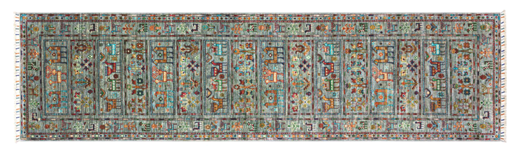 Alfombra número: 315259004112123 Tamaño: 309x86 cm Espesor: alrededor de 6 mm Nudos: 128 000 - 160 000 / m² Elaboración: Anudado a mano Crespón: Lana hilada a mano Urdimbre: Algodón Origen: Pakistán Edad: Nuevo Peso: alrededor de 9 kg Cantidad en stock: Única - Solo 1 en stock