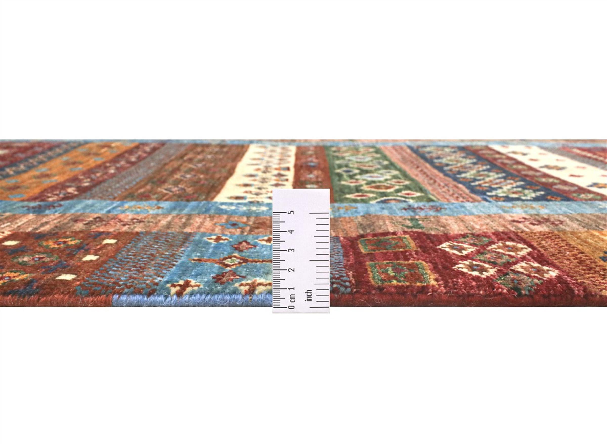 Esta alfombra de Arijana Shaal fue anudada a mano en Pakistán con la mejor artesanía. Promete una calidad muy alta y por lo tanto ofrece un placer duradero. El patrón de las rayas es variado y excitante. Se inspiró en el conocido diseño Moharamati. Si las alfombras monocromáticas son demasiado aburridas para ti, seguro que te encantará esta Arijana Shaal.
