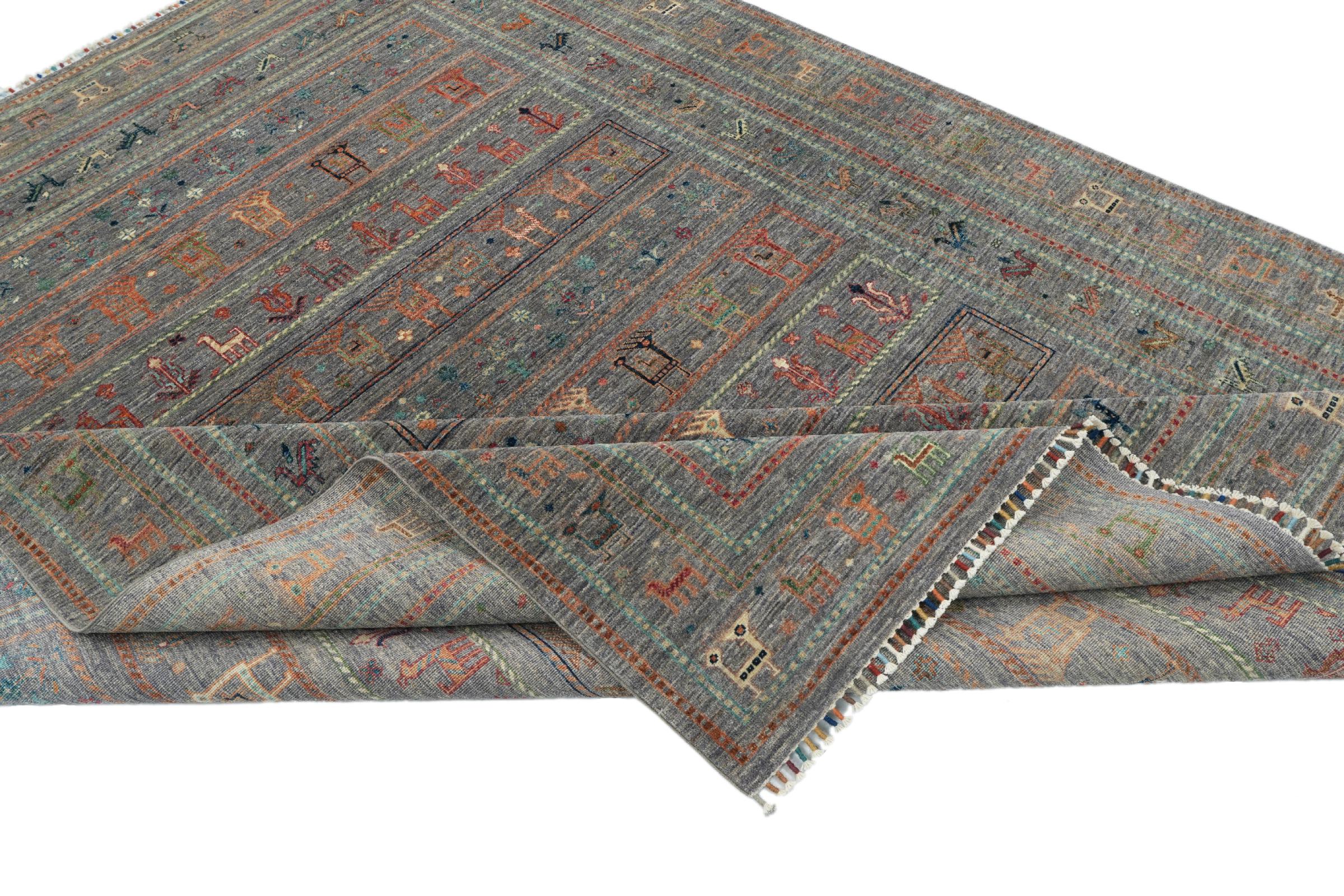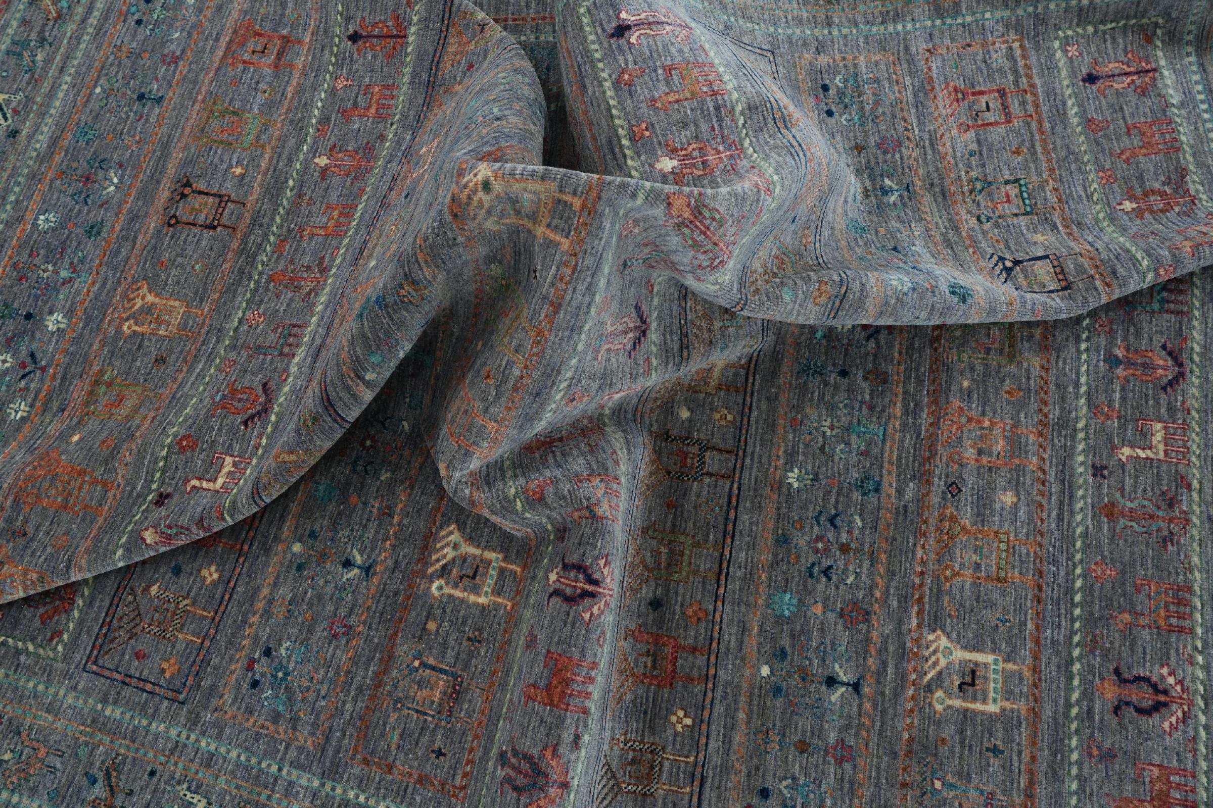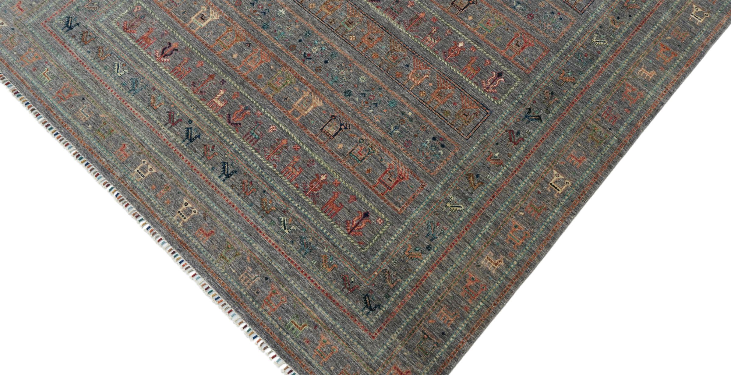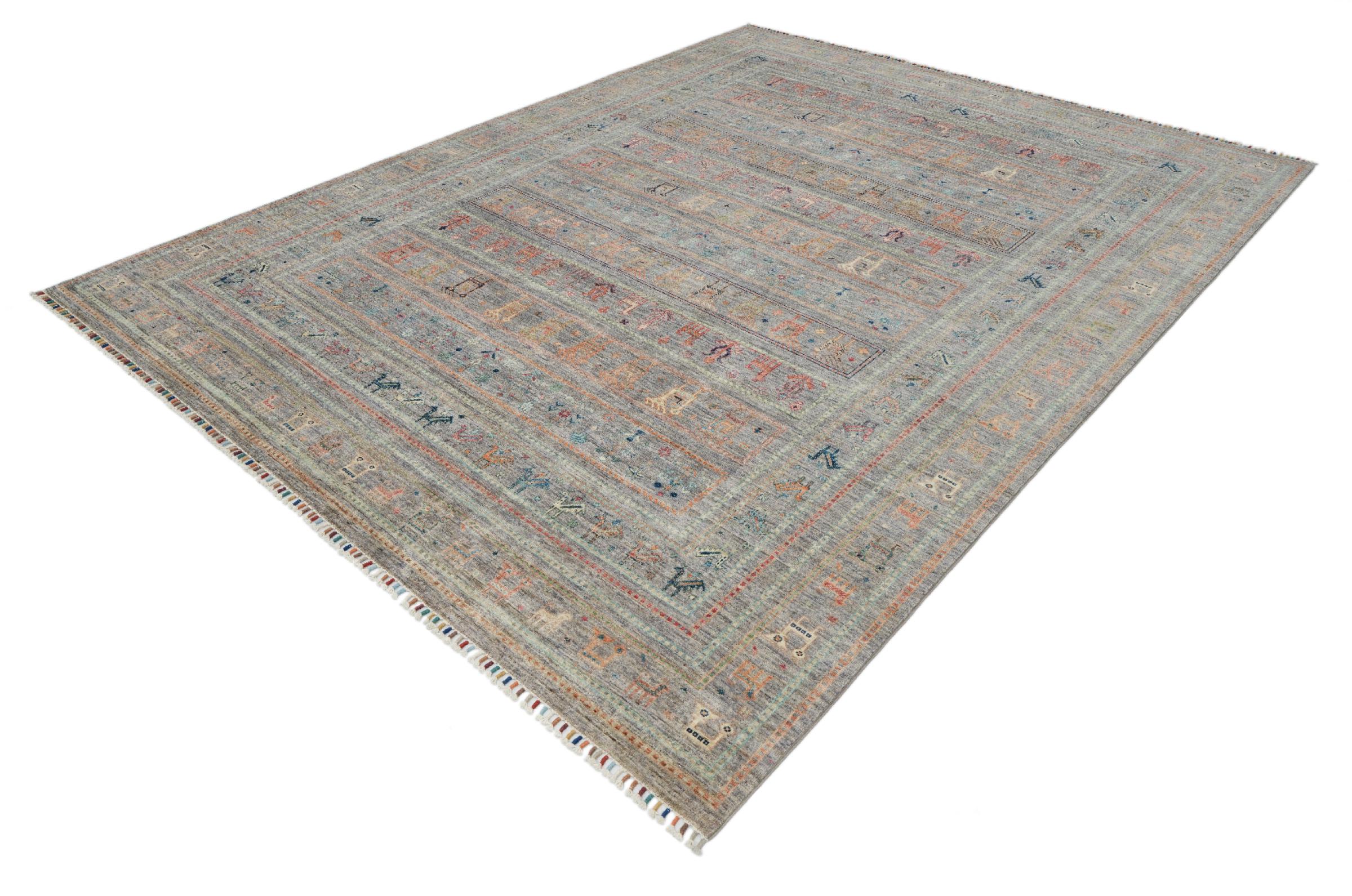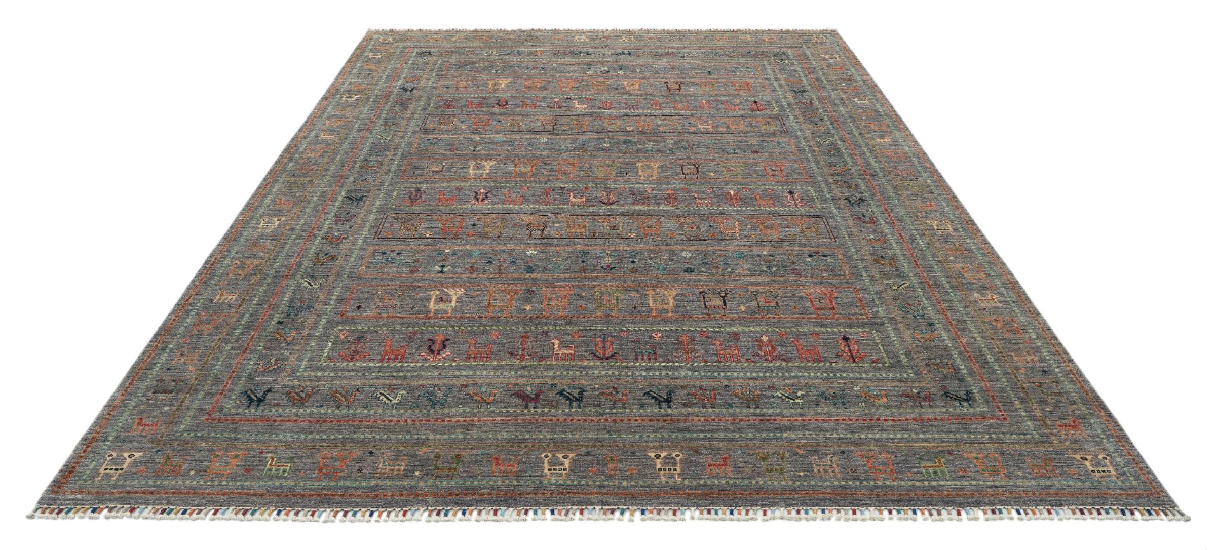 Esta alfombra de Arijana Shaal fue anudada a mano en Pakistán con la mejor artesanía. Promete una calidad muy alta y por lo tanto ofrece un placer duradero. El patrón de las rayas es variado y excitante. Se inspiró en el conocido diseño Moharamati. Si las alfombras monocromáticas son demasiado aburridas para ti, seguro que te encantará esta Arijana Shaal.
