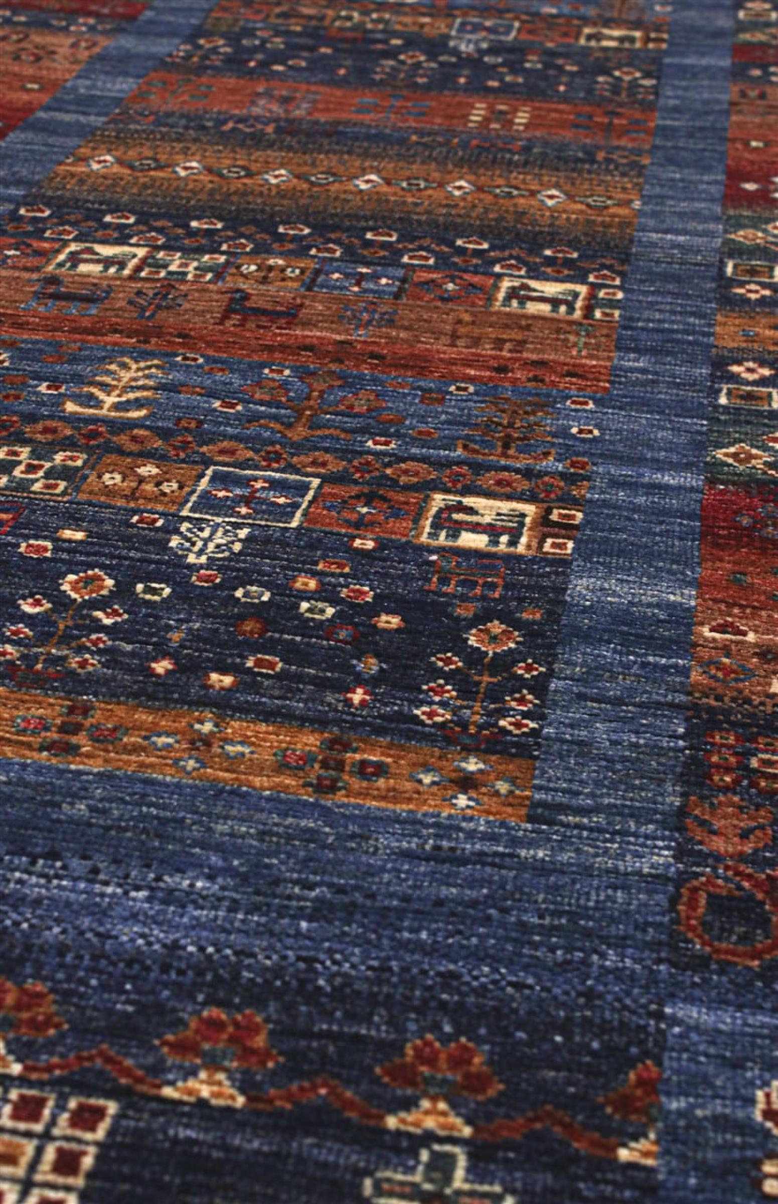 Esta alfombra está hecha de lana de oveja hilada a mano de la más alta calidad. Especialmente en Irán (antigua Persia), la lana de Afganistán y Pakistán sigue siendo hilada a mano antes de que comience el anudado de la alfombra. La lana ha demostrado ser un material natural y extremadamente resistente a lo largo de los siglos. Entre otras cosas, tiene propiedades repelentes de la suciedad y aislantes del calor. Al mismo tiempo, la lana es incomparablemente suave y tiene un brillo natural.