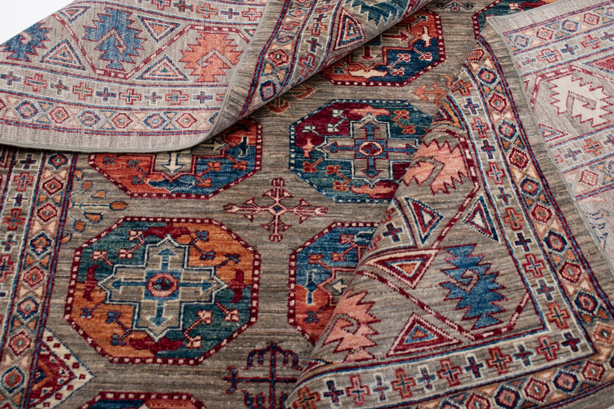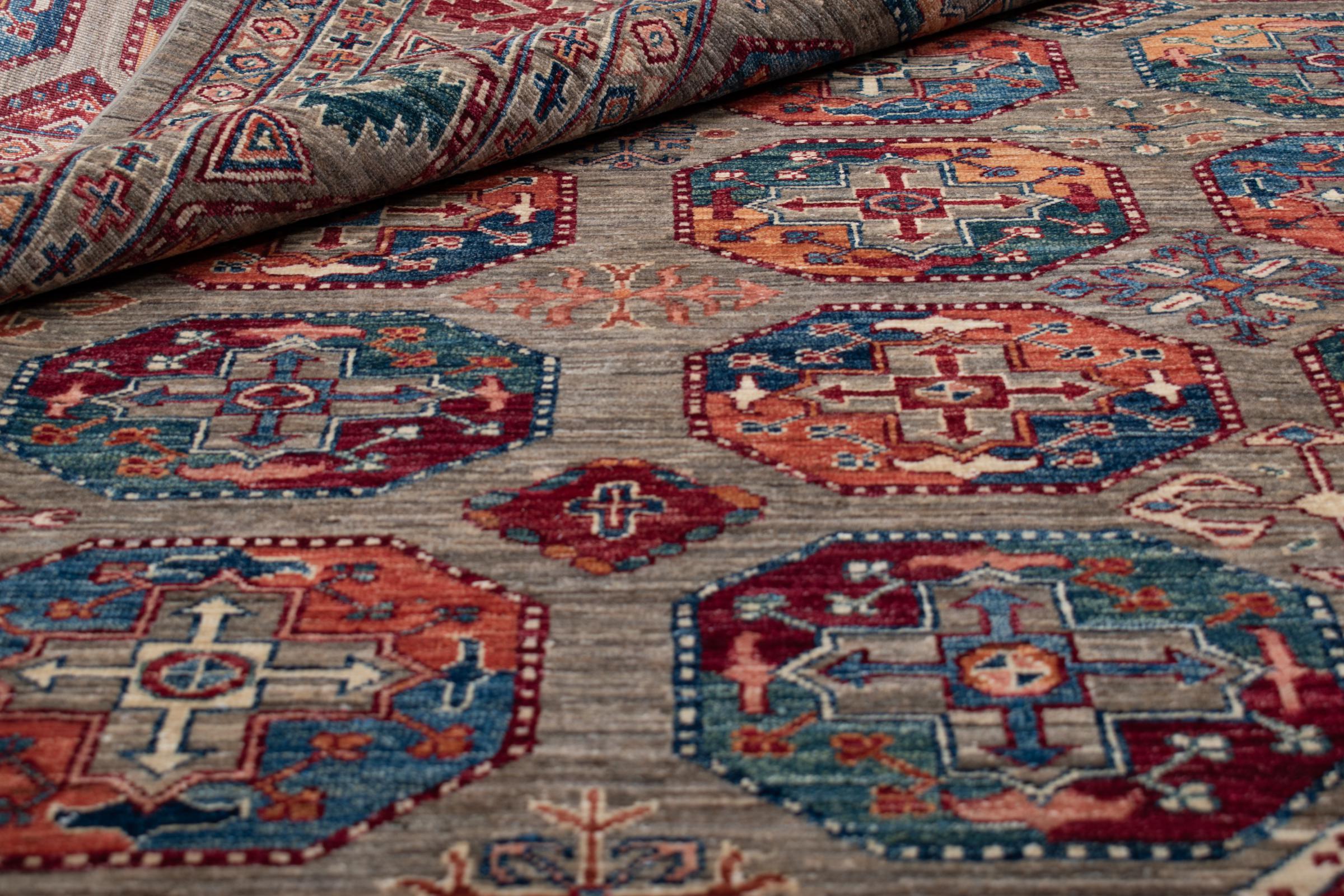 Esta alfombra está hecha de lana de oveja hilada a mano de la más alta calidad. Especialmente en Irán (antigua Persia), la lana de Afganistán y Pakistán sigue siendo hilada a mano antes de que comience el anudado de la alfombra. La lana ha demostrado ser un material natural y extremadamente resistente a lo largo de los siglos. Entre otras cosas, tiene propiedades repelentes de la suciedad y aislantes del calor. Al mismo tiempo, la lana es incomparablemente suave y tiene un brillo natural.