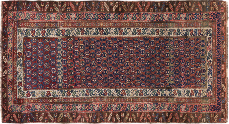 Alfombra número: 29871200649 Tamaño: 235x125 cm Espesor: alrededor de 8 mm Nudos: 200 000 - 250 000 / m² Elaboración: Anudado a mano Crespón: Lana hilada a mano Urdimbre: Lana de oveja Estado / Conservación Perfecta Origen: Azerbaijan / Rusia Edad: Antigua, mayor de 80 años Peso: alrededor de 10 kg Cantidad en stock: Única - Solo 1 en stock