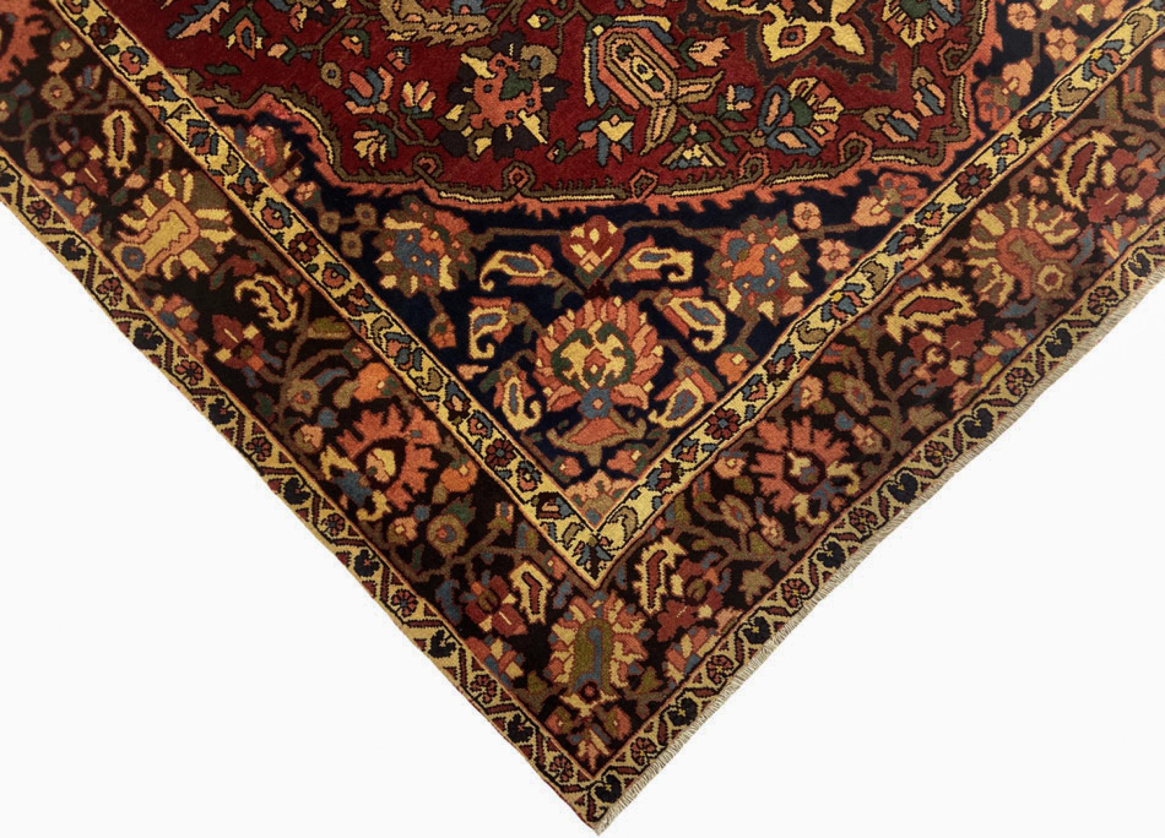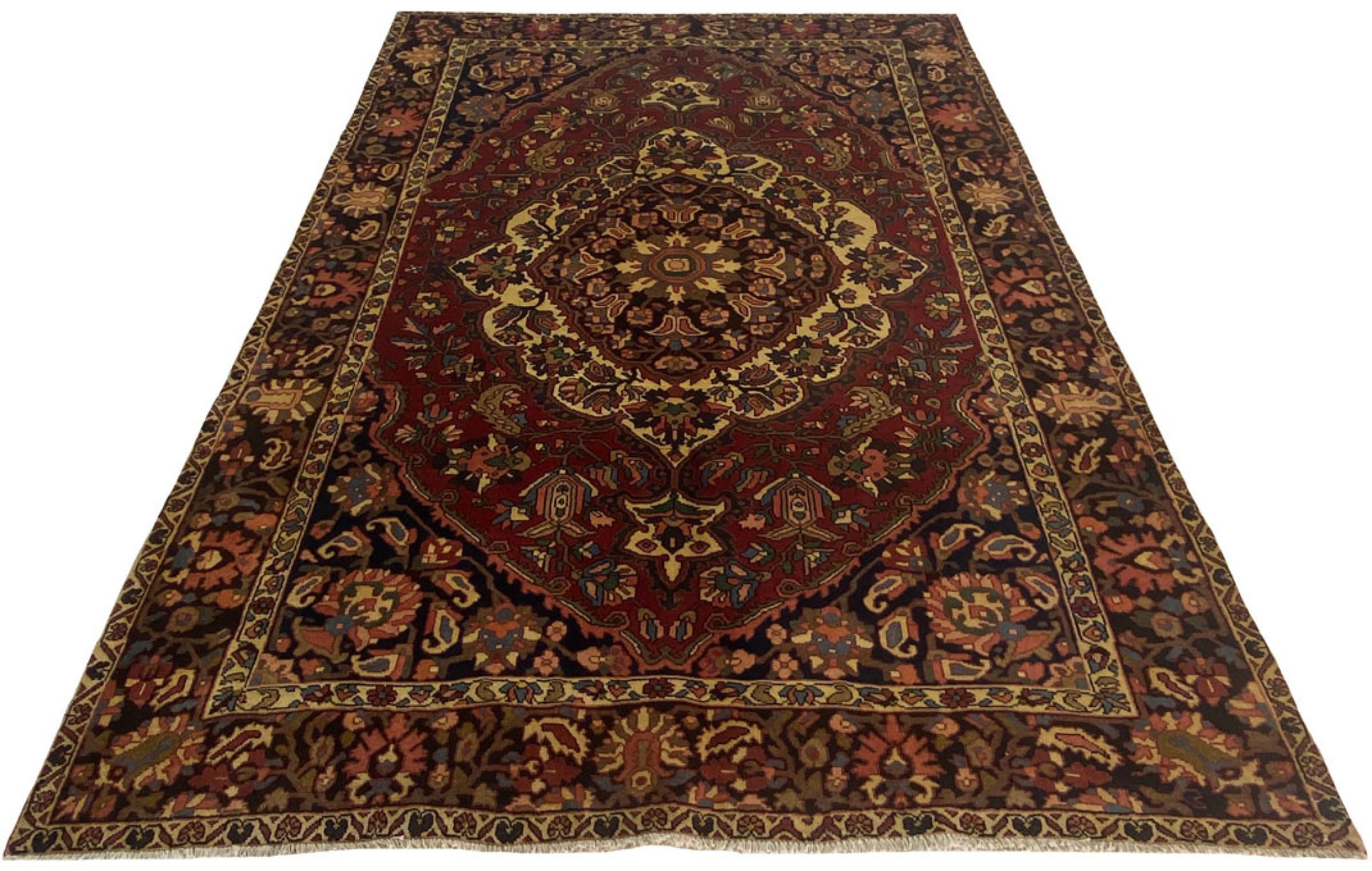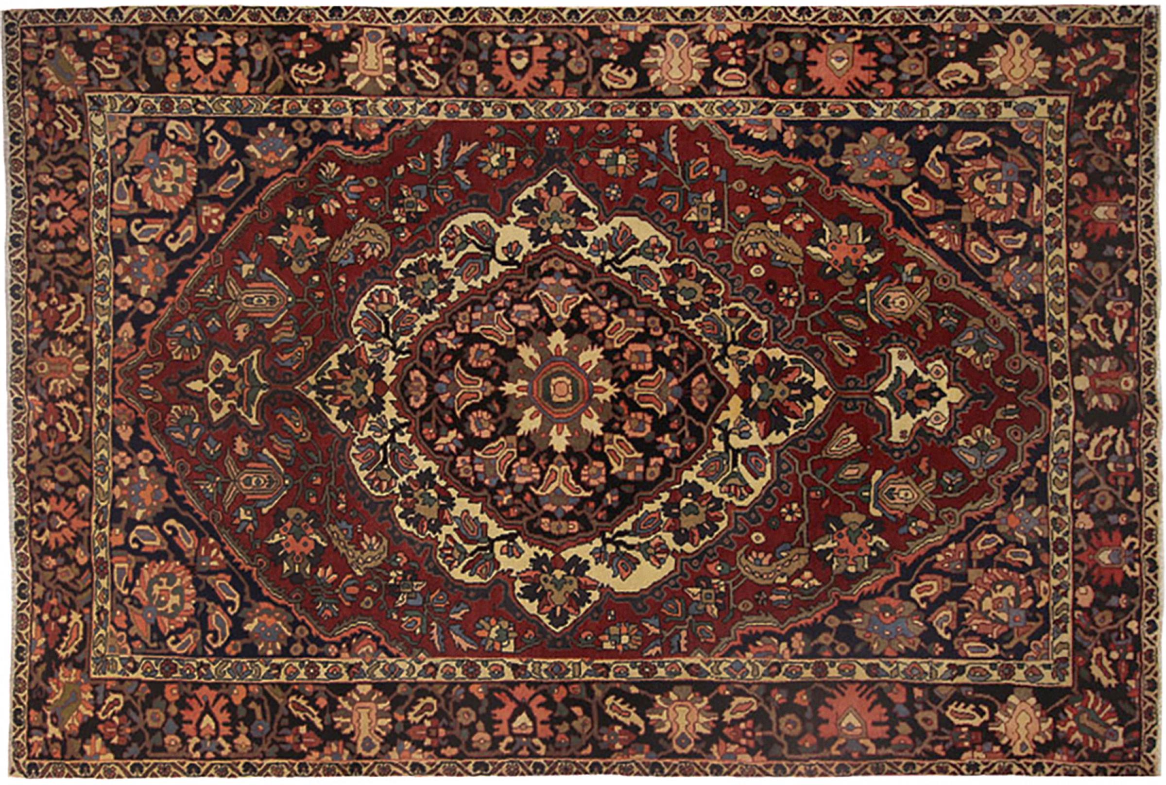 Este Bakhtiar persa fue anudado a mano por los nómadas de la tribu Bakhtiari. Esta alfombra persa juega con los colores de Oriente en los más bellos patrones. El diseño de sus ornamentos se inspira en los jardines persas. A lo largo de los años, el llamado diseño de jardín tradicional ha ganado gran popularidad en el mundo occidental. Su alta densidad de nudos en combinación con el fuerte hilo promete un placer duradero de arte de alfombras persas.