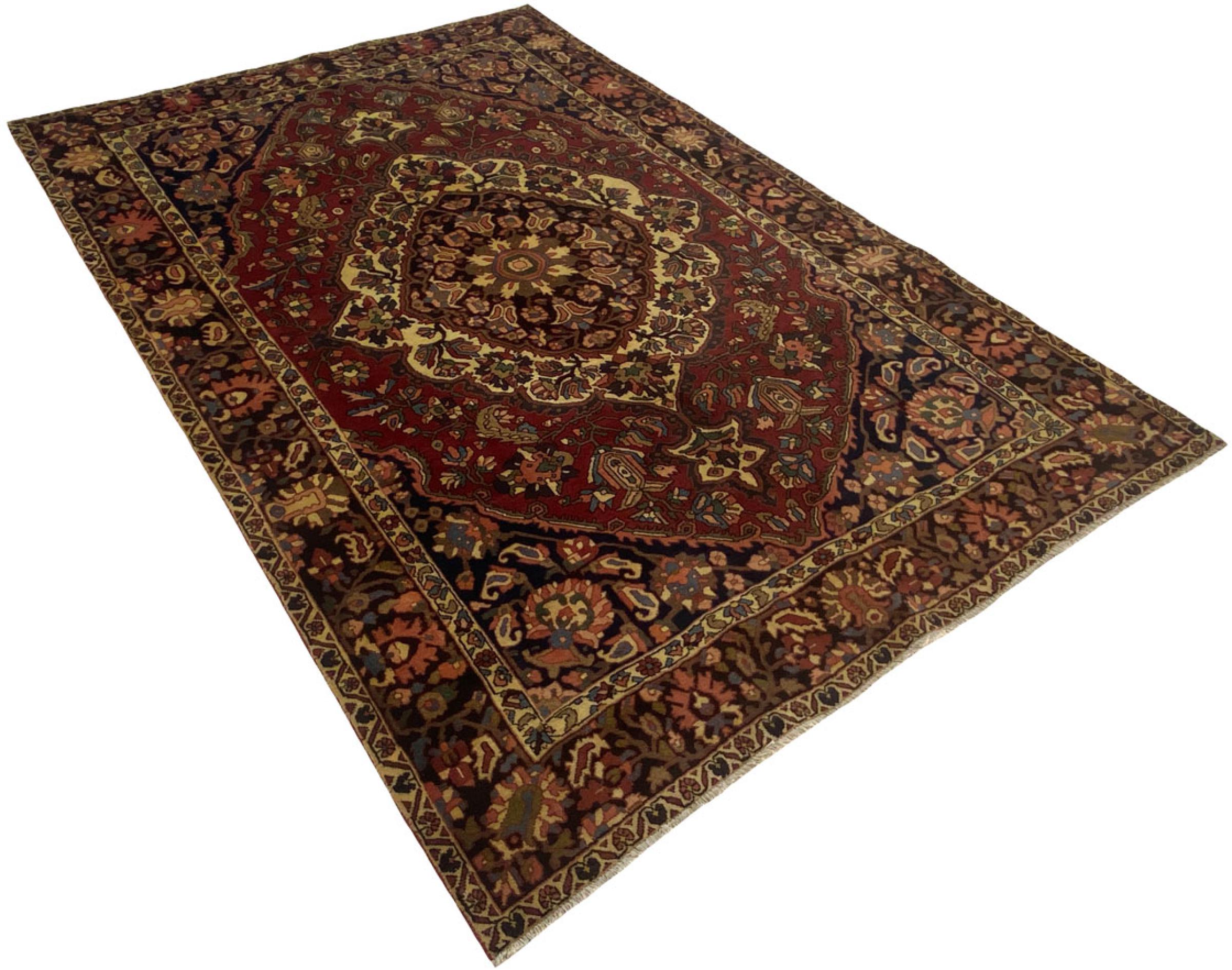 Alfombra número: 318081007069170 Tamaño: 305x204 cm Espesor: alrededor de 12 mm Nudos: 128 000 - 160 000 / m² Elaboración: Anudado a mano Crespón: Lana hilada a mano Urdimbre: Algodón Origen: Persia / Iran Edad: Nuevo Peso: alrededor de 25 kg También conocido como Baktjar Cantidad en stock: Única - Solo 1 en stock