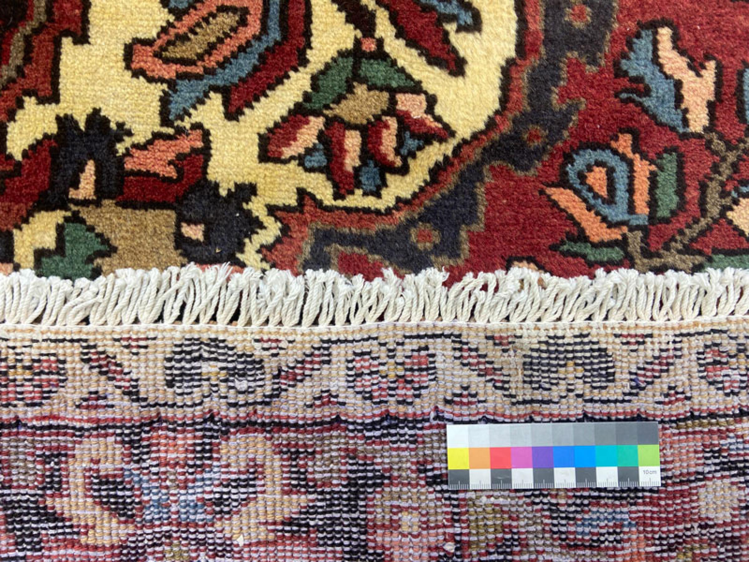 Esta alfombra está hecha de lana de oveja hilada a mano de la más alta calidad. Especialmente en Irán (antigua Persia), la lana de Afganistán y Pakistán sigue siendo hilada a mano antes de que comience el anudado de la alfombra. La lana ha demostrado ser un material natural y extremadamente resistente a lo largo de los siglos. Entre otras cosas, tiene propiedades repelentes de la suciedad y aislantes del calor. Al mismo tiempo, la lana es incomparablemente suave y tiene un brillo natural.