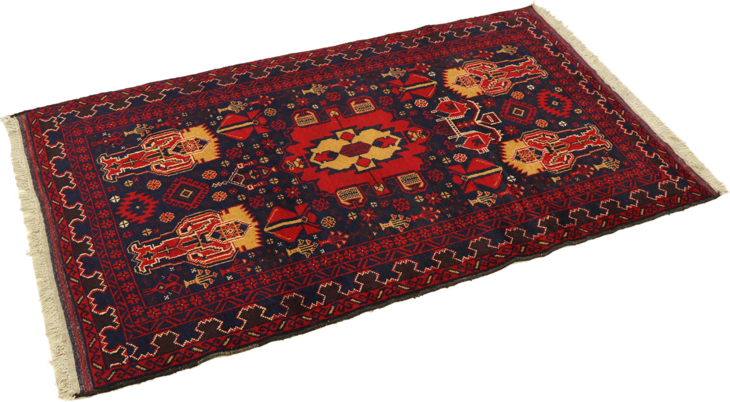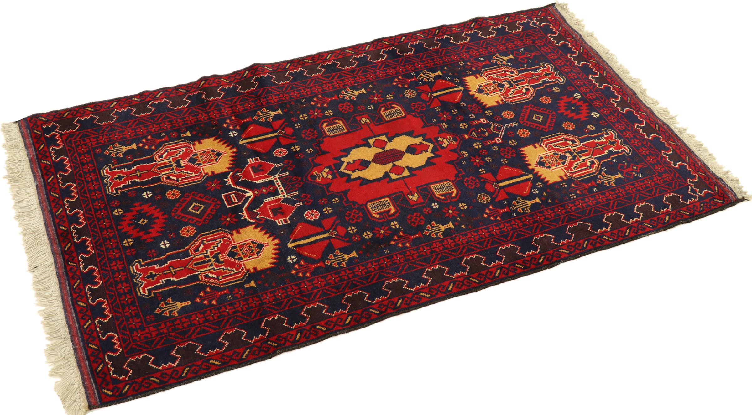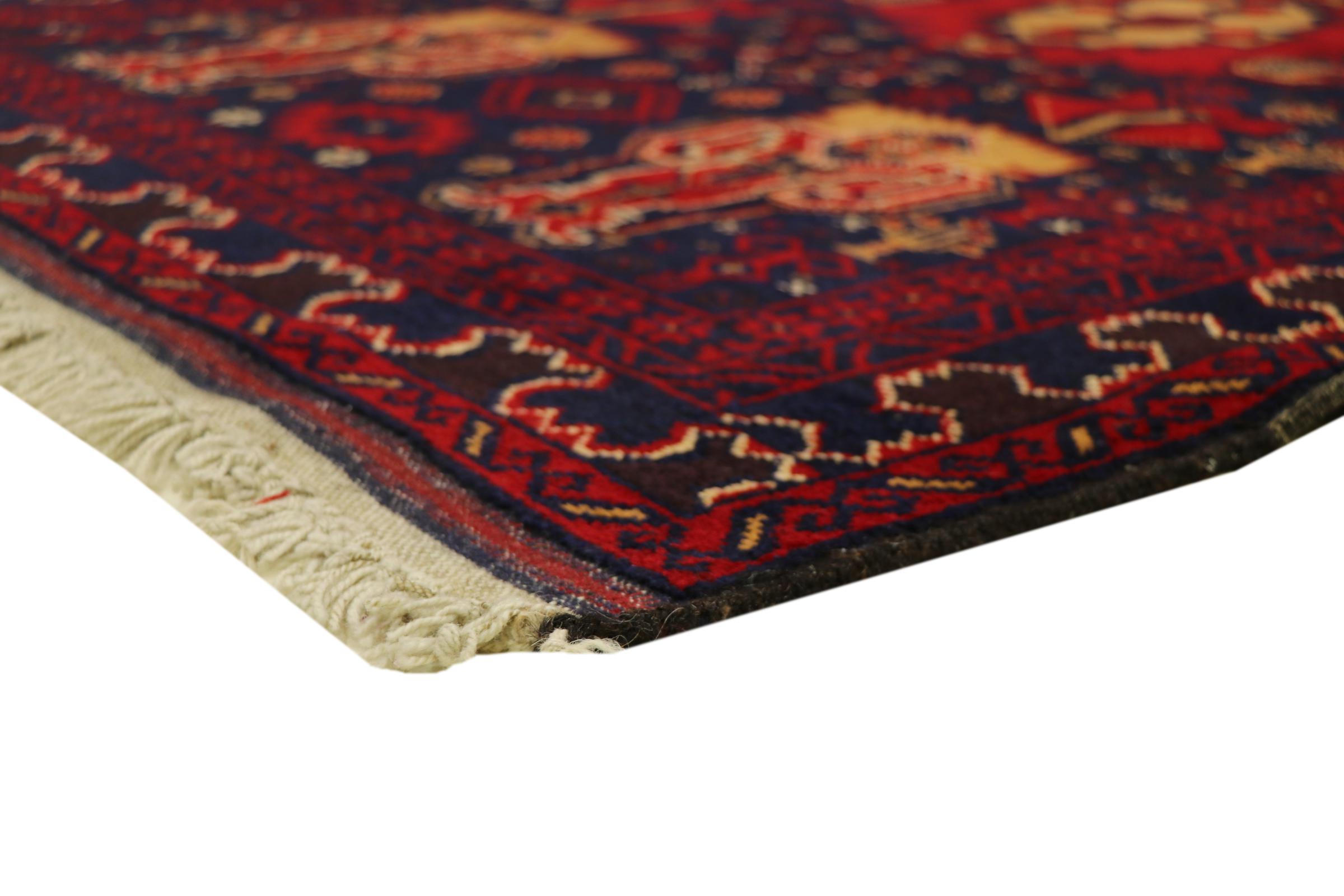 Esta alfombra Belouch es un maravilloso ejemplo del auténtico arte nómada. Fabricada en la región fronteriza entre Irán y Afganistán, esta alfombra persa sabe cómo impresionar gracias a su tejido denso y asimétrico. Sus vivos dibujos la convierten en un auténtico regalo para la vista. Son típicos los tonos más bien oscuros, que difunden una agradable calidez. Su bello hilo natural transmite calidad y la hace extremadamente duradera. Son típicos de esta alfombra los dibujos rectos que la convierten en una alfombra nómada distintiva.