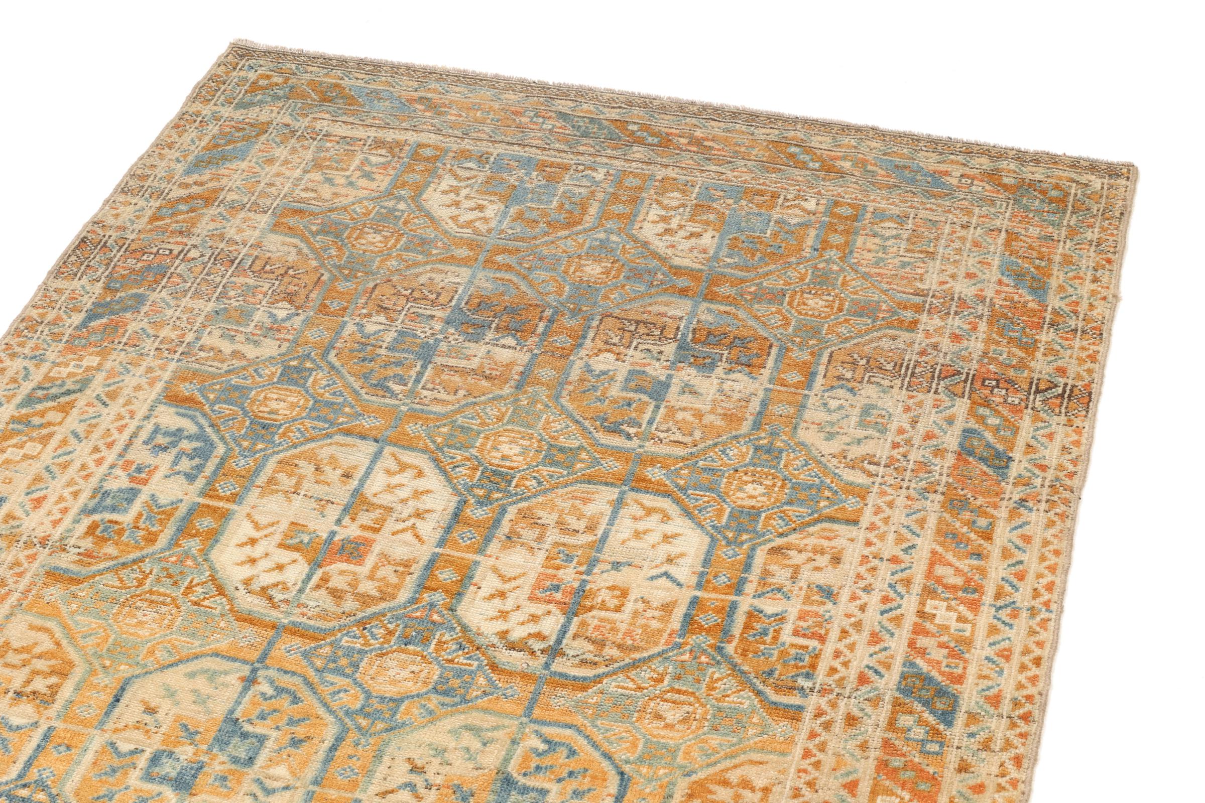 Esta alfombra pertenece a alfombras de pueblos y nómadas de Irán, antiguamente Persia. Este tipo de alfombra se anuda a mano en ciudades y pueblos más pequeños según la antigua tradición. Incluso los nómadas siguen anudando alfombras persas al aire libre. Las alfombras están anudadas sin un patrón y completamente desde la cabeza. Se caracterizan por los ornamentos clásicos, que están dispuestos en patrones rectos y geométricos. Gracias a su origen cultural-tradicional, estas alfombras tienen un carácter único que encarna la antigua Persia.