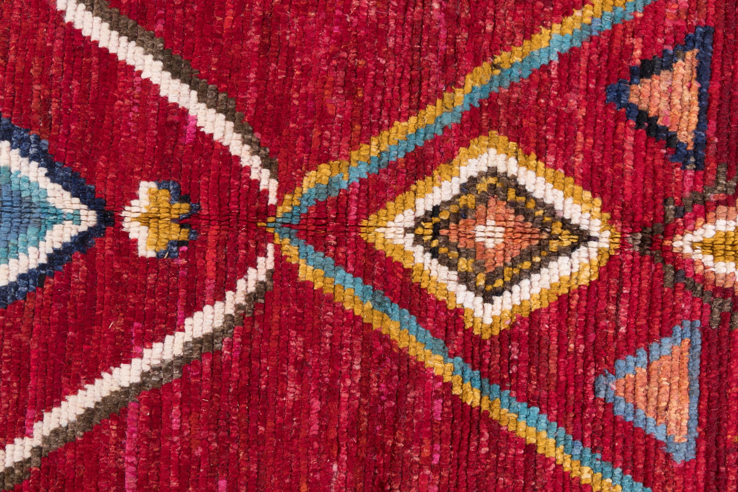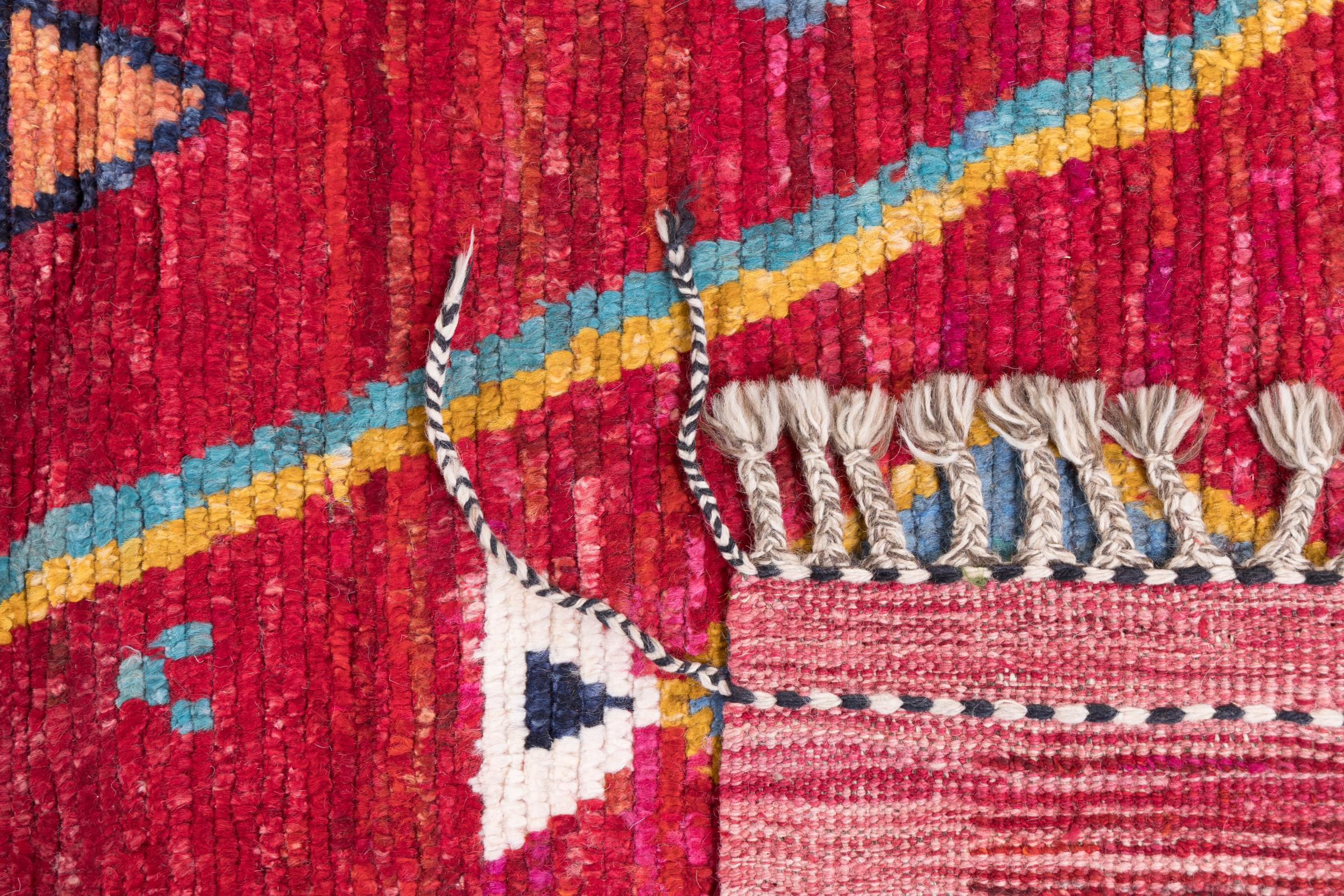 Esta alfombra bereber Ghashghai se caracteriza por su lana de alta calidad y un tejido denso y particularmente preciso. Por lo tanto, es excepcionalmente duradero y tiene un pelo consistentemente firme pero maravillosamente suave. Su diseño inspira con color y patrones simbólicos todos los días.