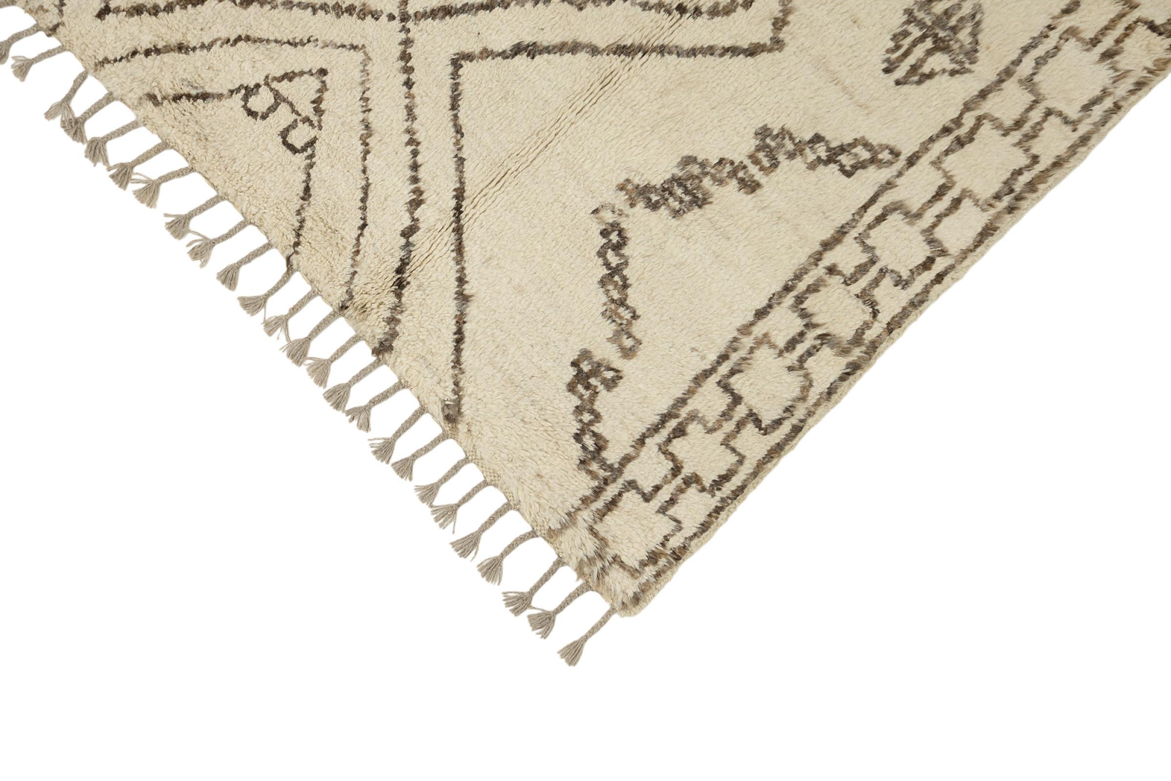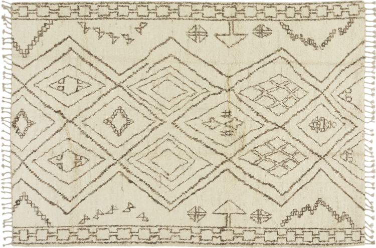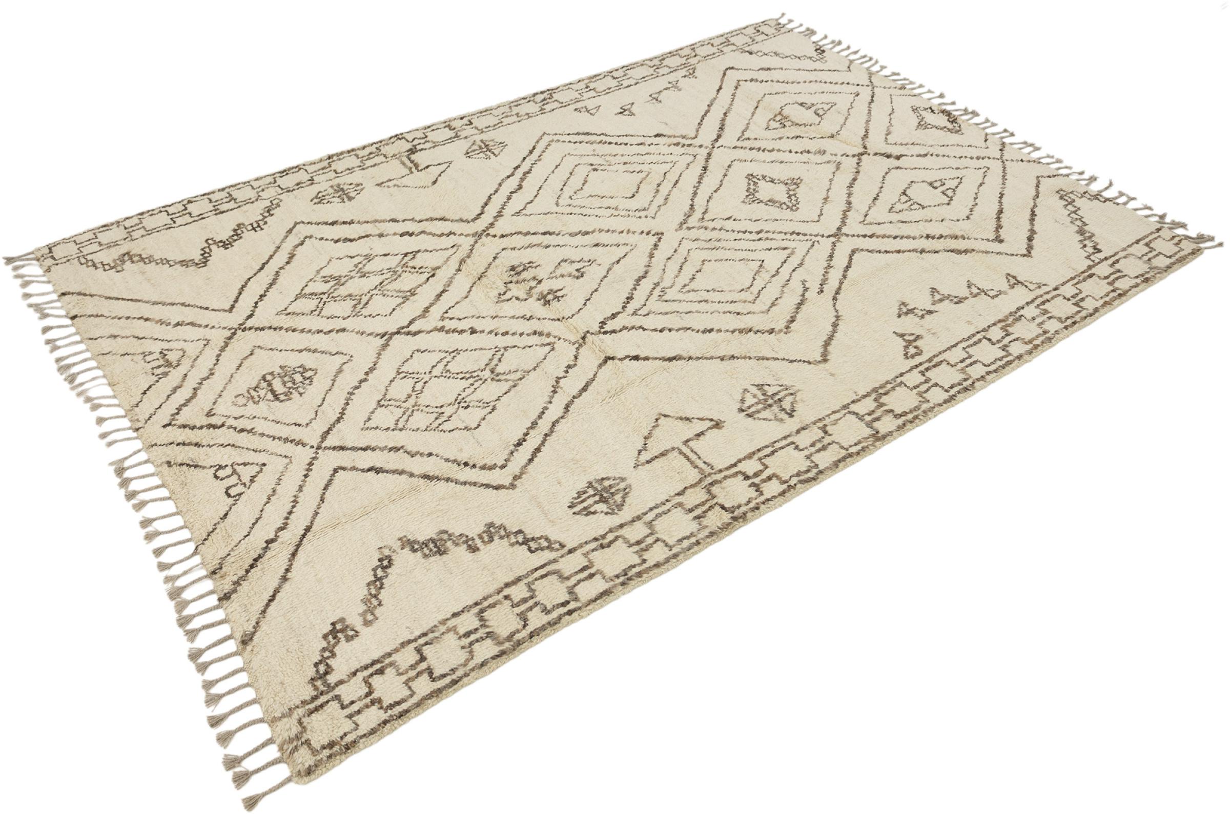 Esta alfombra de estilo bereber marroquí está inspirada en el arte bereber tradicional y se destaca por sus patrones claros y un diseño moderno. Aporta estructura, calidez y un estilo atemporal a los espacios habitables modernos.