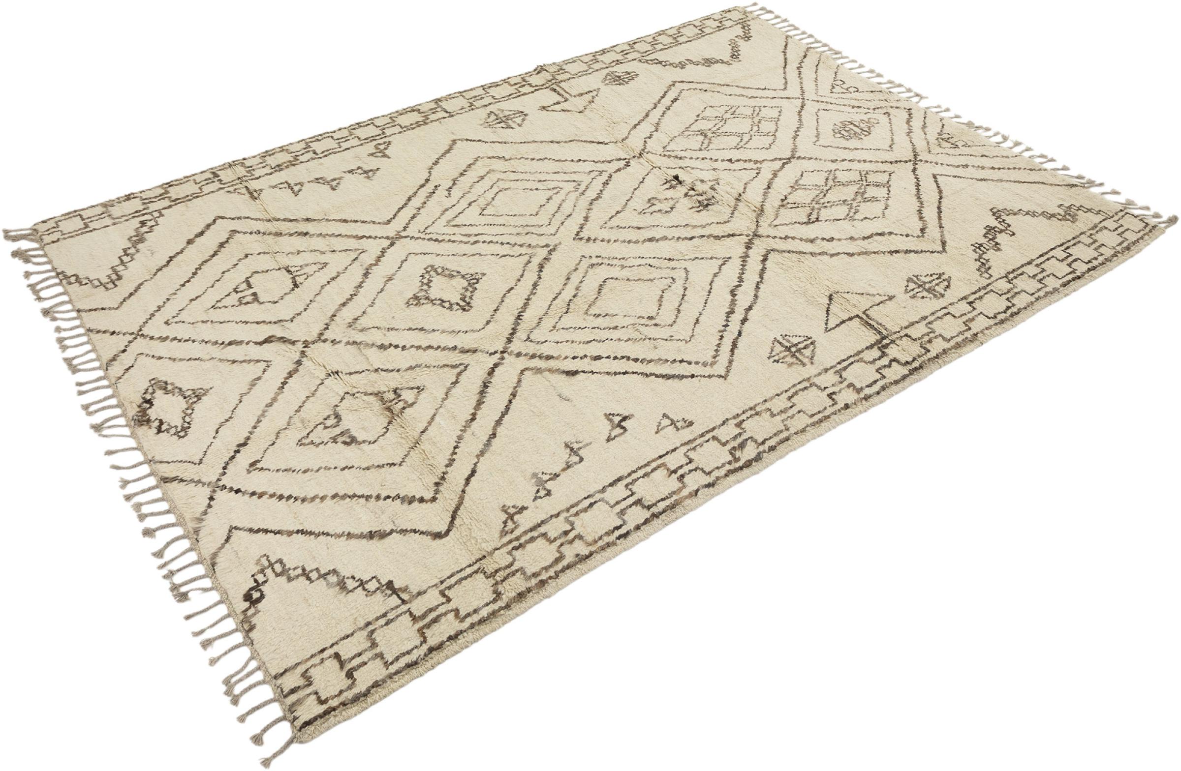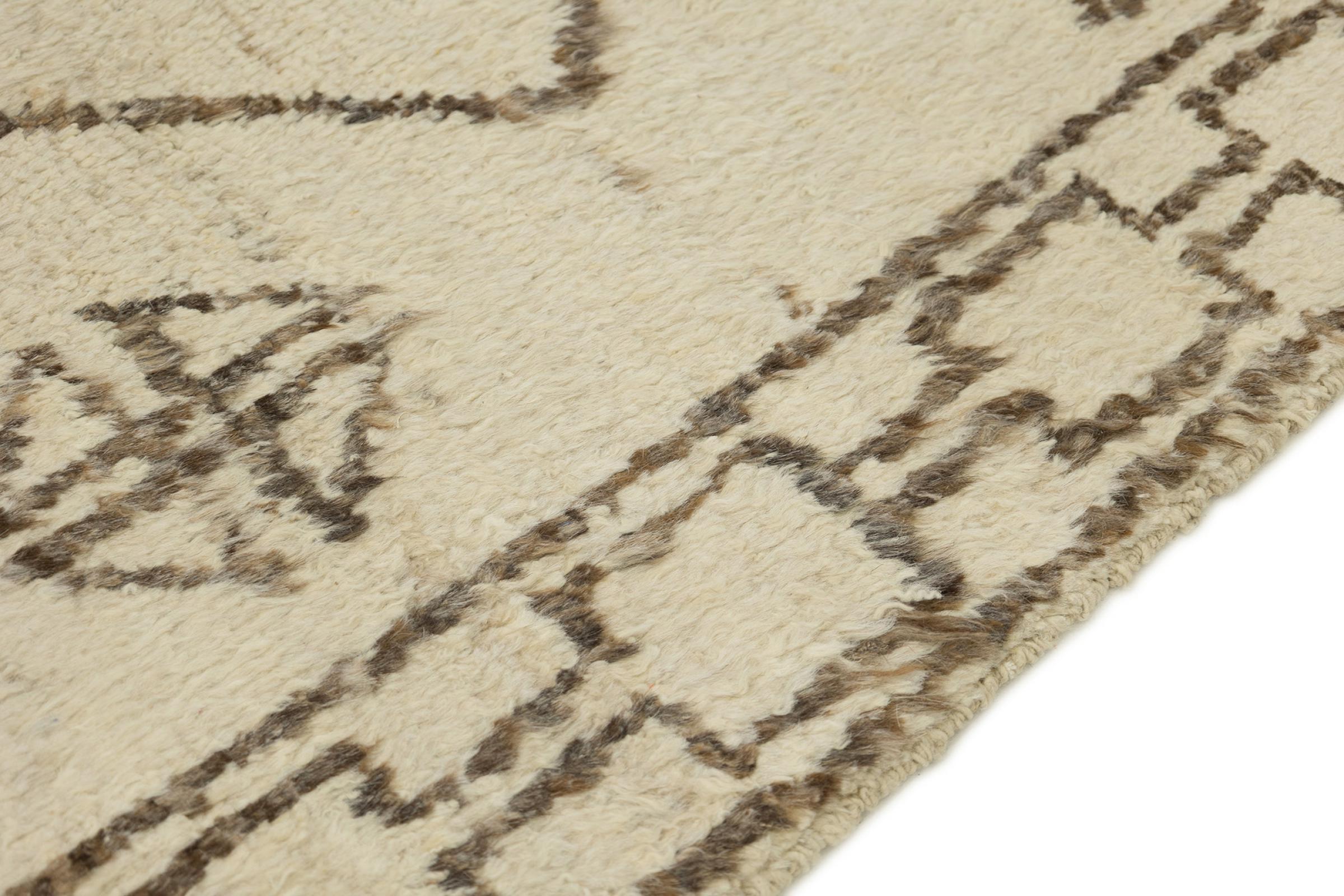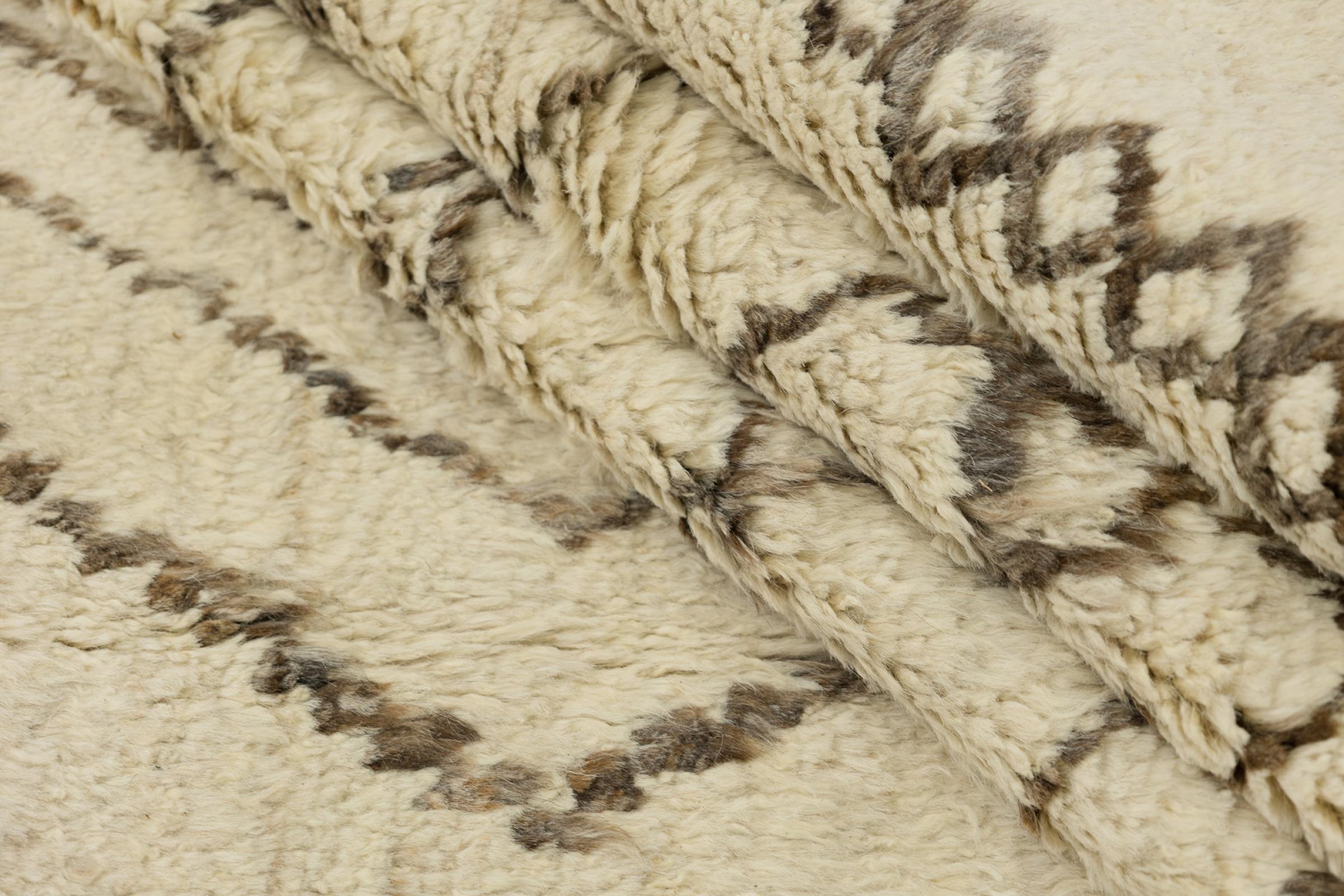 Esta alfombra de estilo bereber marroquí está inspirada en el arte bereber tradicional y se destaca por sus patrones claros y un diseño moderno. Aporta estructura, calidez y un estilo atemporal a los espacios habitables modernos.