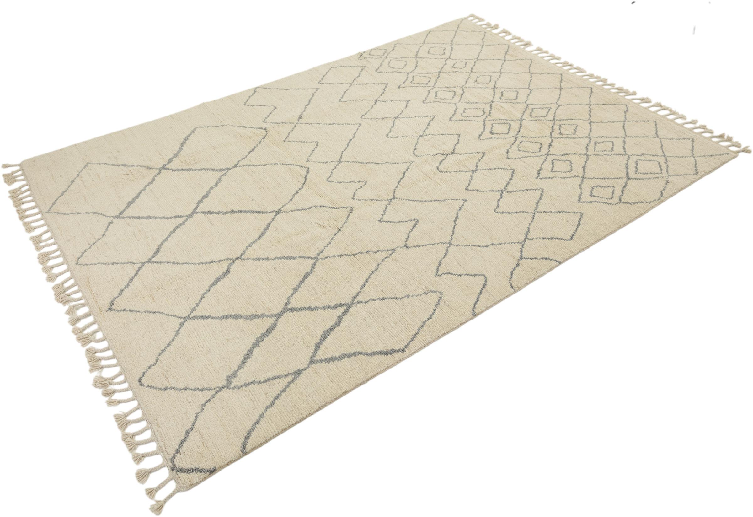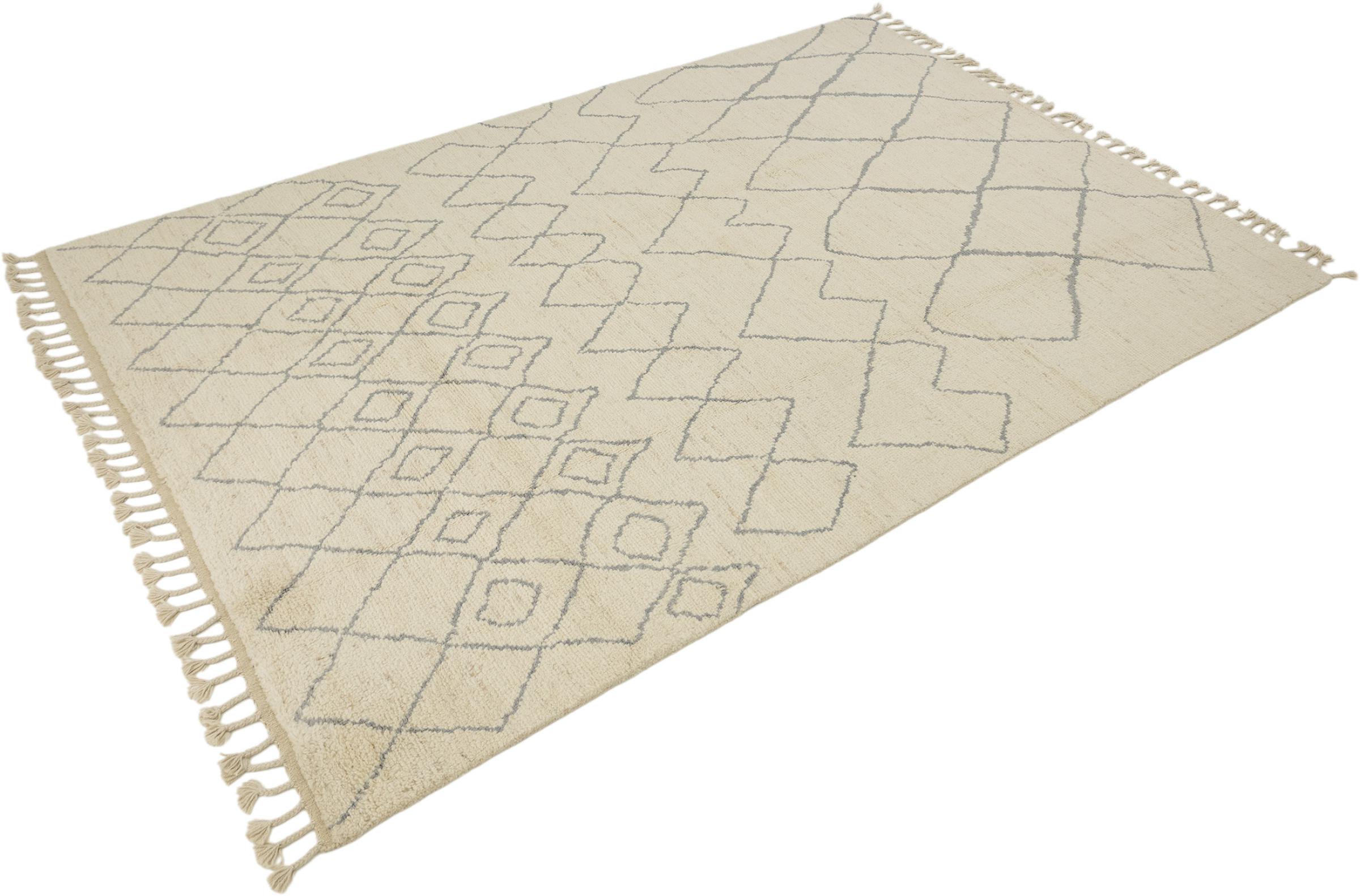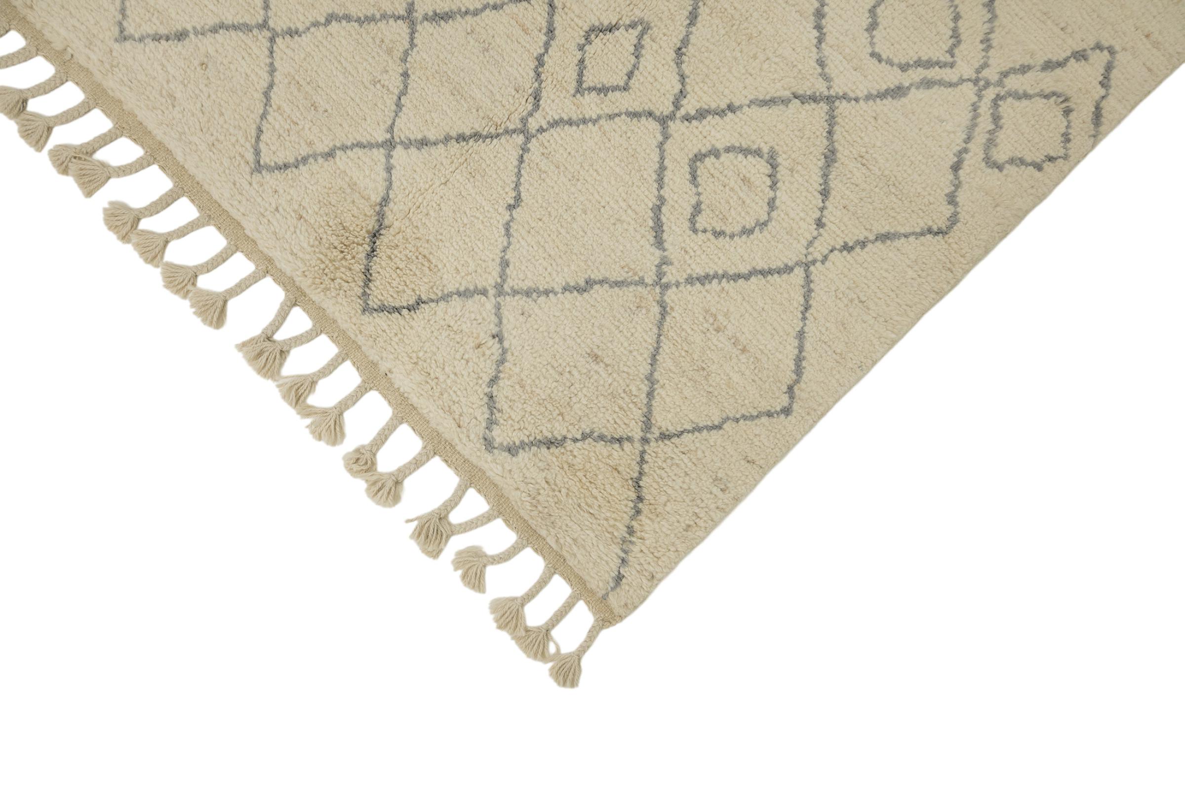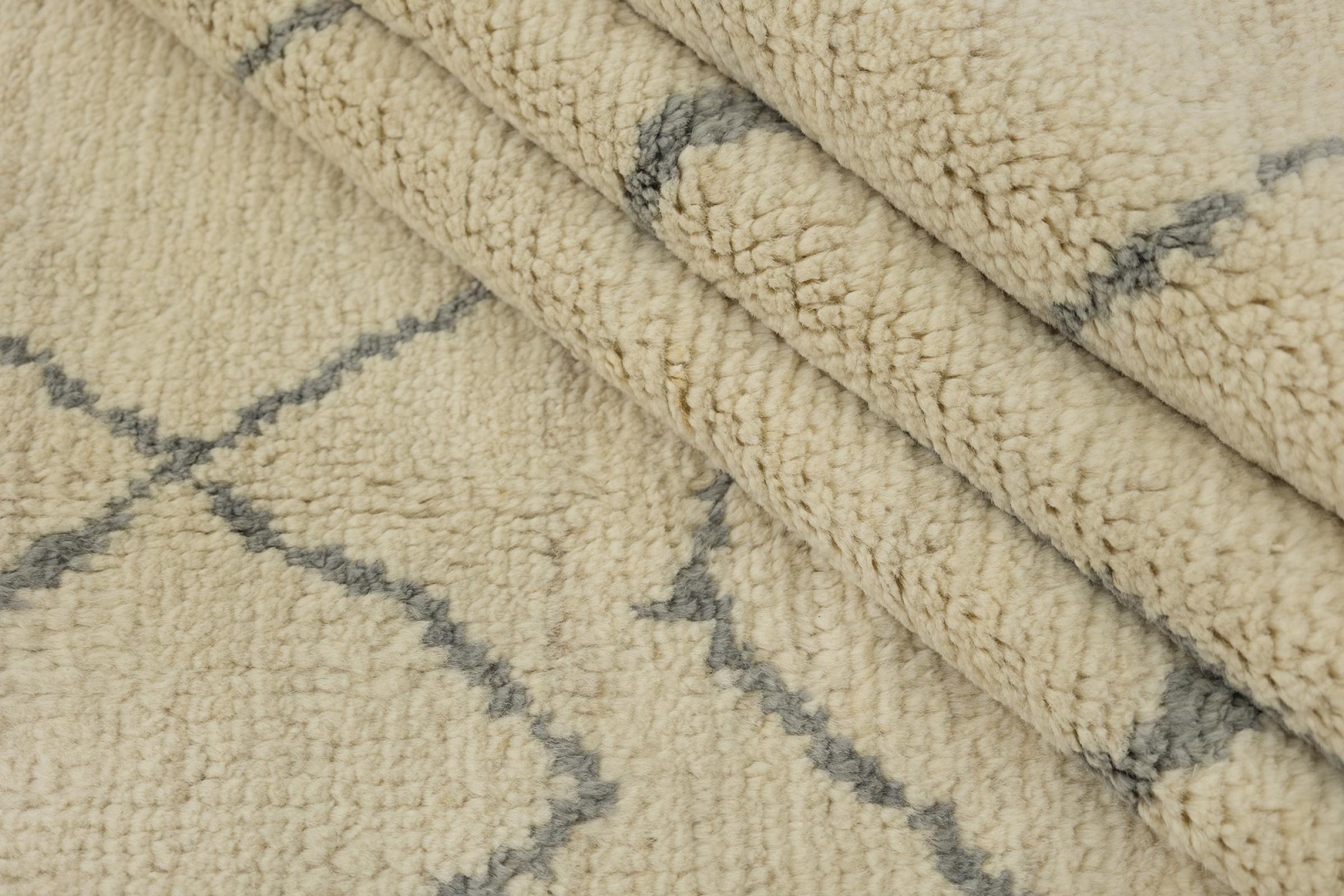 Esta alfombra de estilo bereber marroquí está inspirada en el arte bereber tradicional y se destaca por sus patrones claros y un diseño moderno. Aporta estructura, calidez y un estilo atemporal a los espacios habitables modernos.