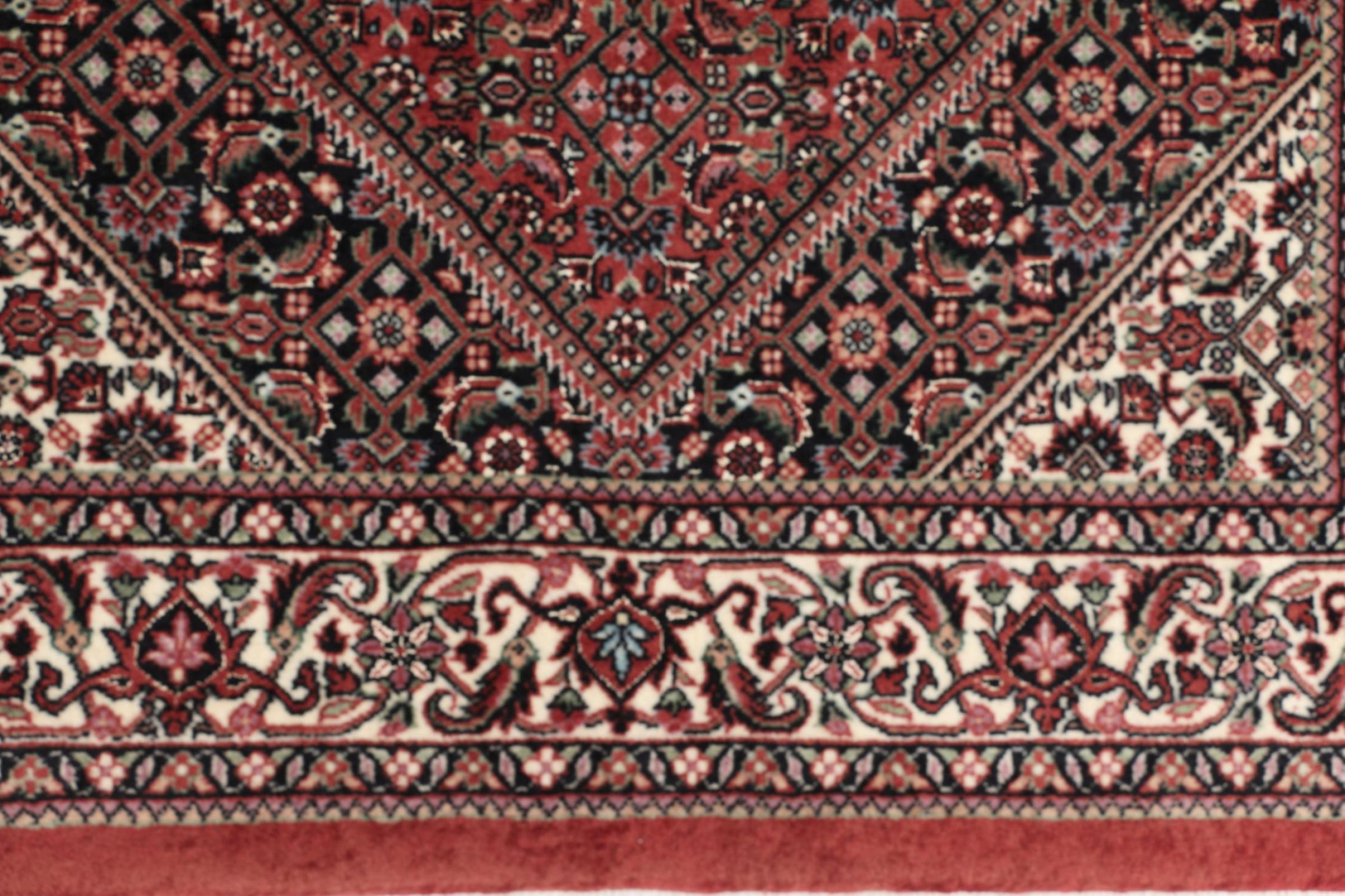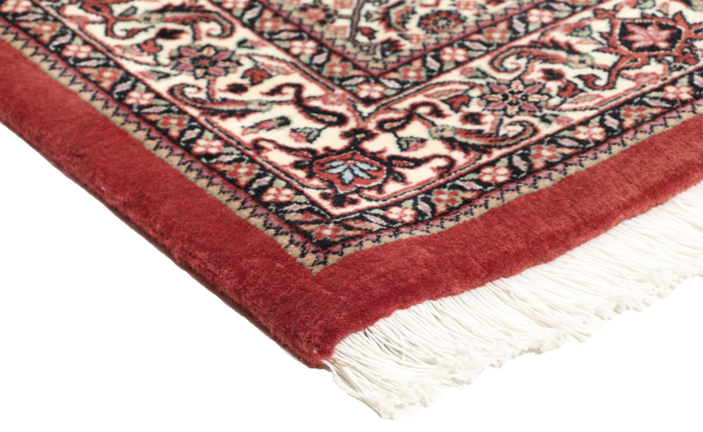 Esta alfombra persa fue anudada a mano en una pequeña ciudad kurda en el oeste de Irán. Las Bidjar son sinónimo de calidad. Su terciopelo compacto cautiva con su alta densidad y con ello resistencia al desgaste. Se lo aseguramos: esta alfombra kurda deleita desde el principio. E incluso le seguirá deleitando muchísimo más con el pasar de los años.
