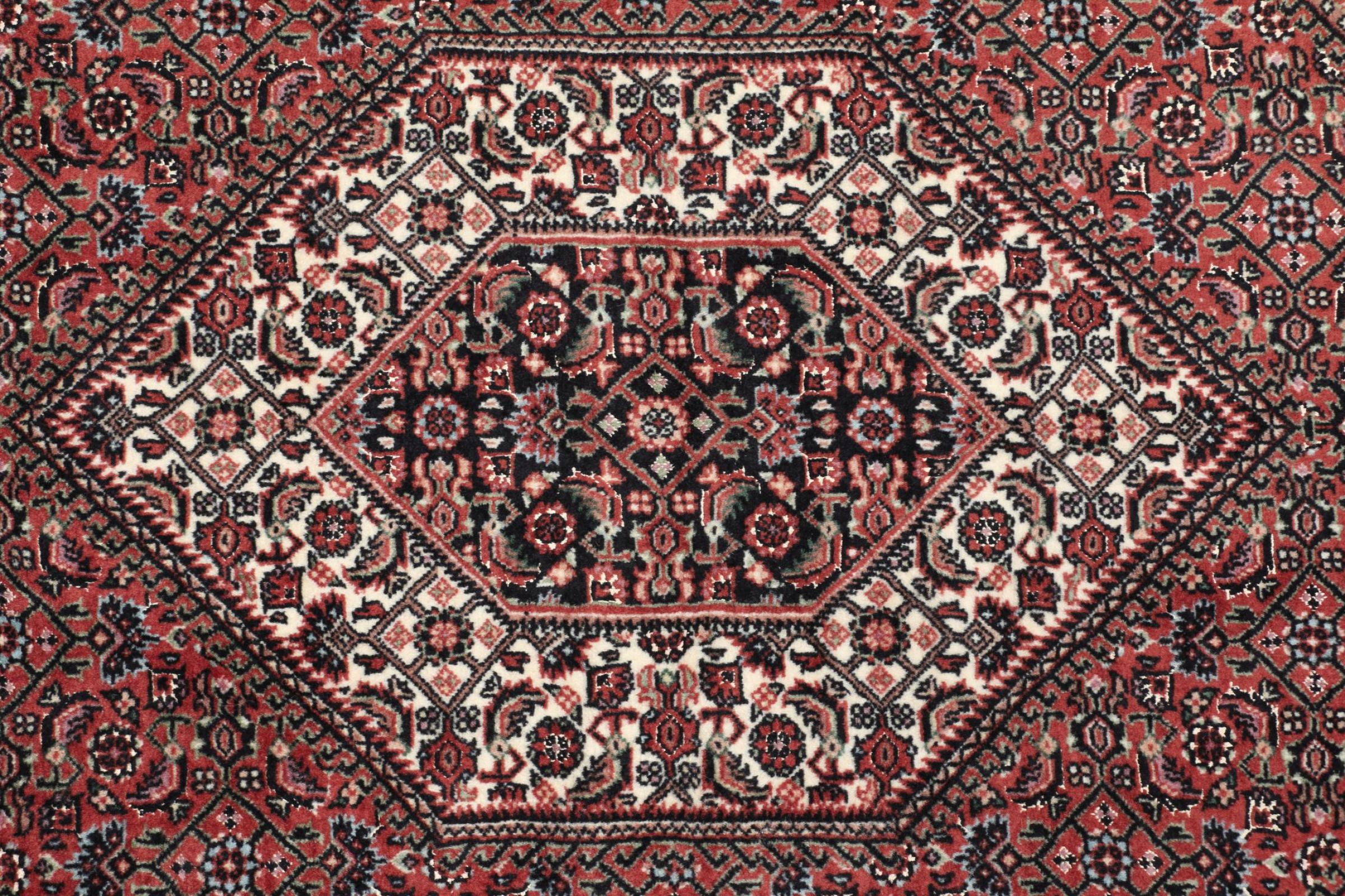 Estas alfombras provienen de la minoría kurda que vive en Irán. La ciudad de Bijar es conocida por sus alfombras persas fuertes y de alta calidad. El montón de estas alfombras se comprime fuertemente con un peine cuando se anuda. De esta manera, las partículas de suciedad apenas pueden penetrar. Al mismo tiempo, las alfombras de Bijar son relativamente pesadas y gruesas. Las alfombras de Bijar suelen tener un medallón en el centro y el llamado patrón Herati.