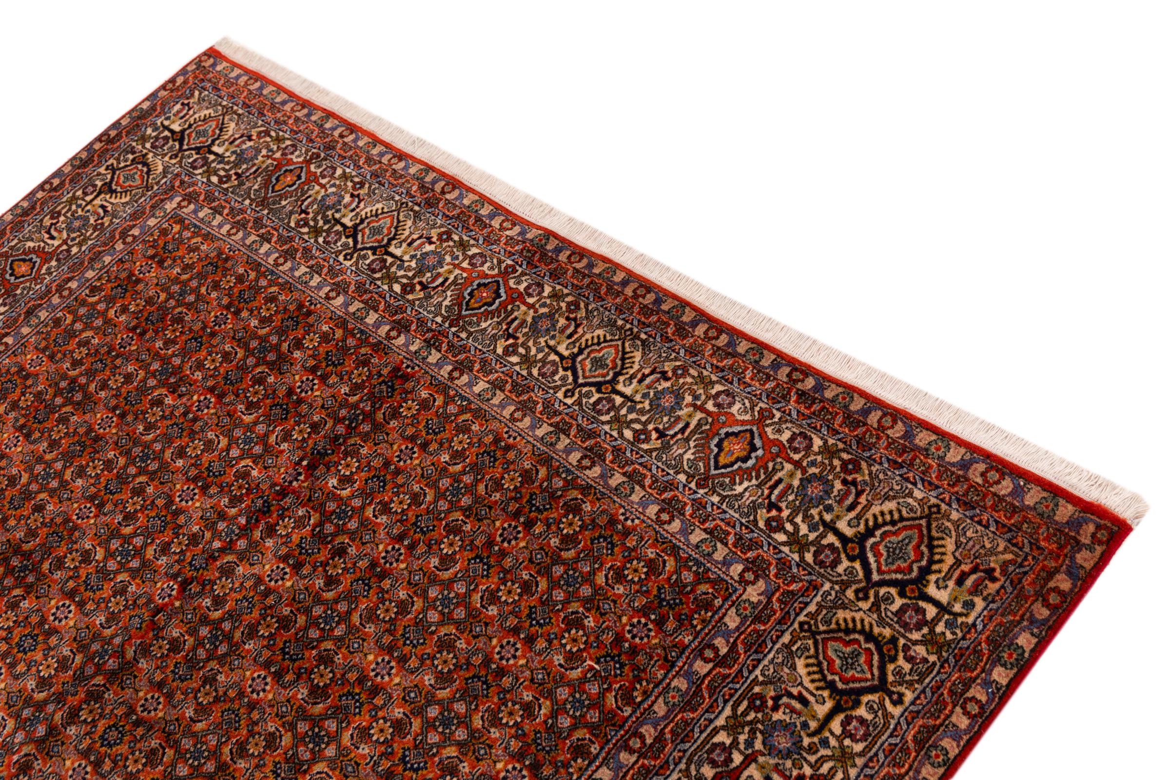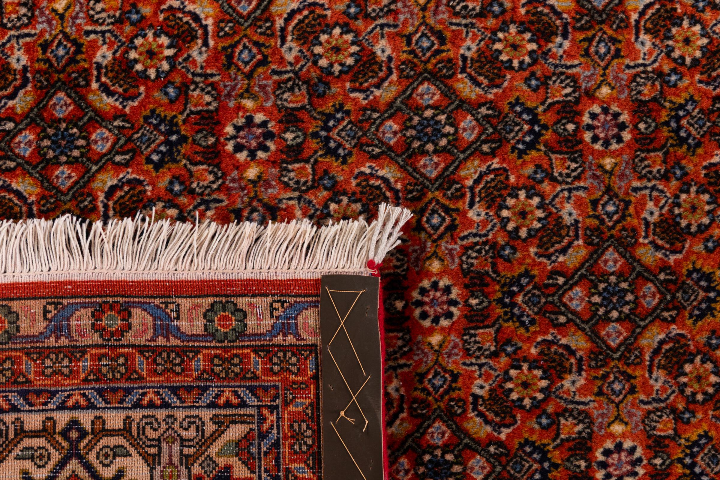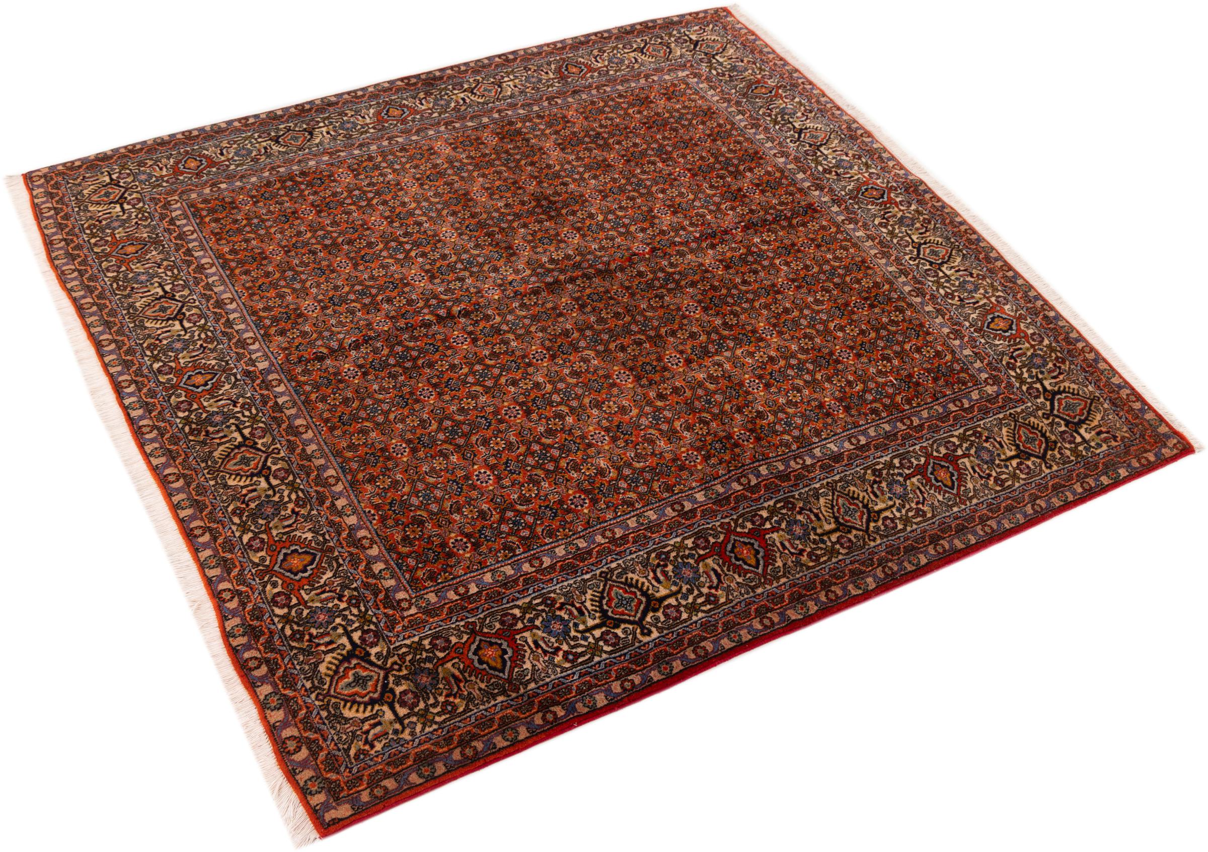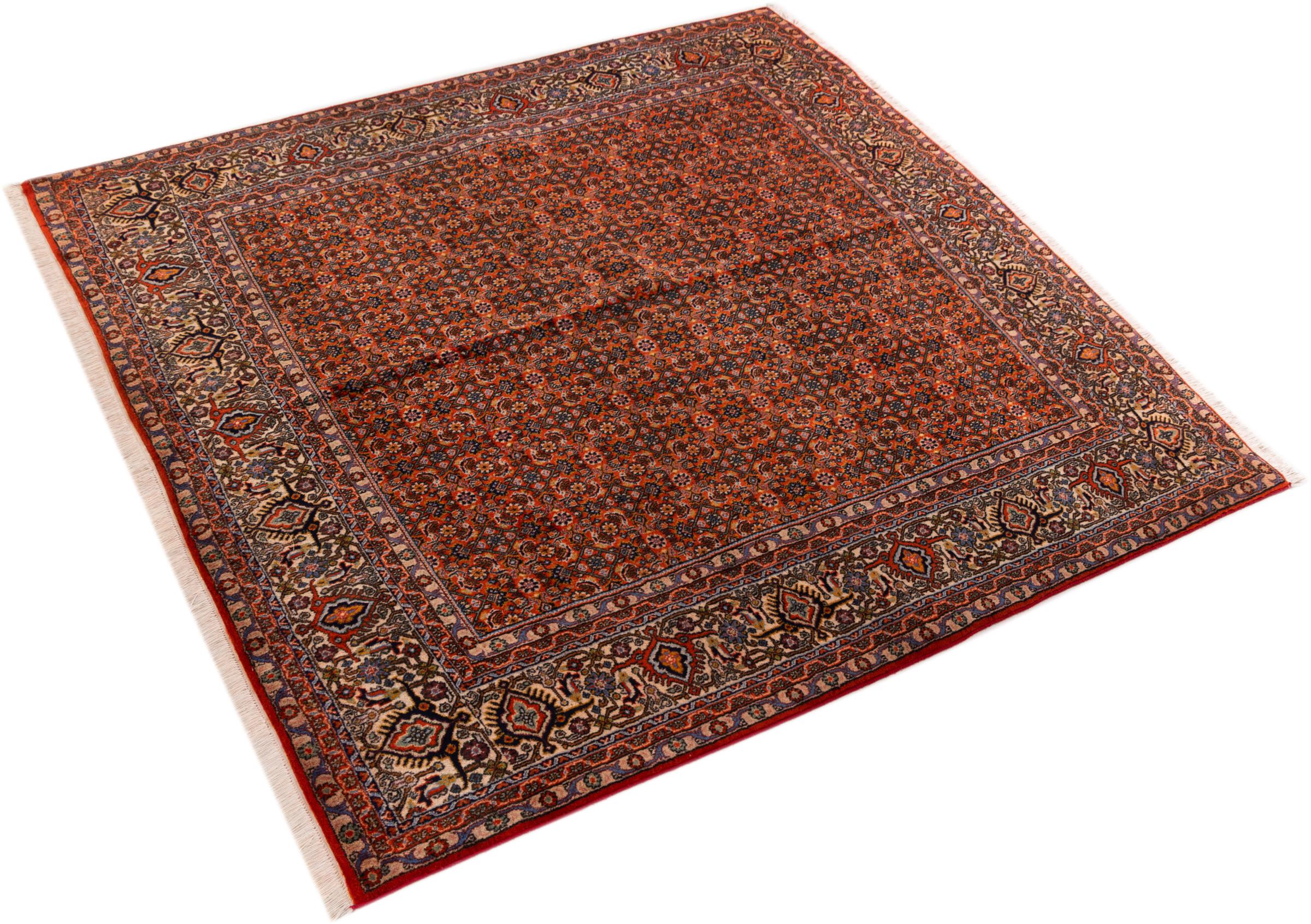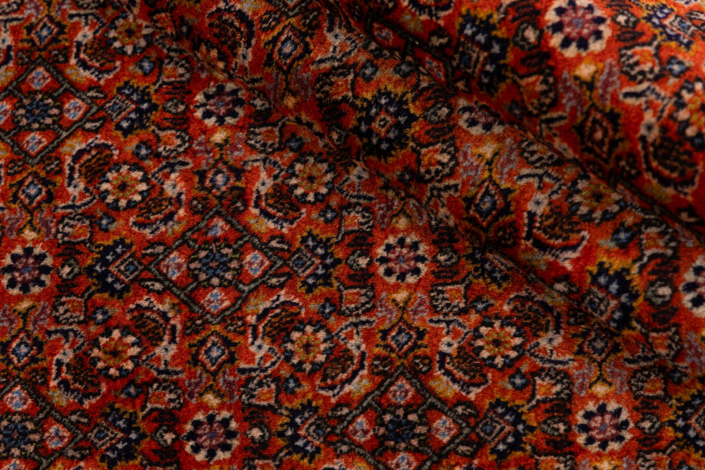 Esta alfombra persa fue anudada a mano en una pequeña ciudad kurda en el oeste de Irán. Las Bidjar son sinónimo de calidad. Su terciopelo compacto cautiva con su alta densidad y con ello resistencia al desgaste. Se lo aseguramos: esta alfombra kurda deleita desde el principio. E incluso le seguirá deleitando muchísimo más con el pasar de los años.