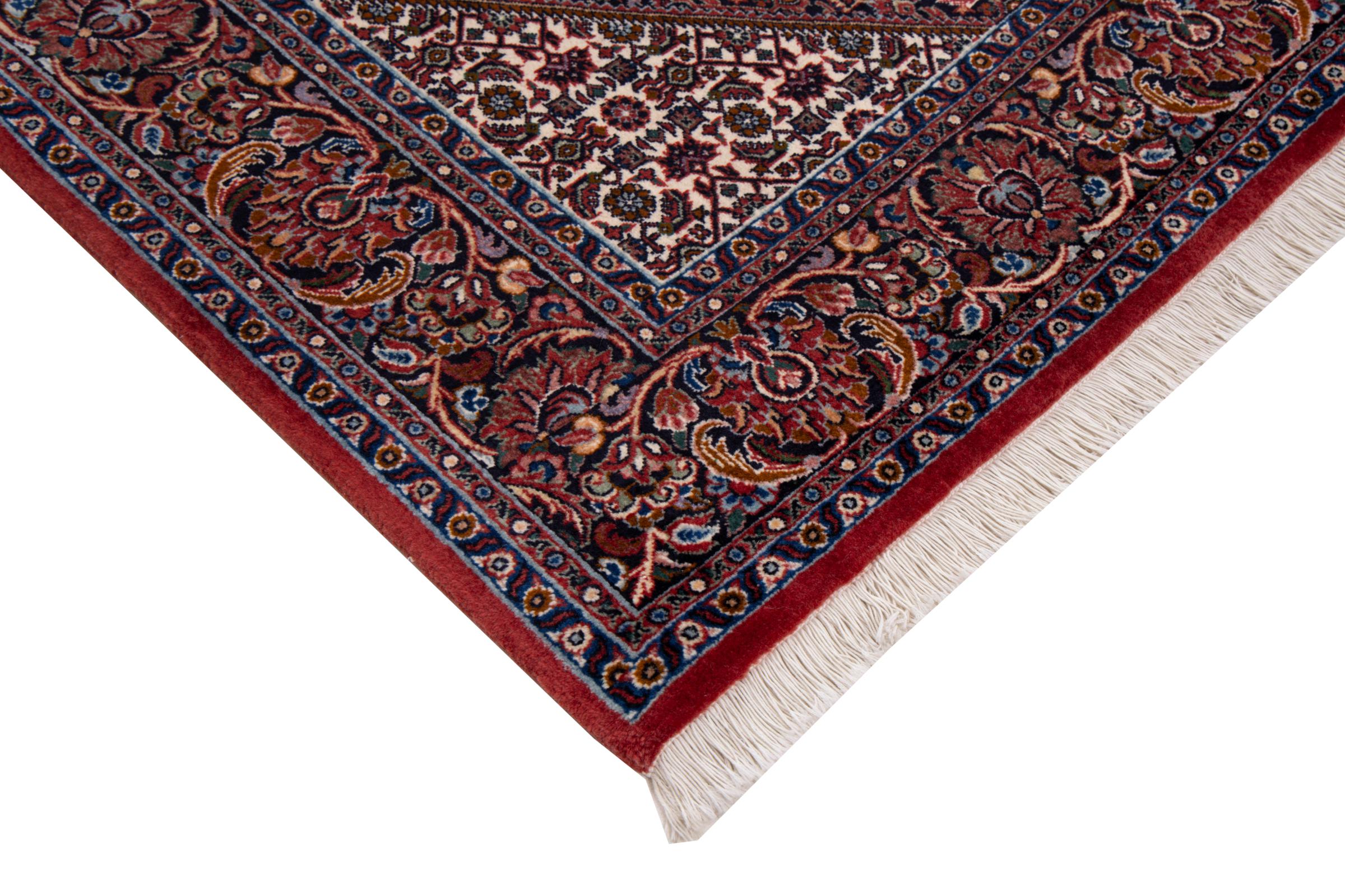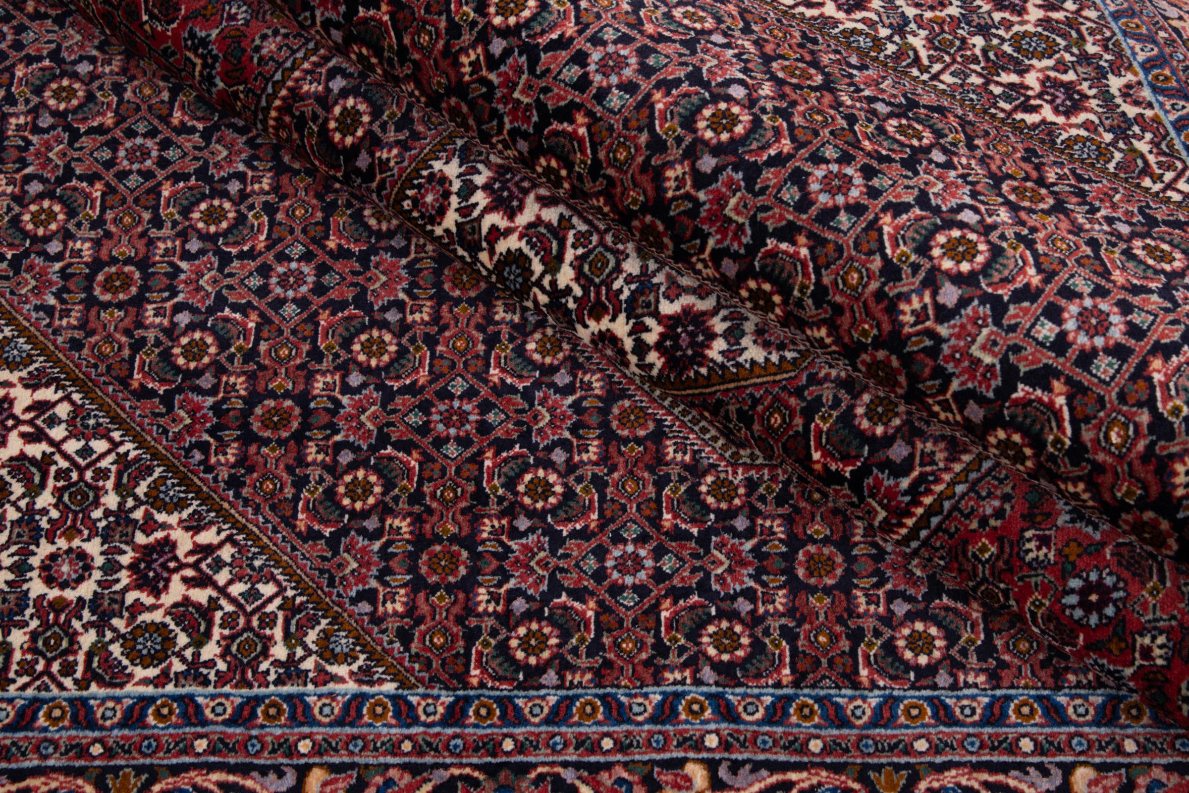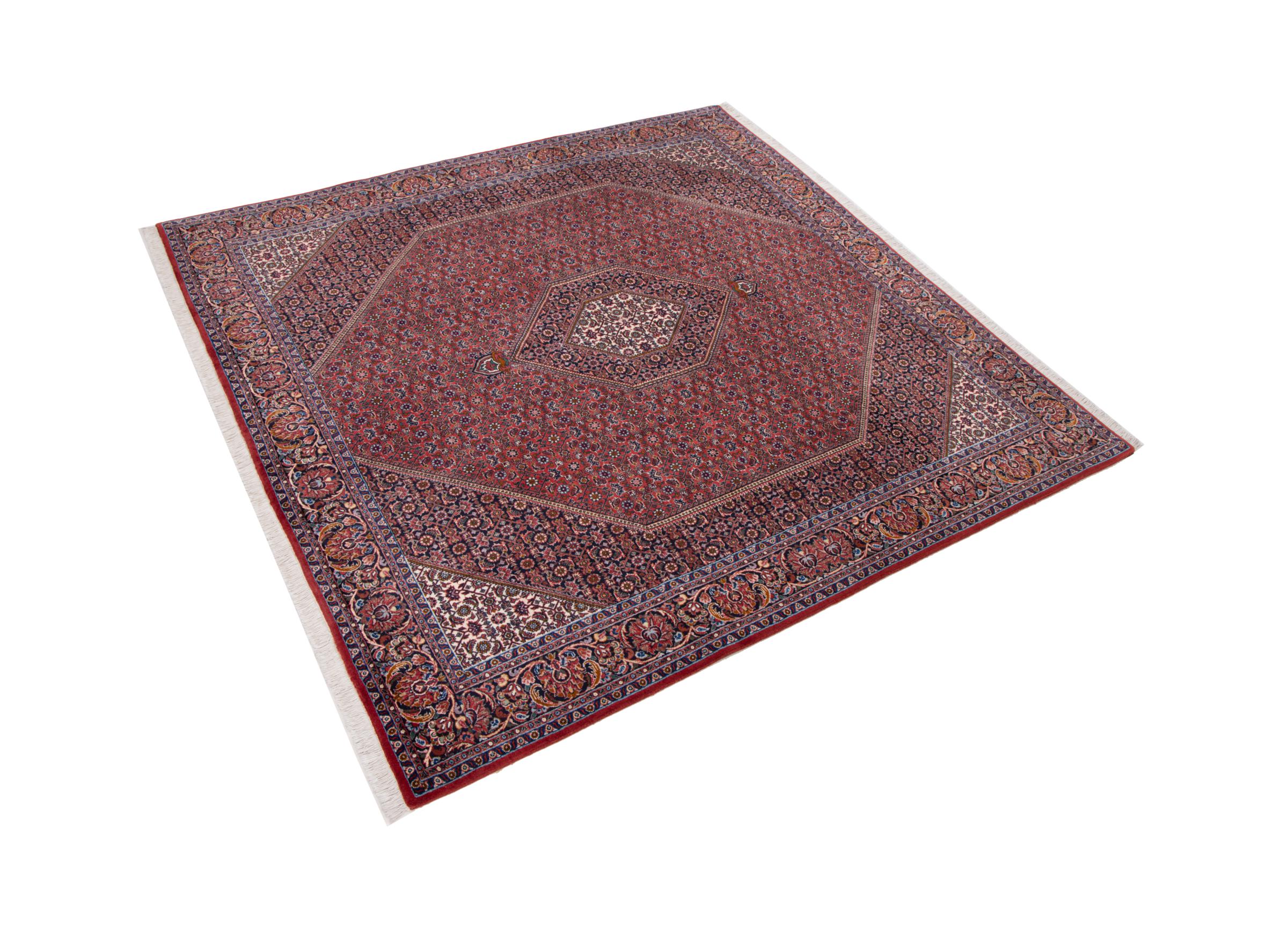 Esta alfombra persa fue anudada a mano en una pequeña ciudad kurda en el oeste de Irán. Las Bidjar son sinónimo de calidad. Su terciopelo compacto cautiva con su alta densidad y con ello resistencia al desgaste. Se lo aseguramos: esta alfombra kurda deleita desde el principio. E incluso le seguirá deleitando muchísimo más con el pasar de los años.