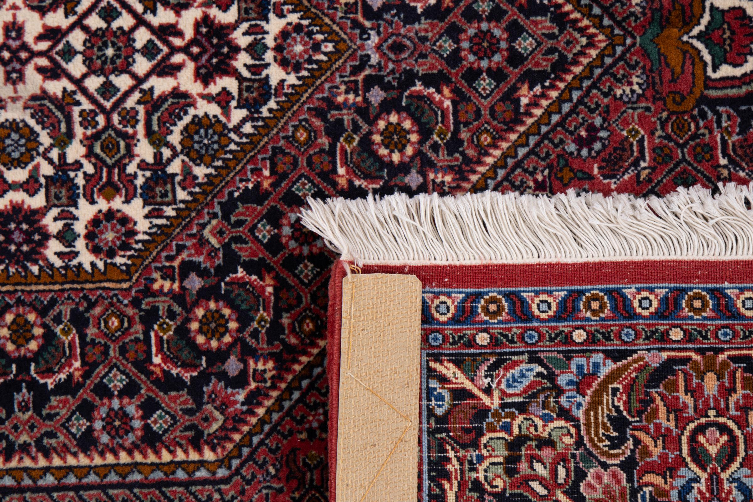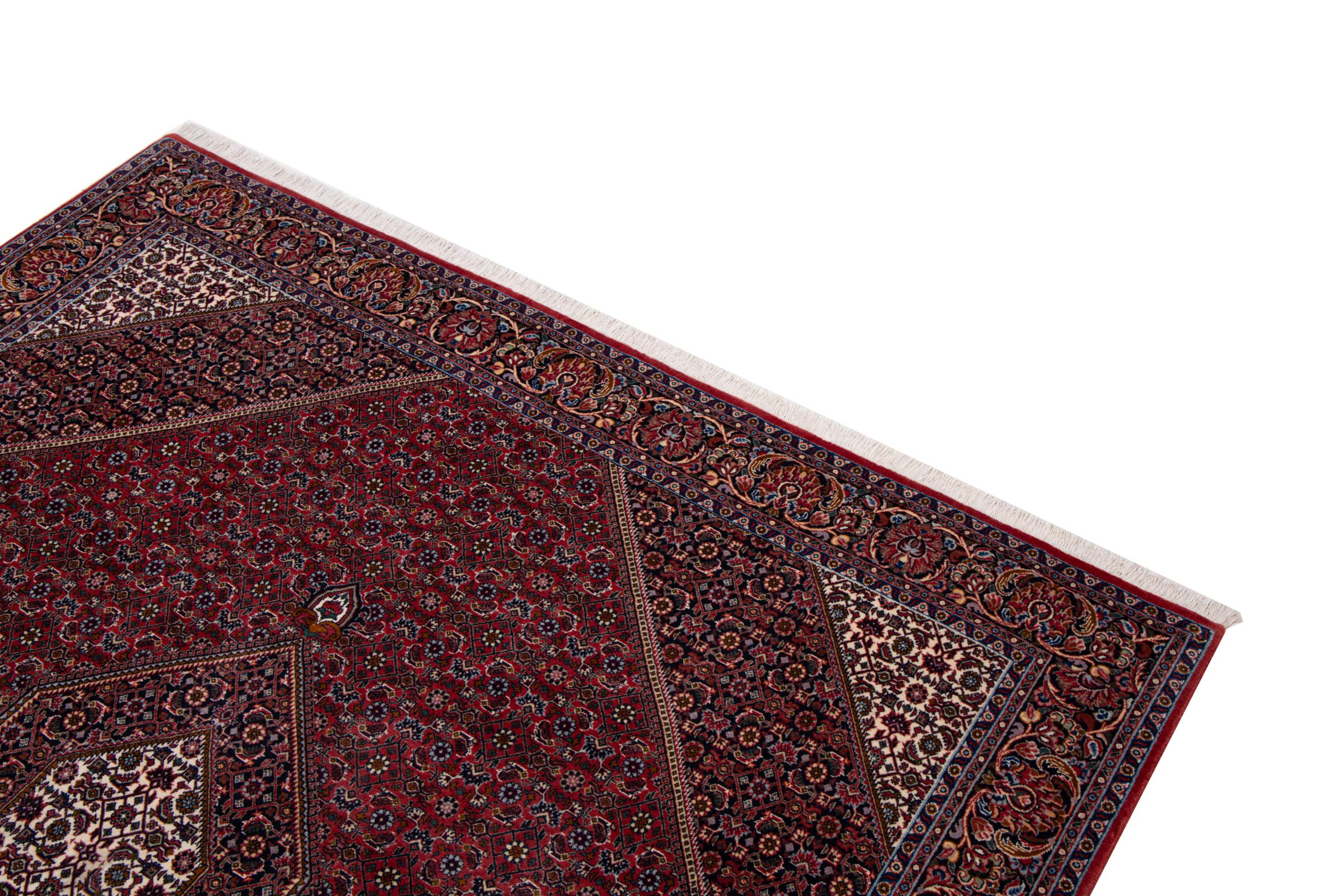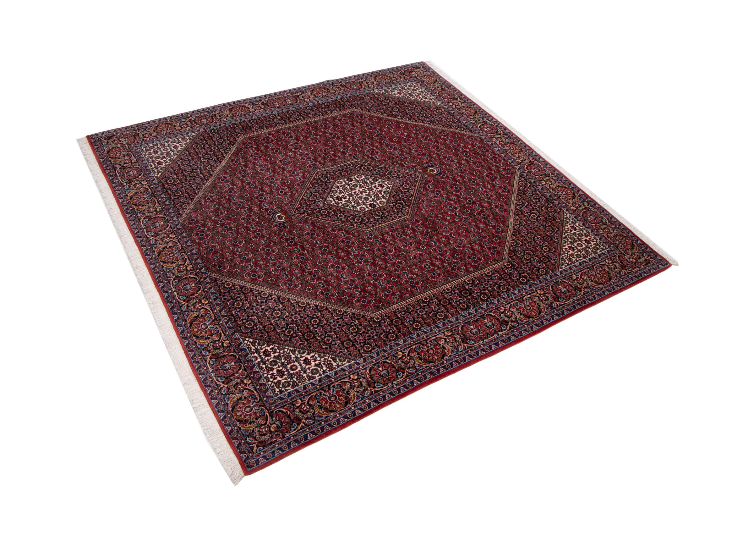 Esta alfombra persa fue anudada a mano en una pequeña ciudad kurda en el oeste de Irán. Las Bidjar son sinónimo de calidad. Su terciopelo compacto cautiva con su alta densidad y con ello resistencia al desgaste. Se lo aseguramos: esta alfombra kurda deleita desde el principio. E incluso le seguirá deleitando muchísimo más con el pasar de los años.