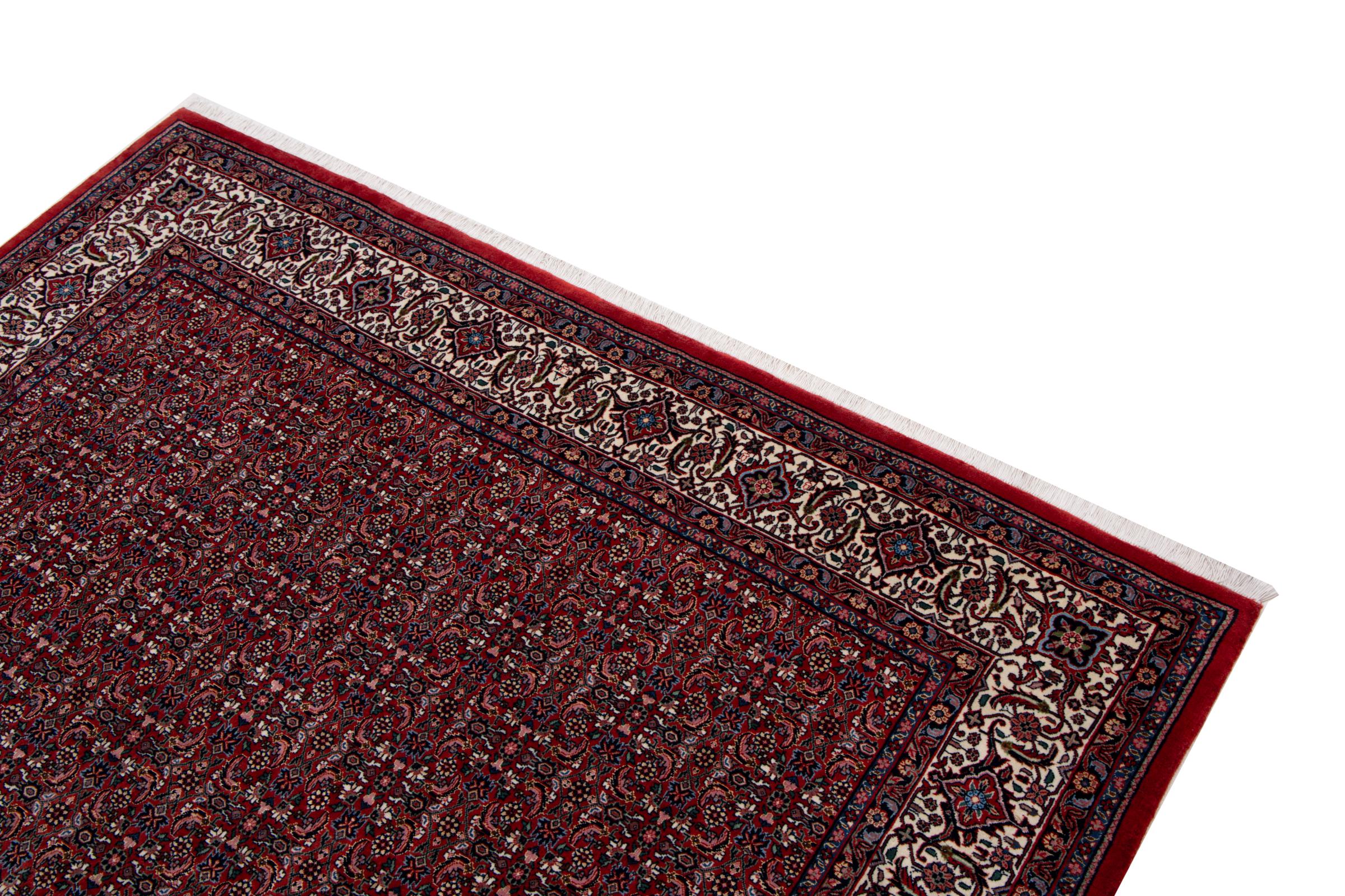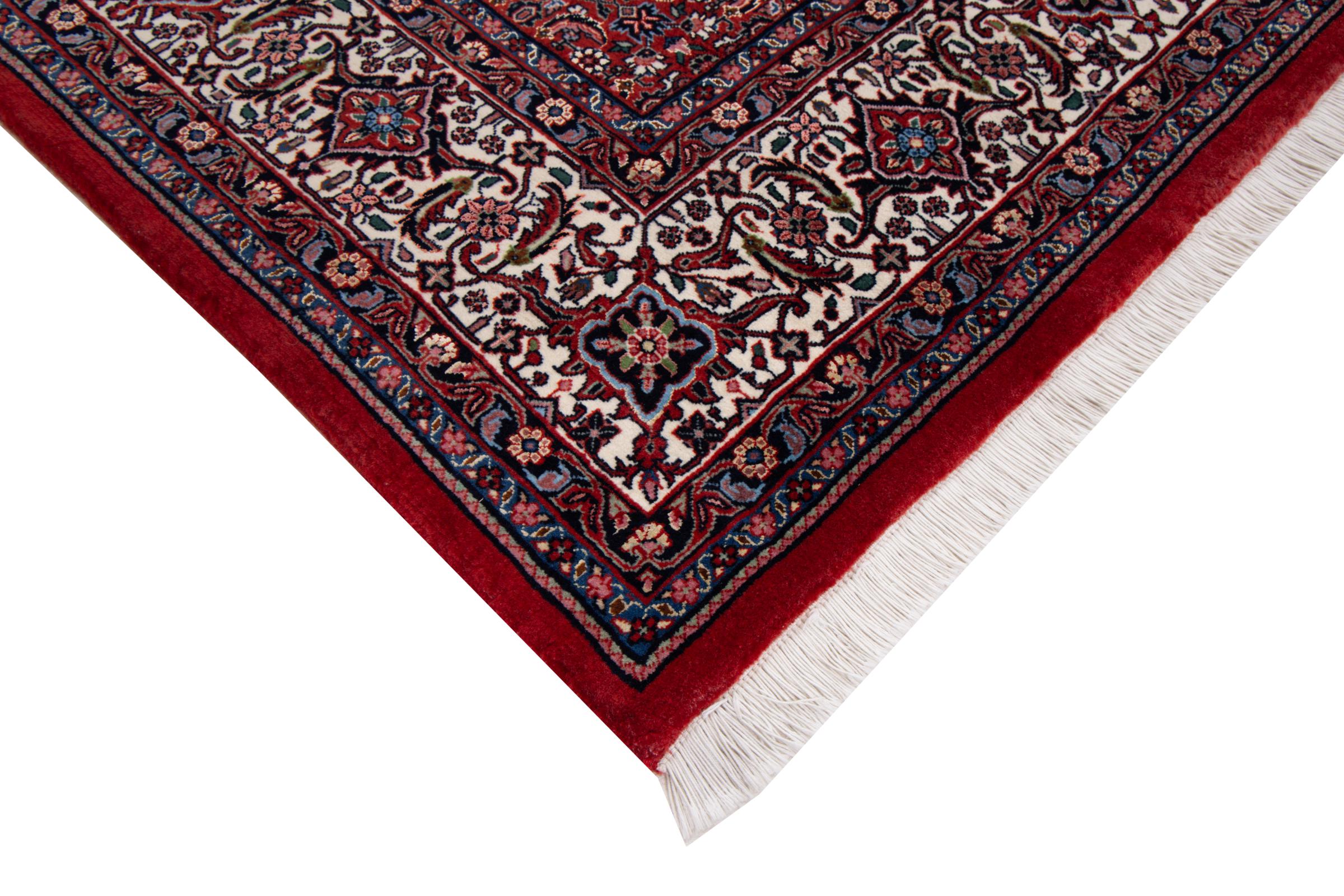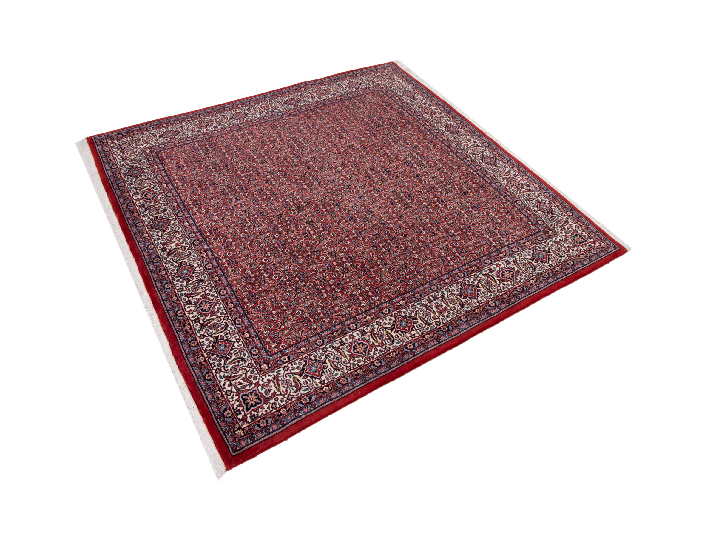 Esta alfombra persa fue anudada a mano en una pequeña ciudad kurda en el oeste de Irán. Las Bidjar son sinónimo de calidad. Su terciopelo compacto cautiva con su alta densidad y con ello resistencia al desgaste. Se lo aseguramos: esta alfombra kurda deleita desde el principio. E incluso le seguirá deleitando muchísimo más con el pasar de los años.