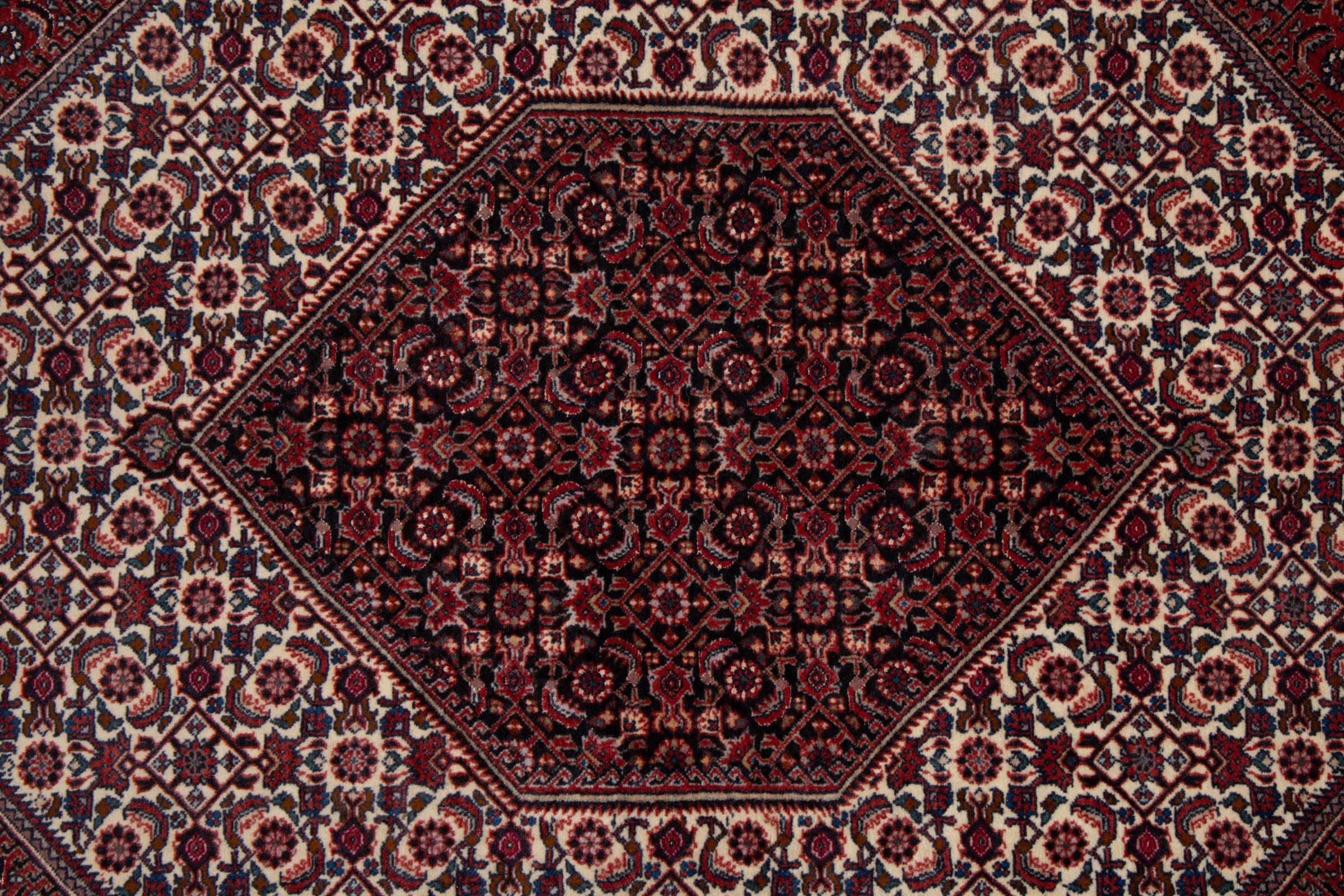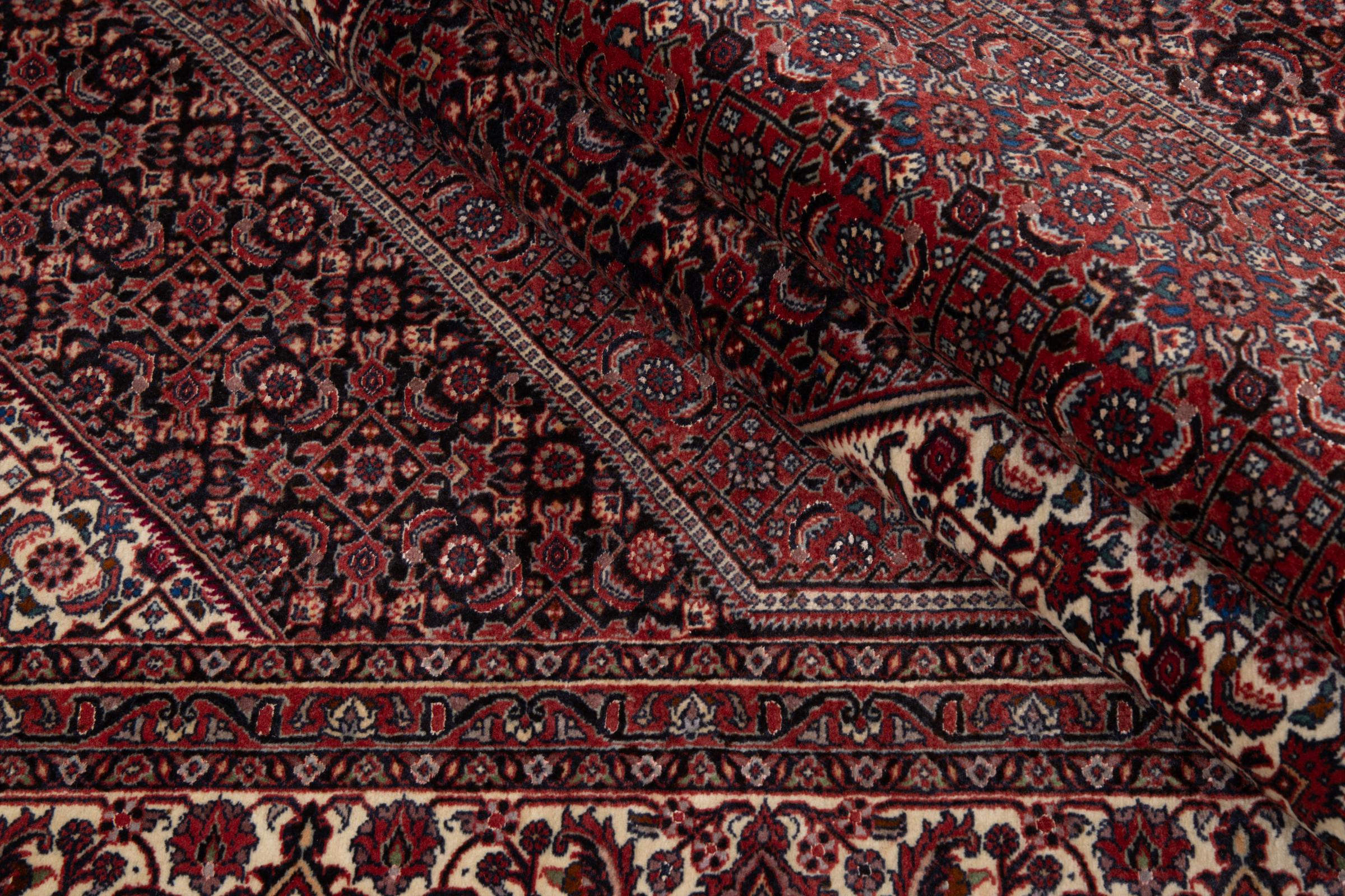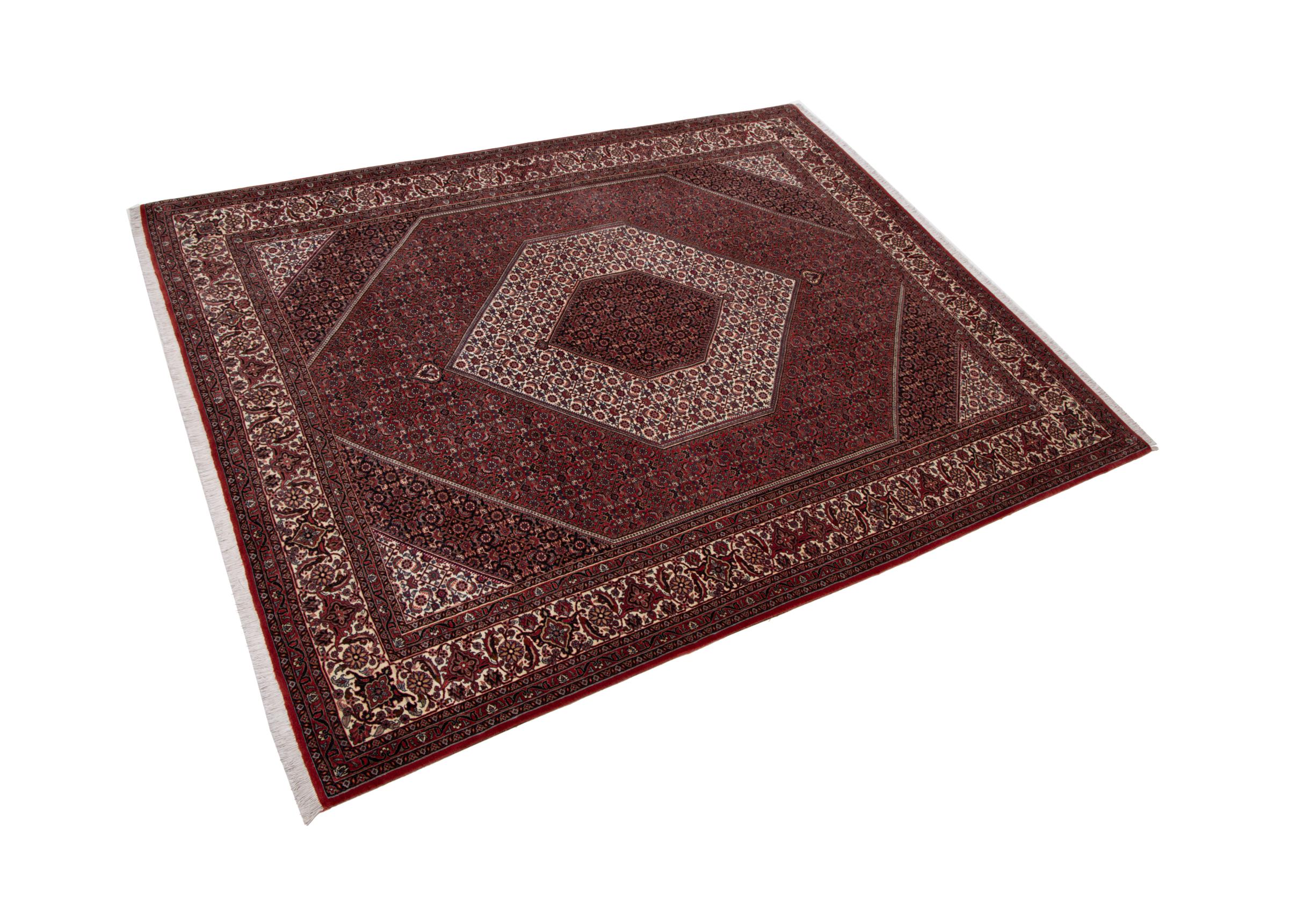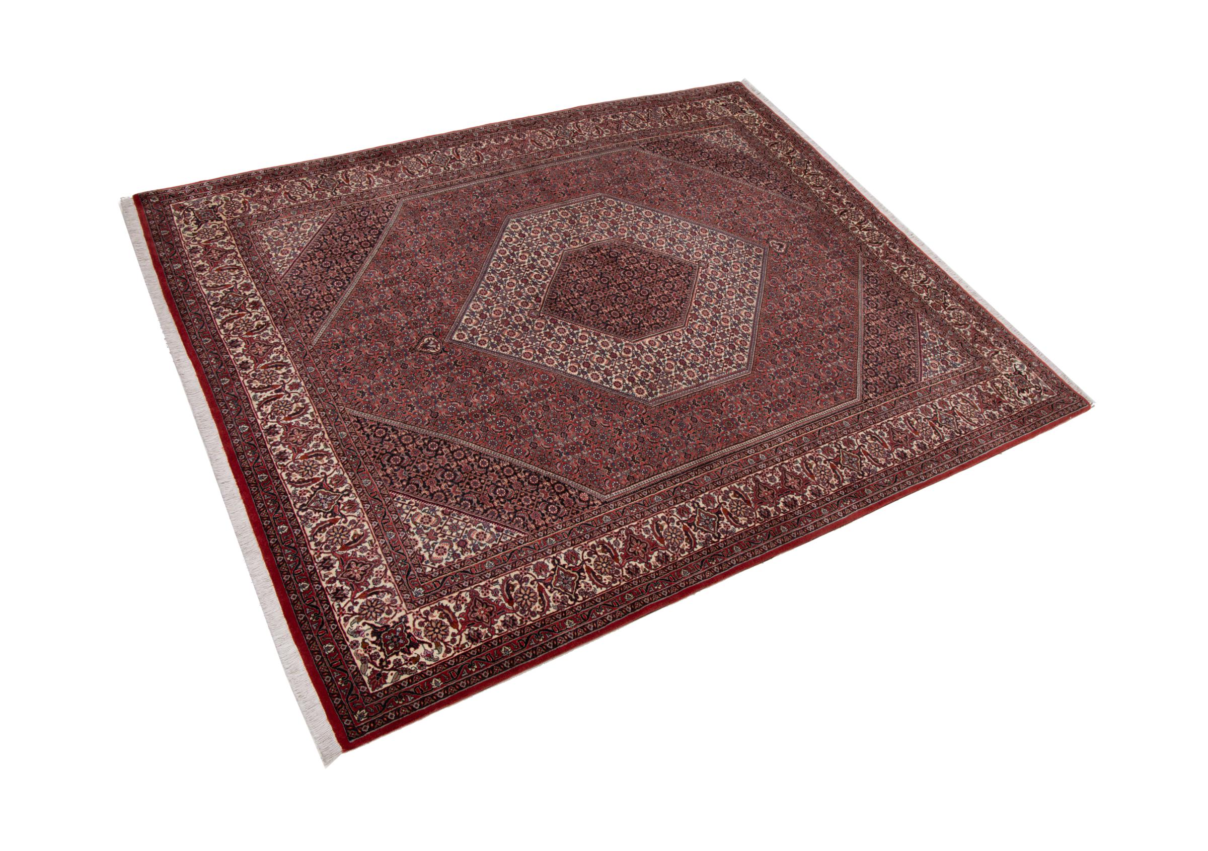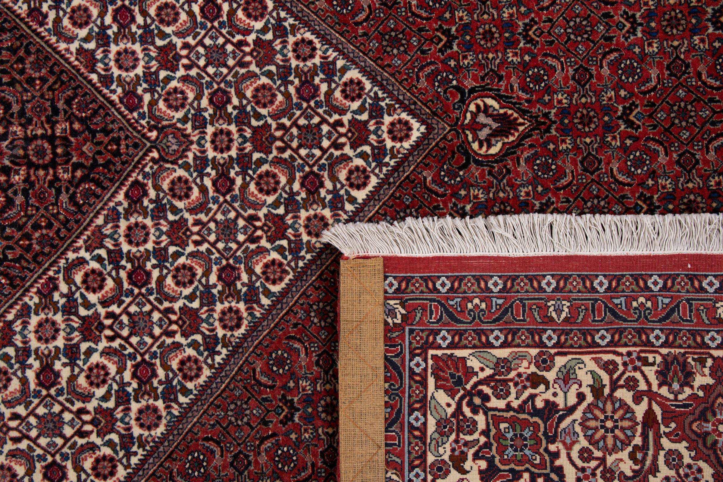 Esta alfombra persa fue anudada a mano en una pequeña ciudad kurda en el oeste de Irán. Las Bidjar son sinónimo de calidad. Su terciopelo compacto cautiva con su alta densidad y con ello resistencia al desgaste. Se lo aseguramos: esta alfombra kurda deleita desde el principio. E incluso le seguirá deleitando muchísimo más con el pasar de los años.